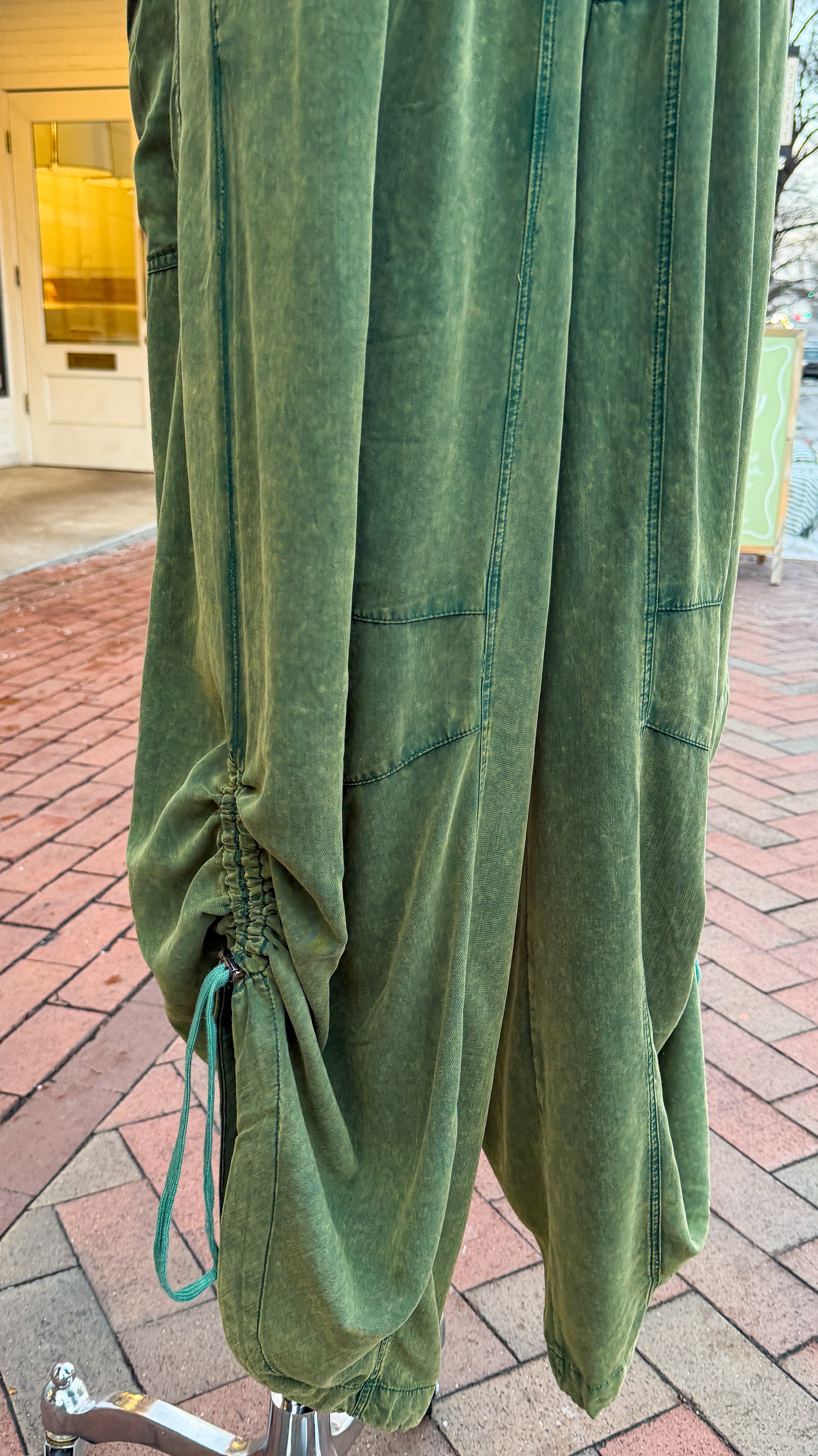 Willow Mineral Wash Ruched Wide Leg Pants – Olive Pleated Trousers