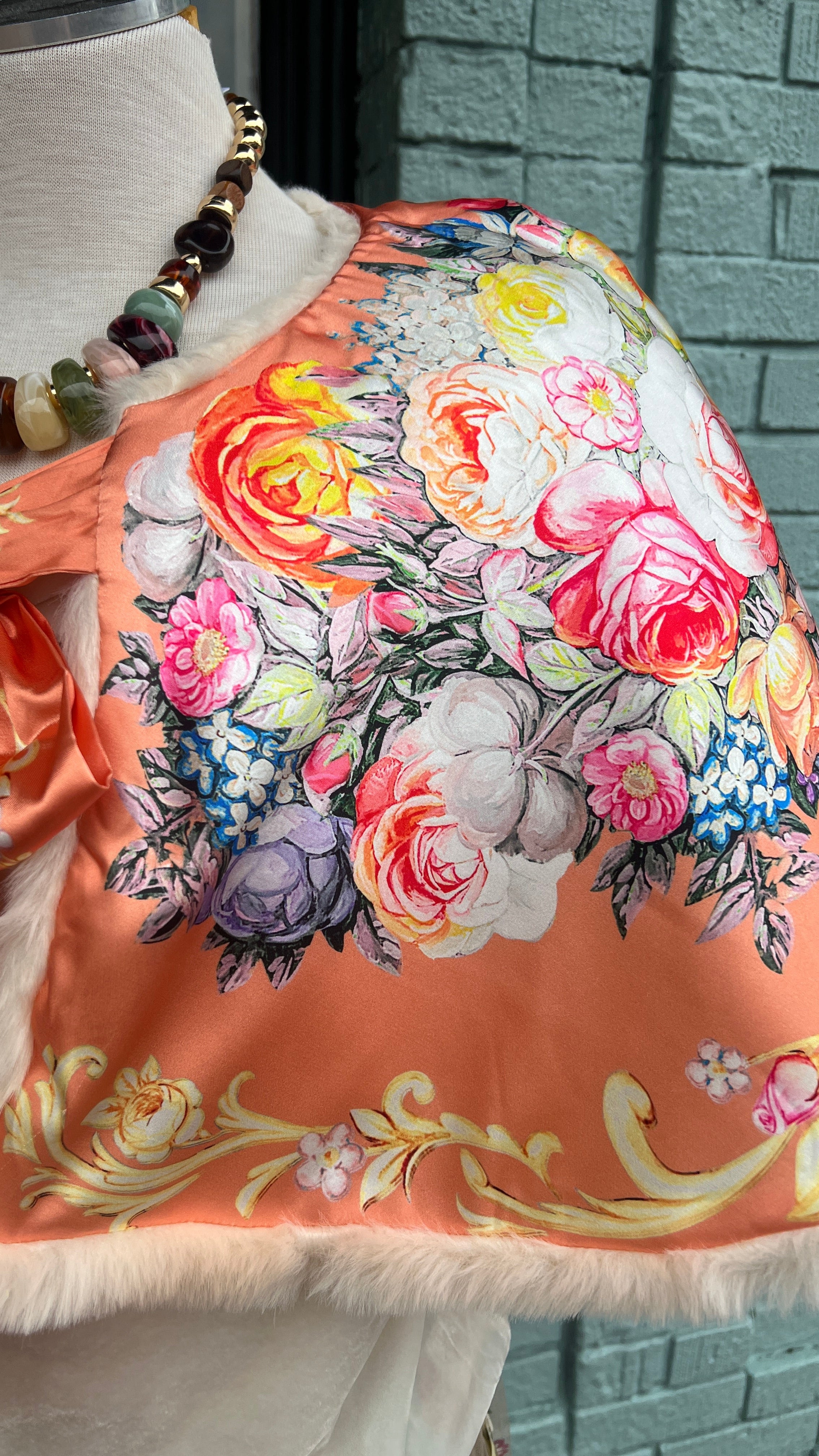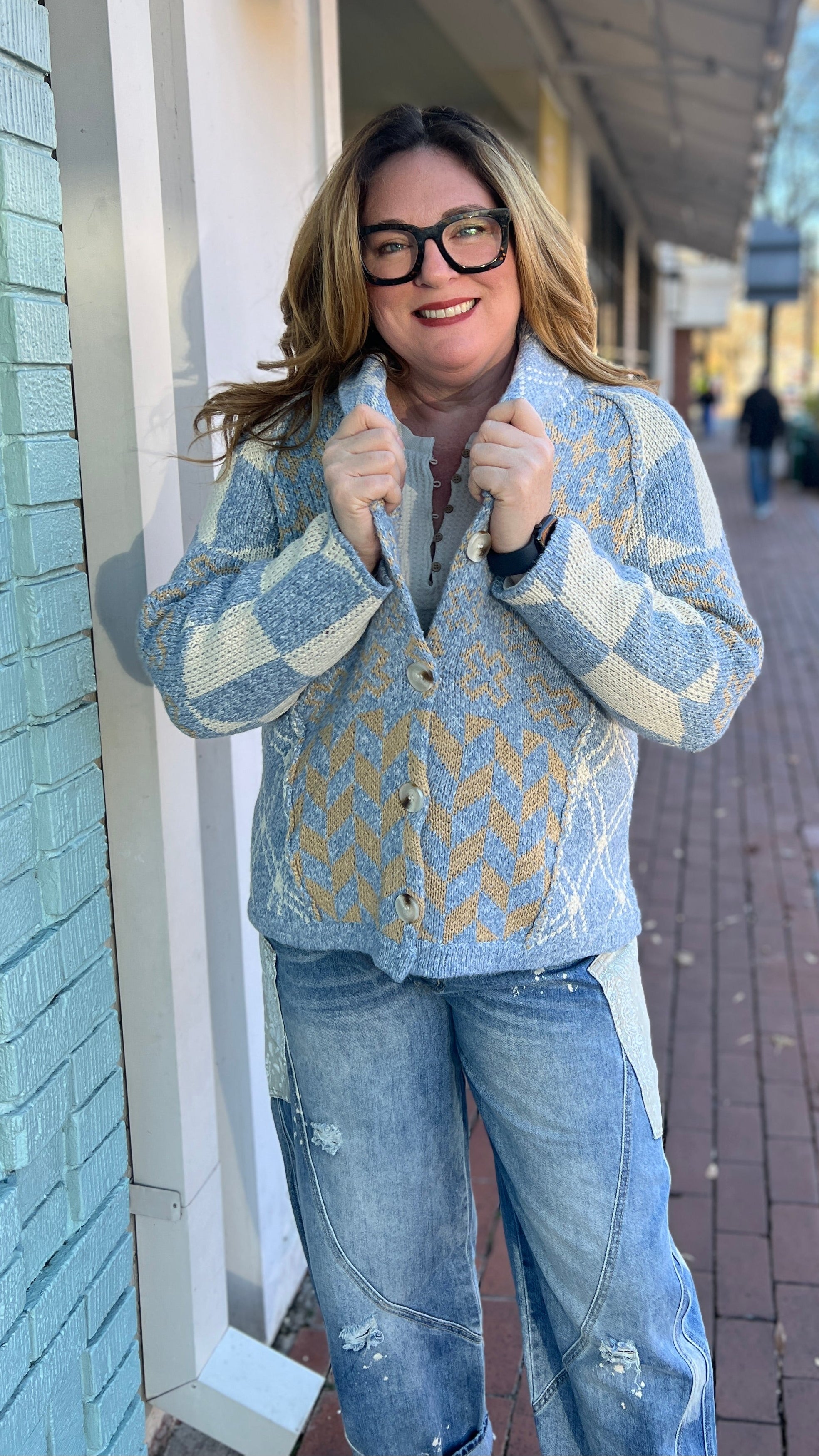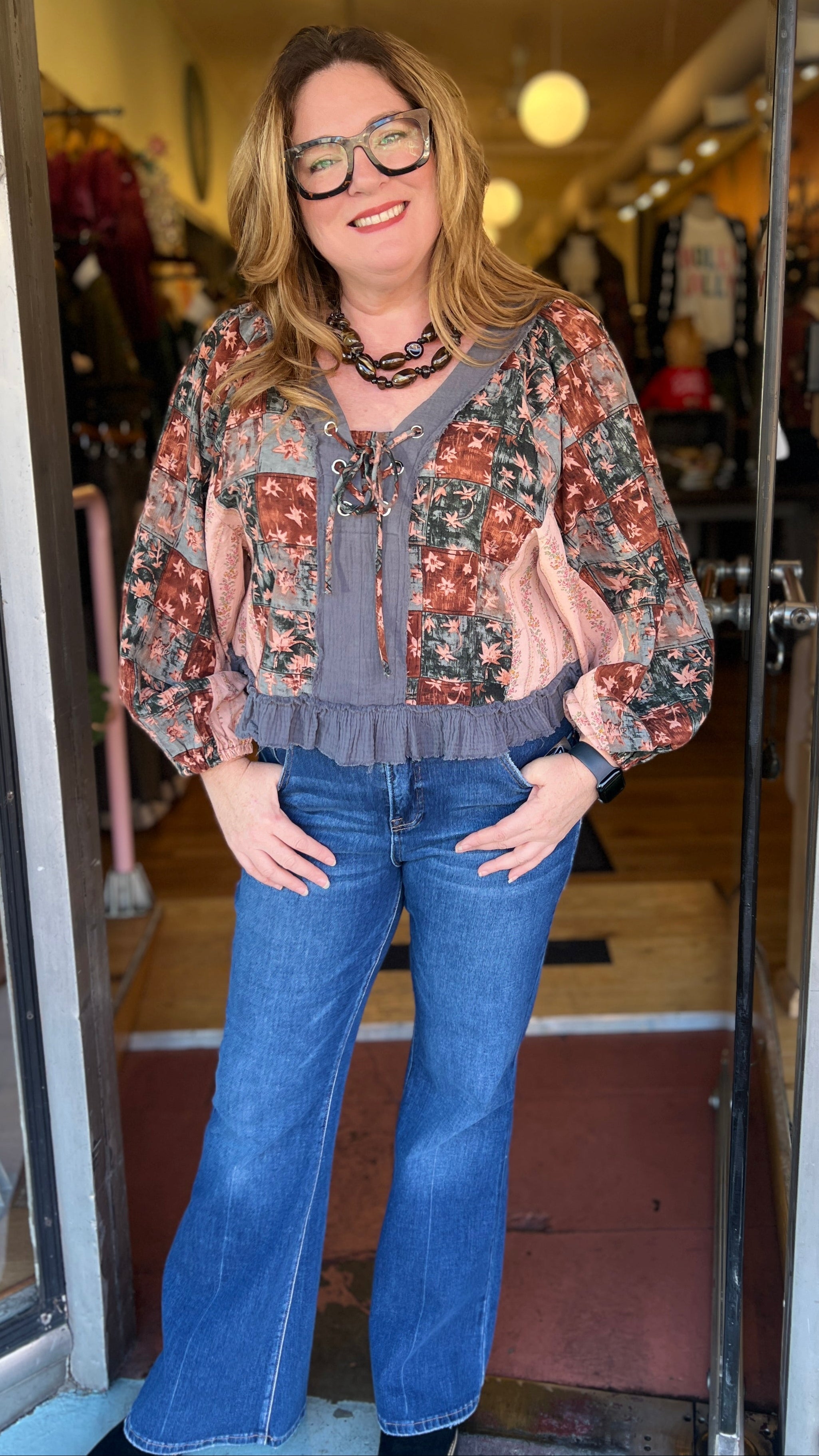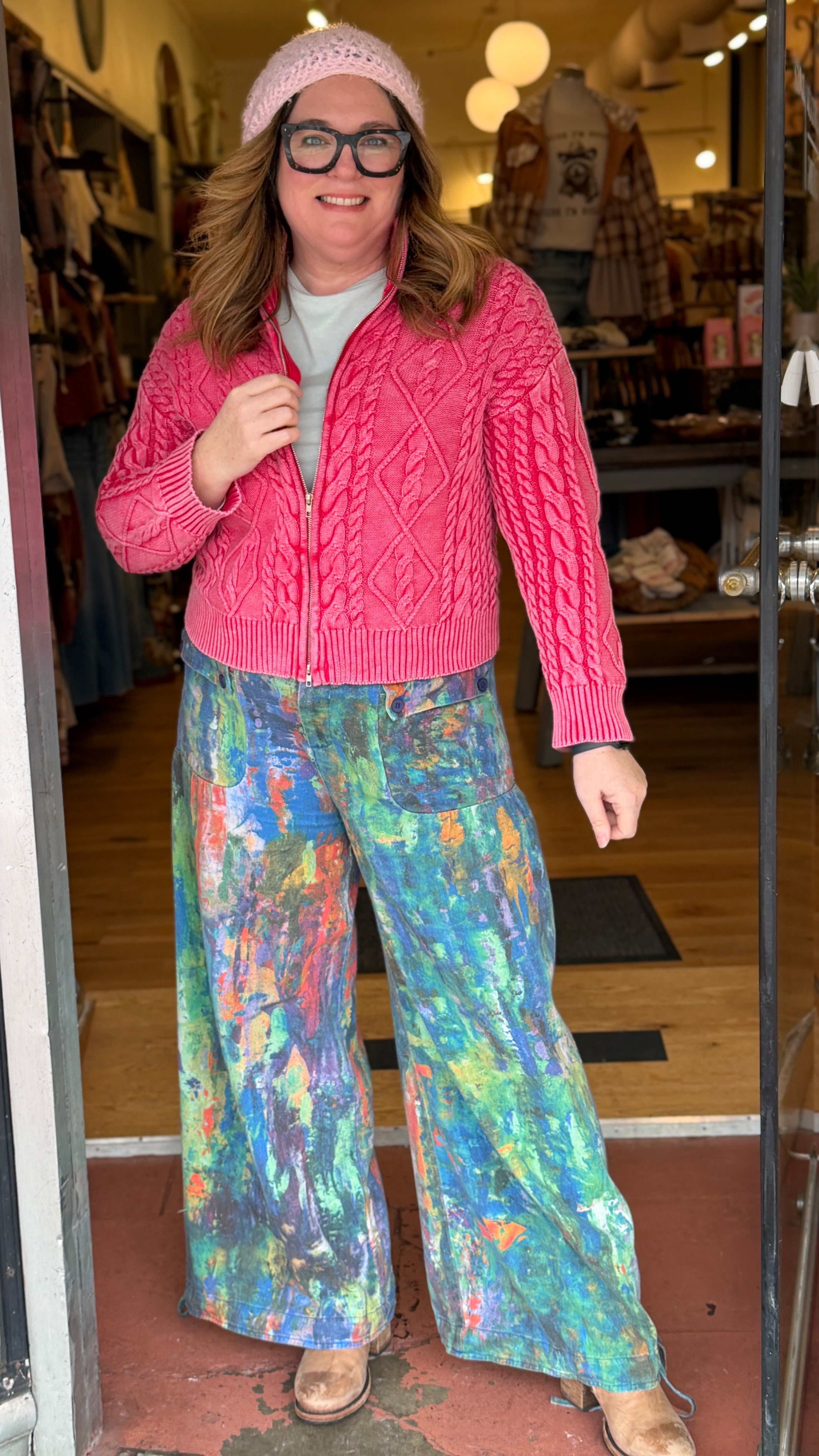 Vintage Wash Red Ballon Sleeve Thermal Knit Jacket