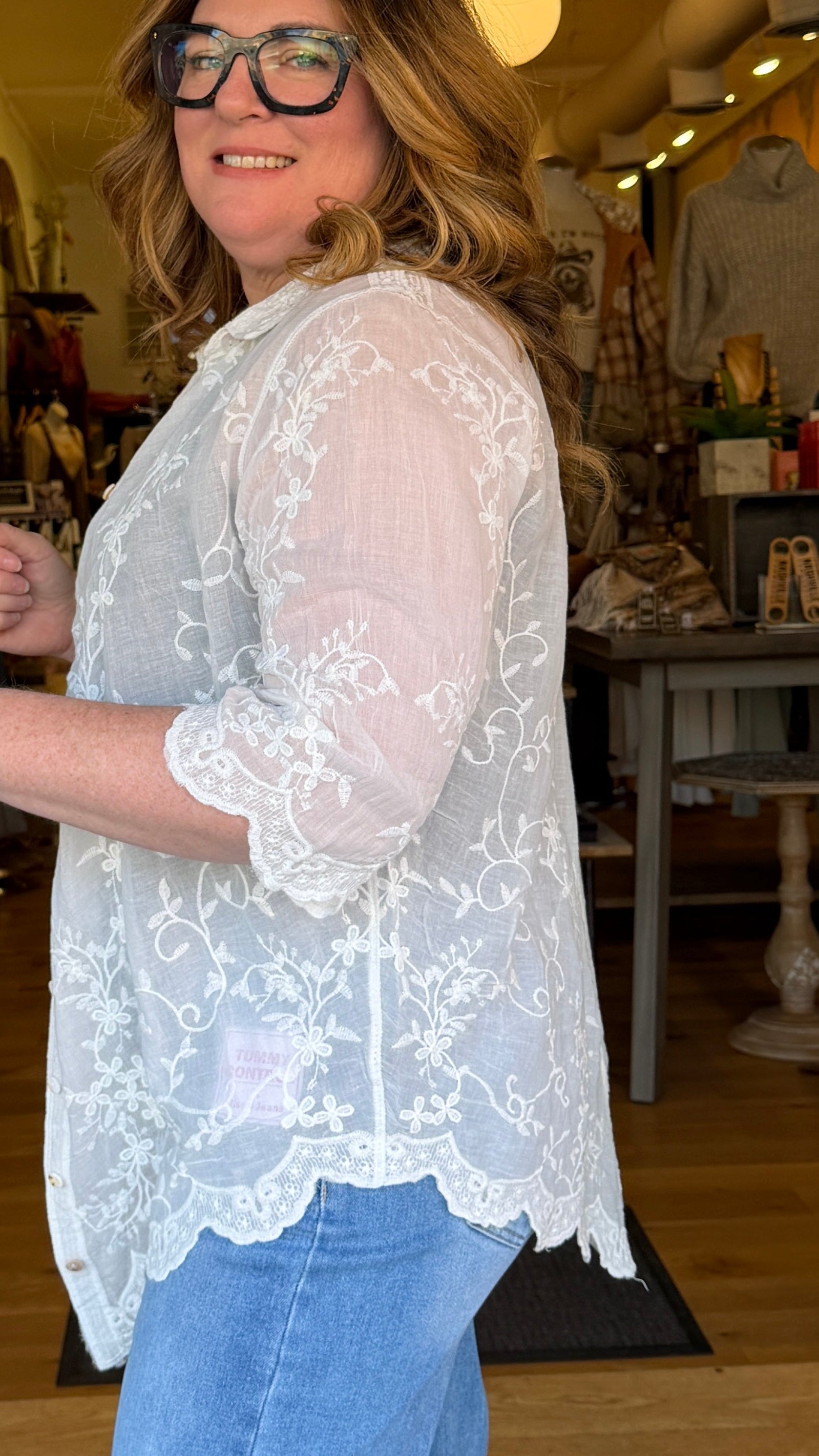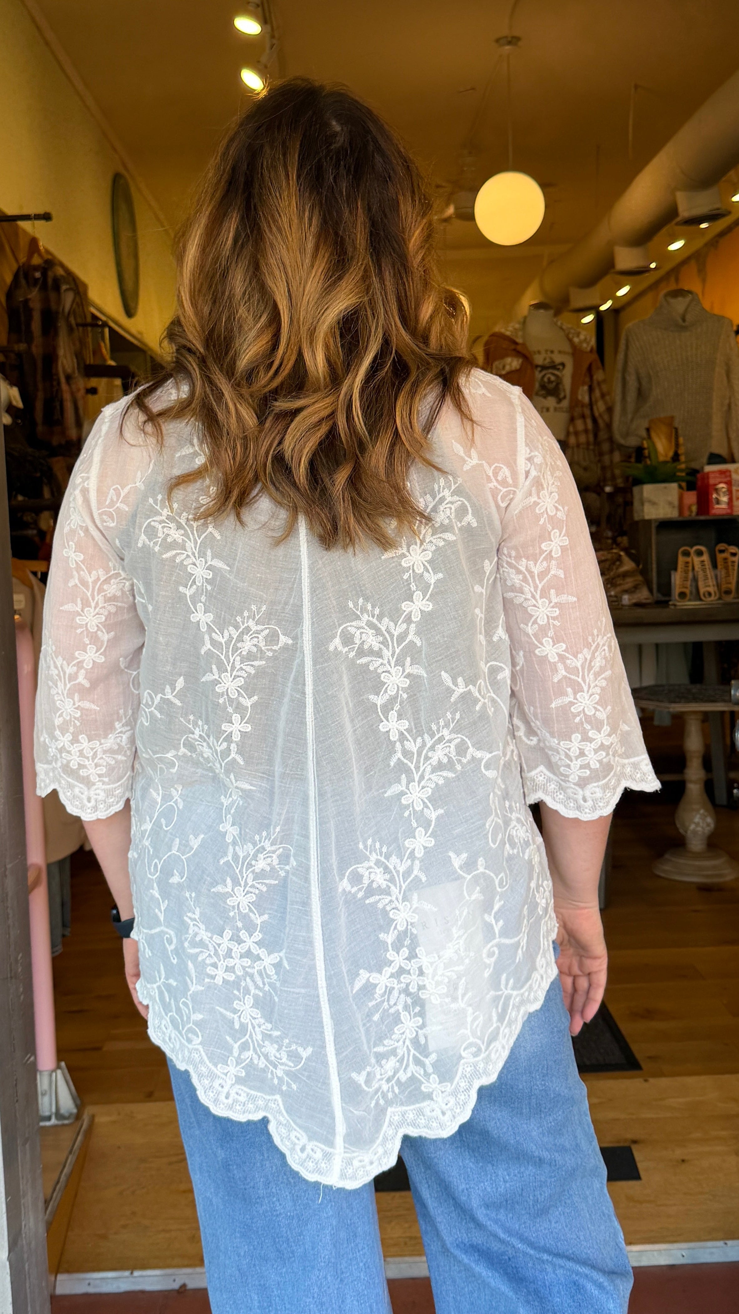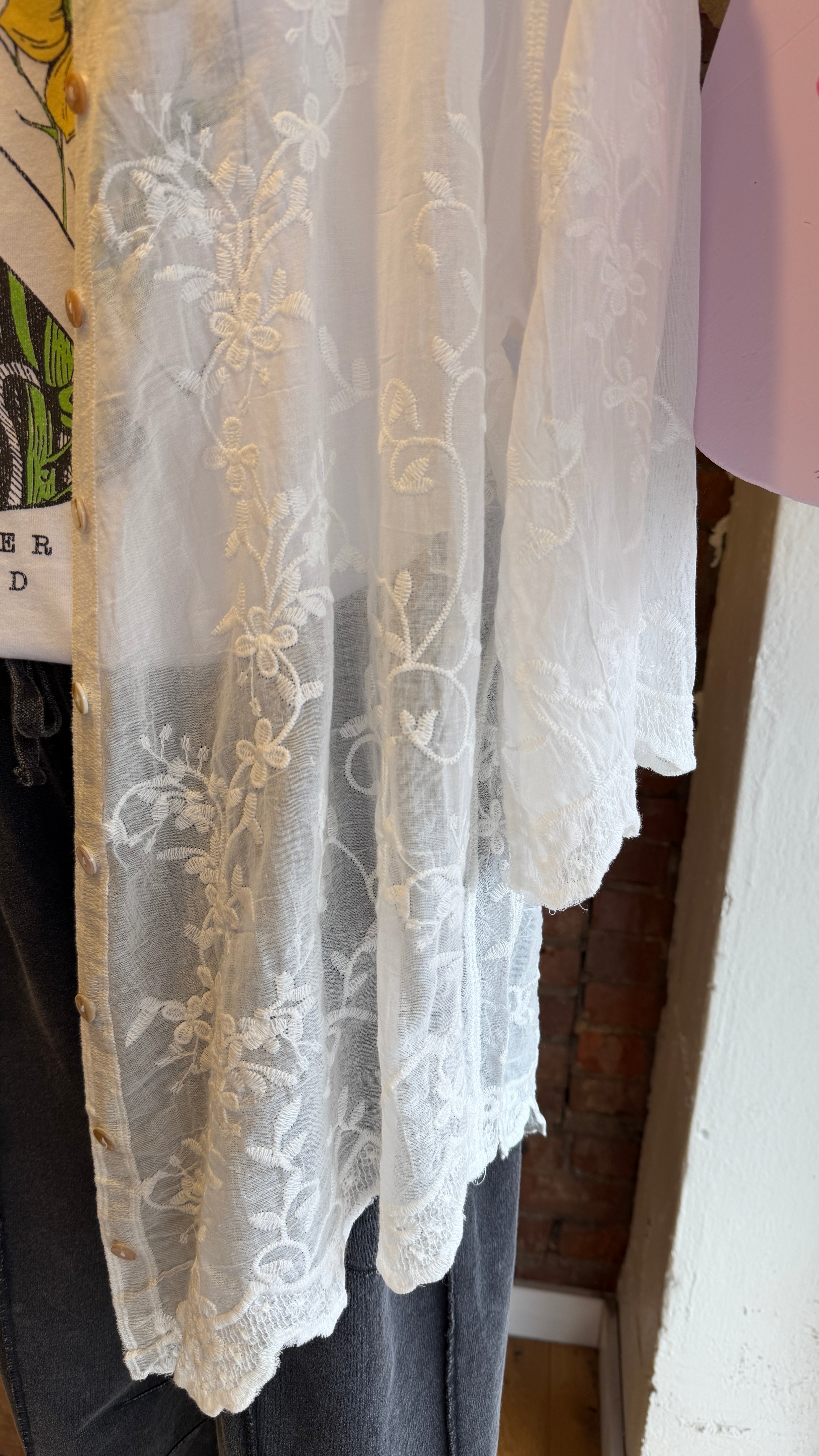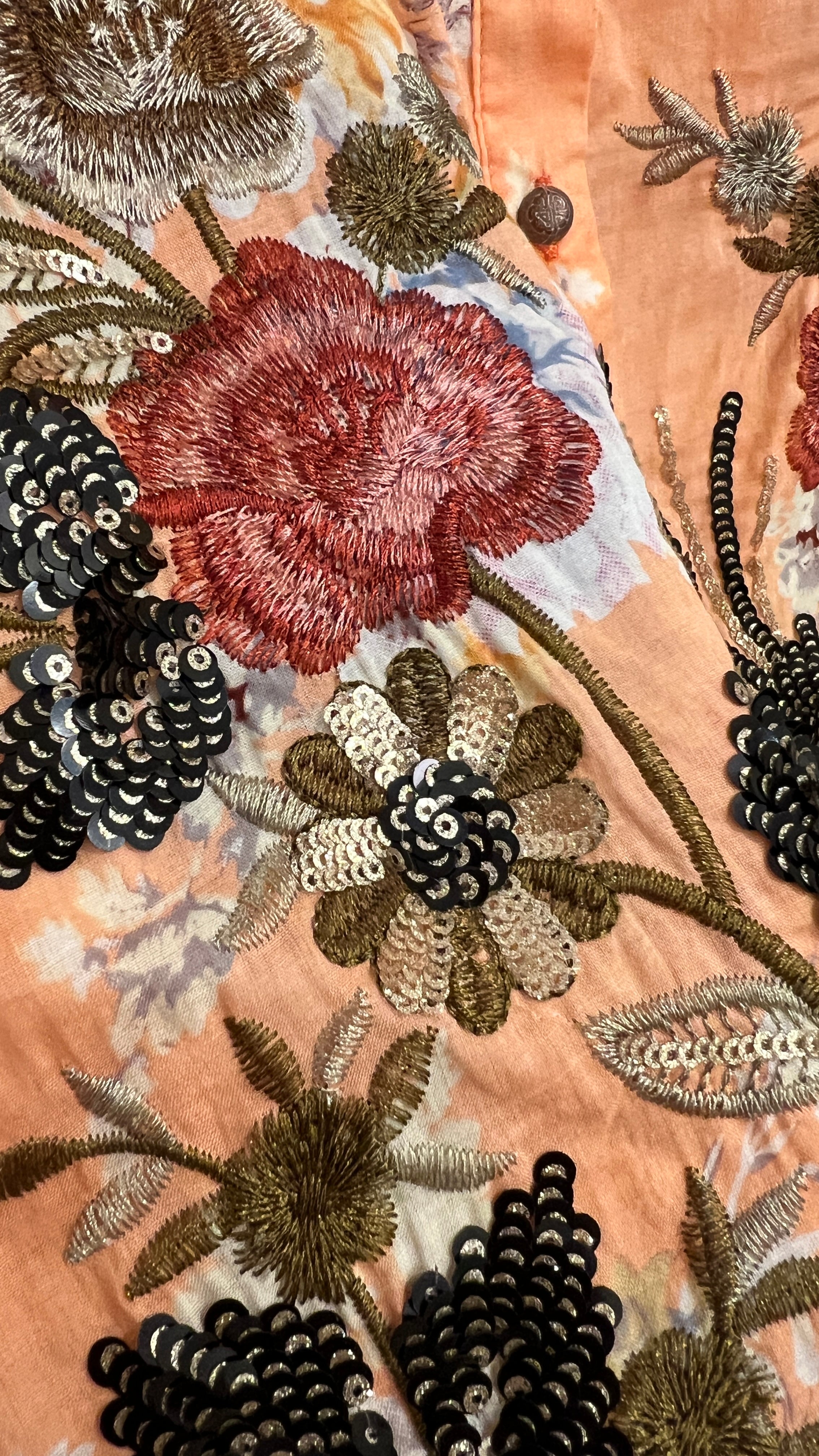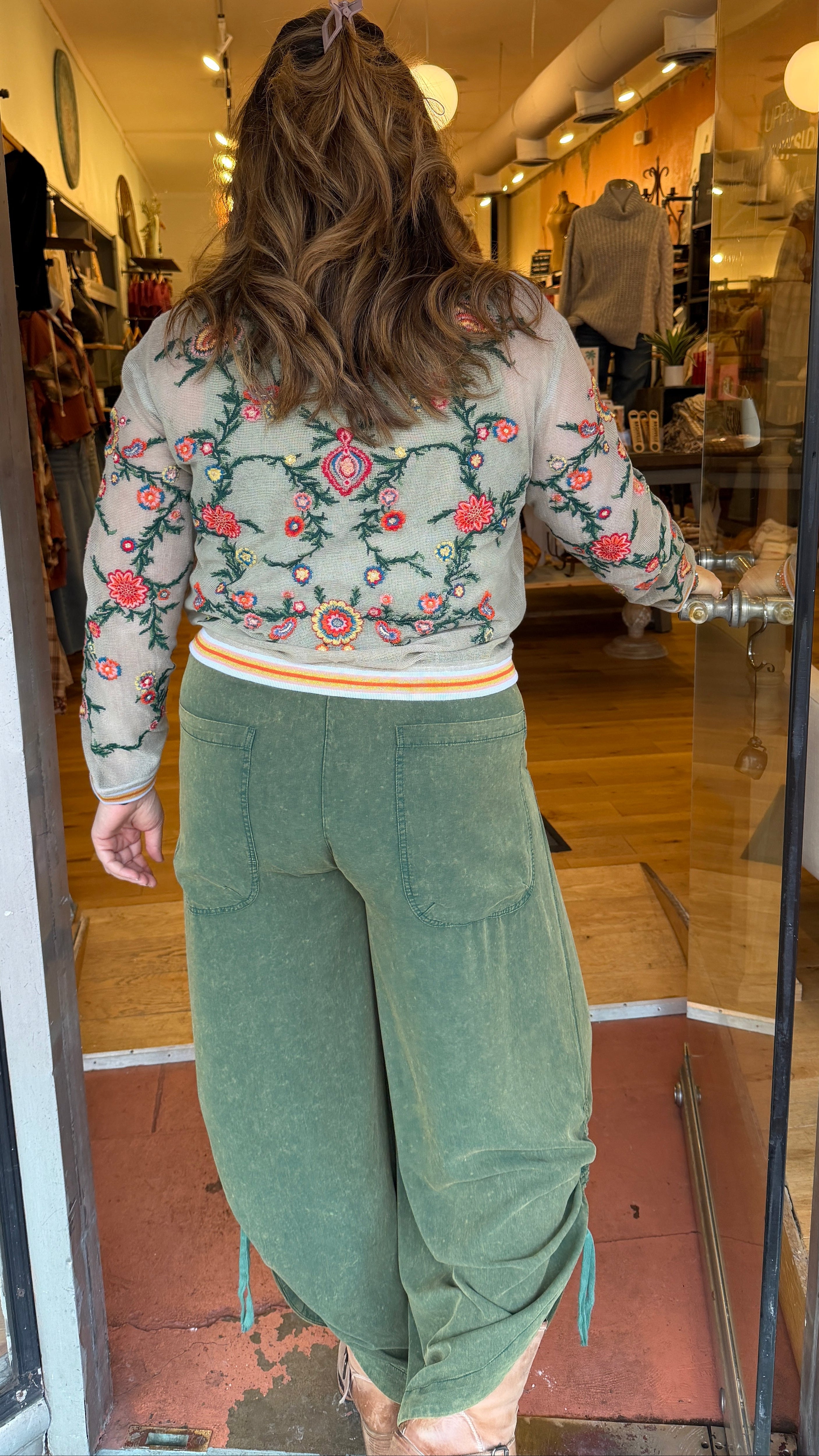 Aratta Bohemian Floral Embroidered Mesh Bomber Jacket