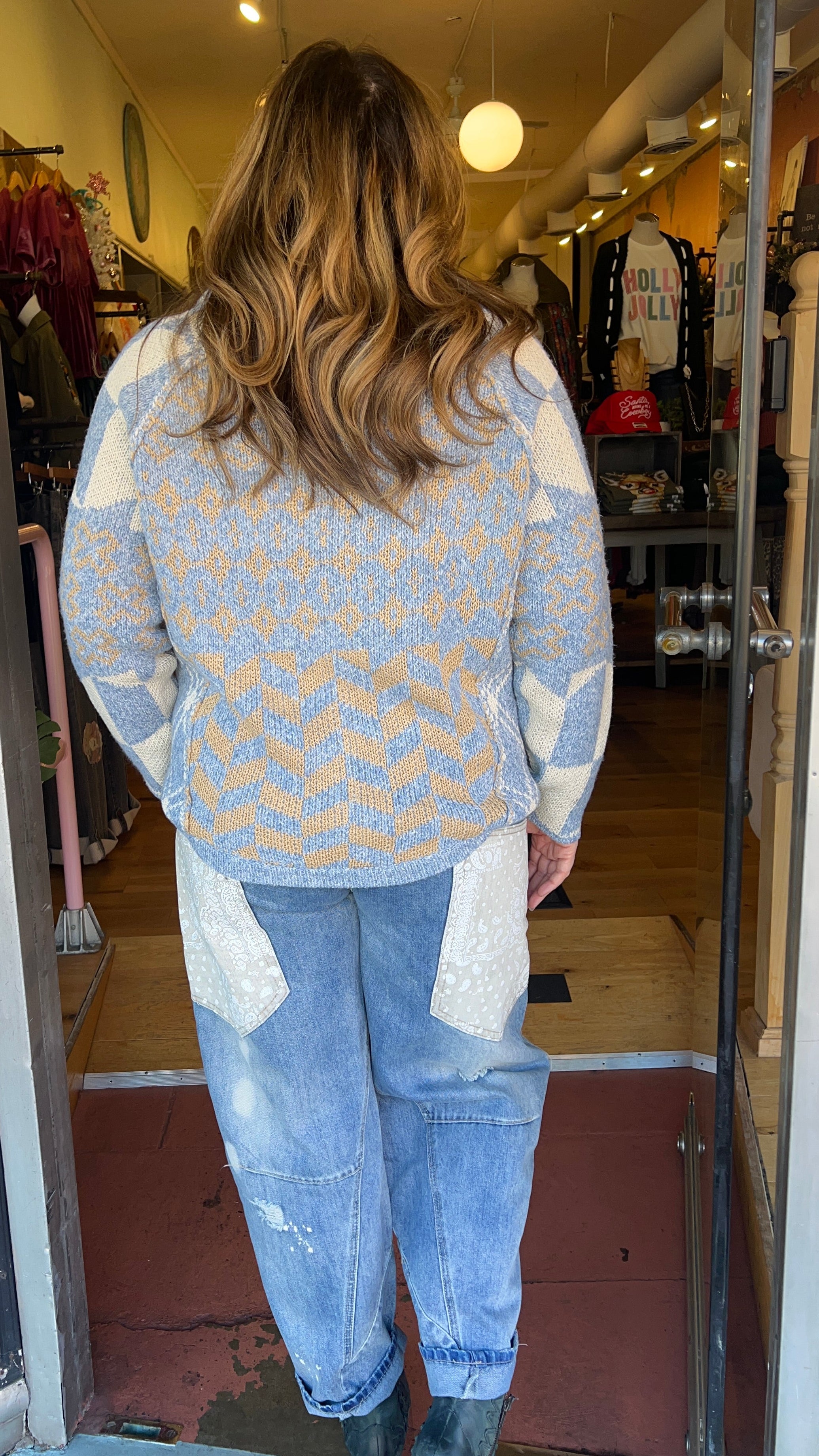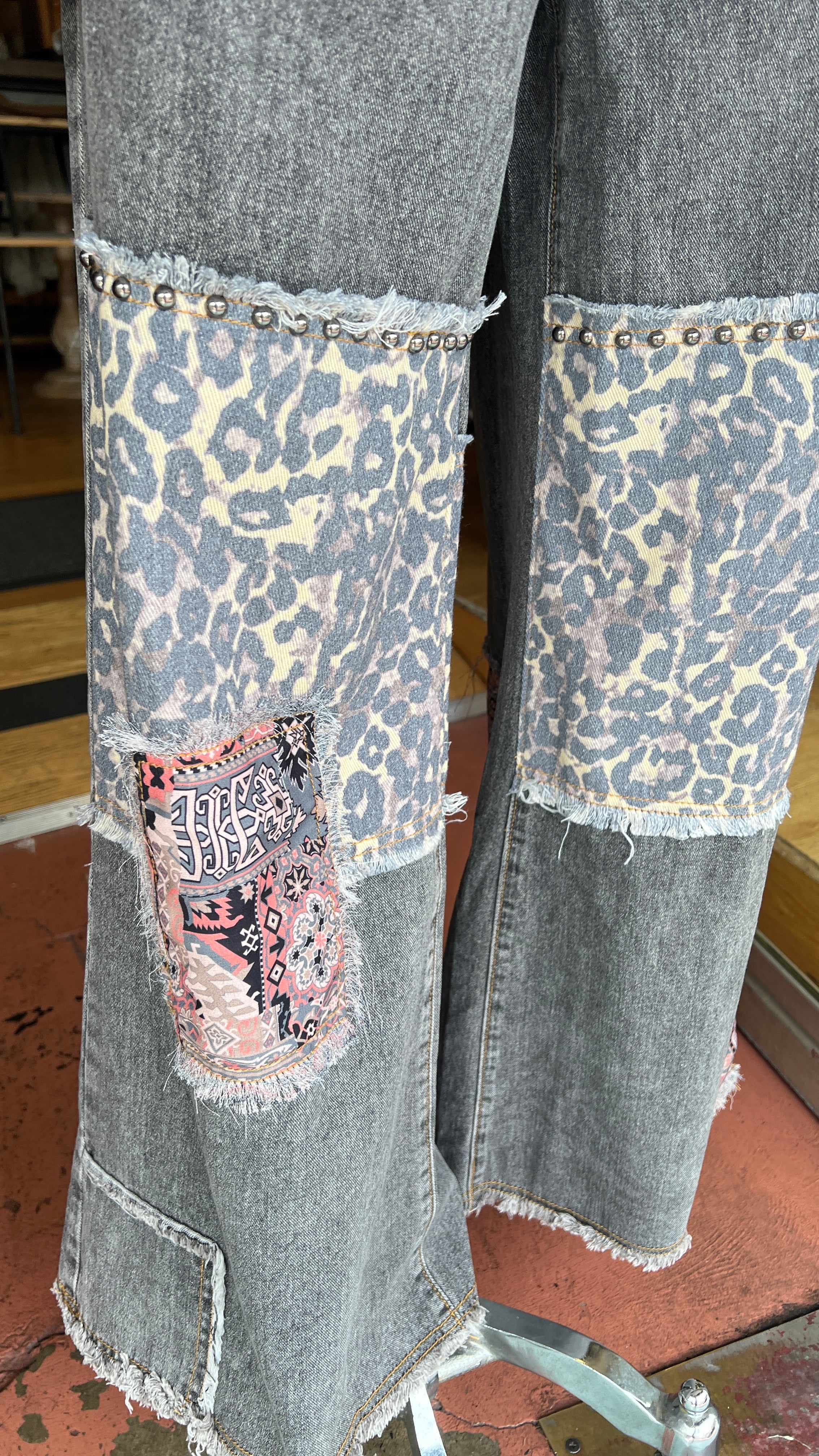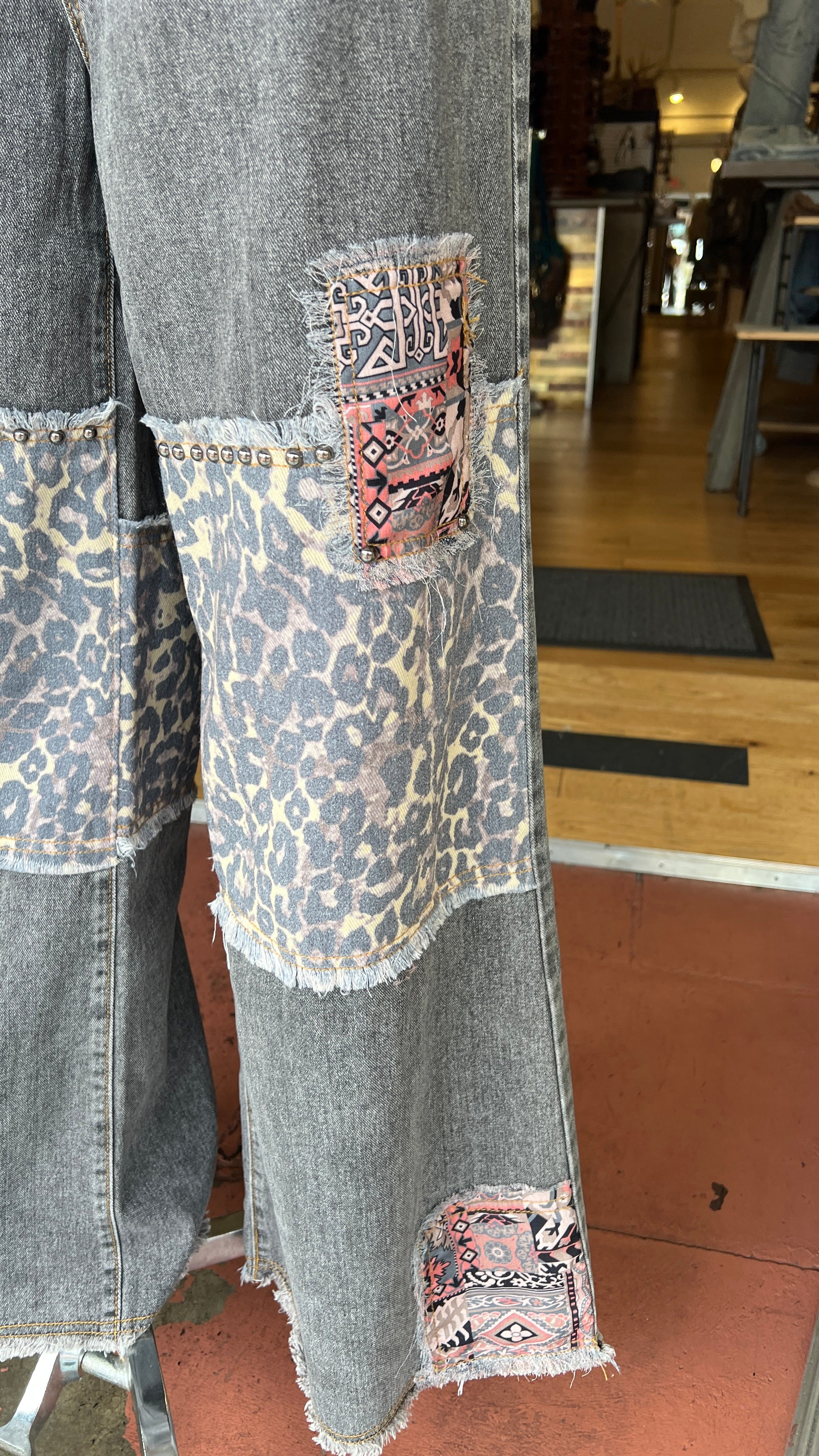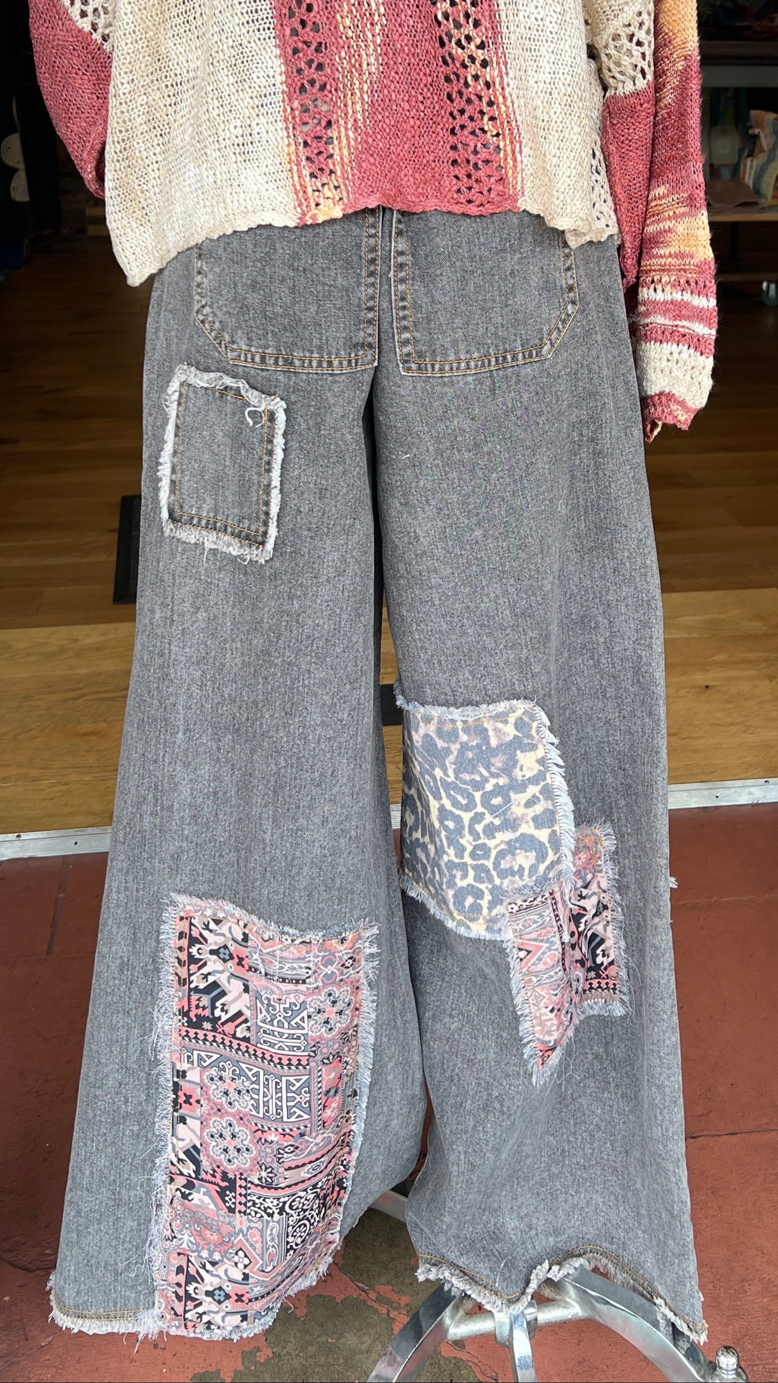 Relaxed Barrel Jeans w/ Oversized Bandana Print Pockets