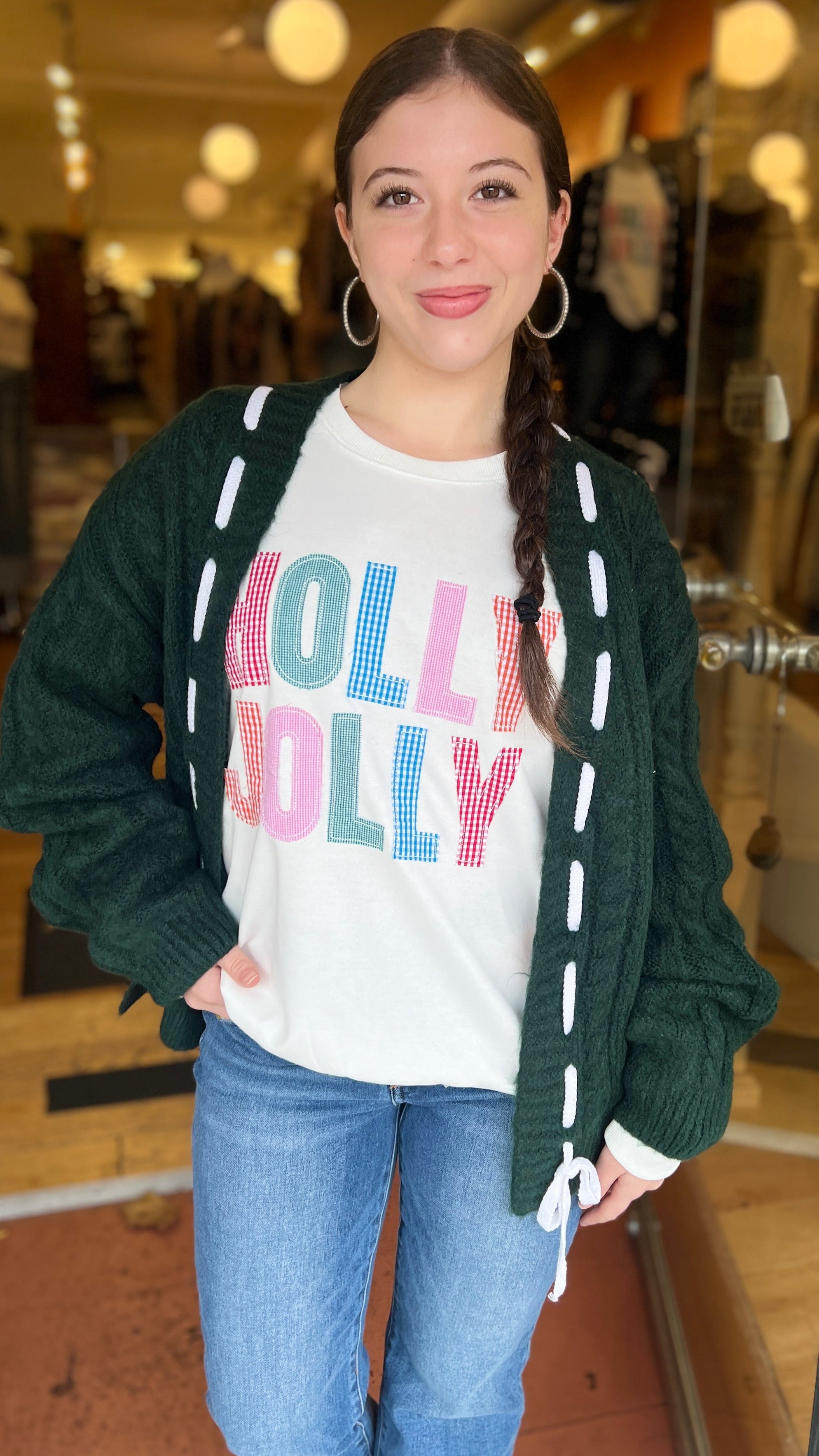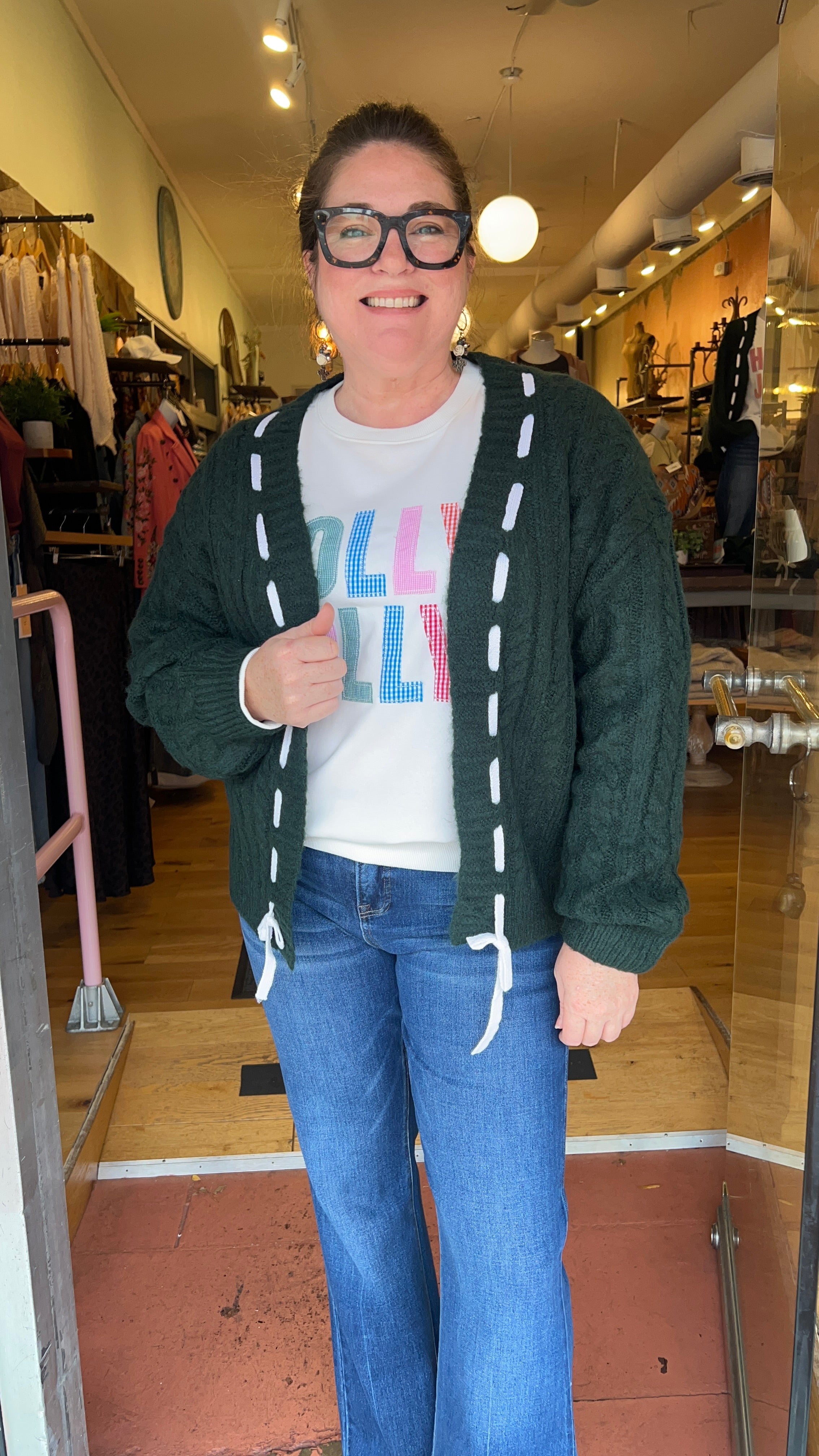 Festive Hunter Green Cable Knit Cardigan
