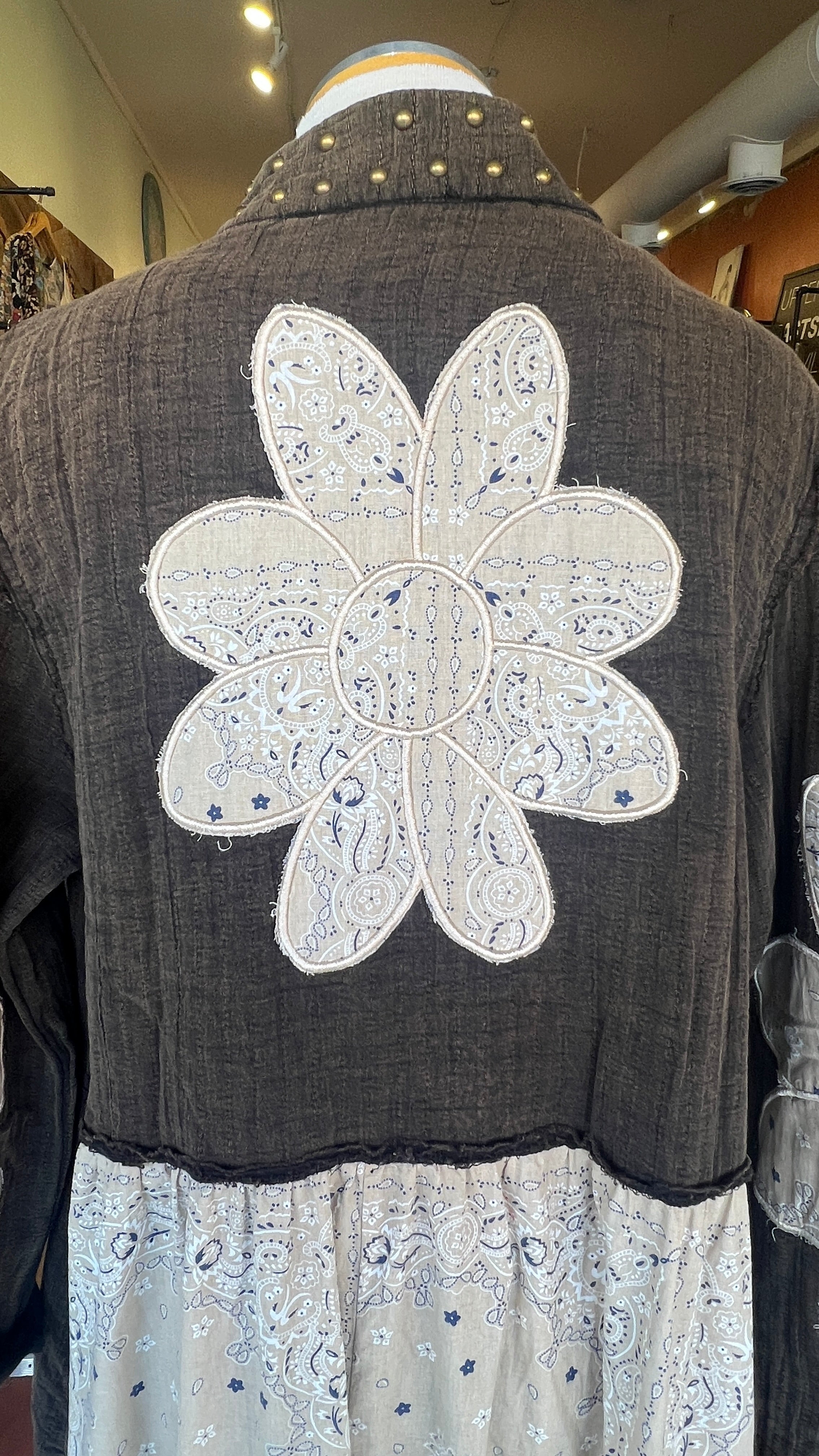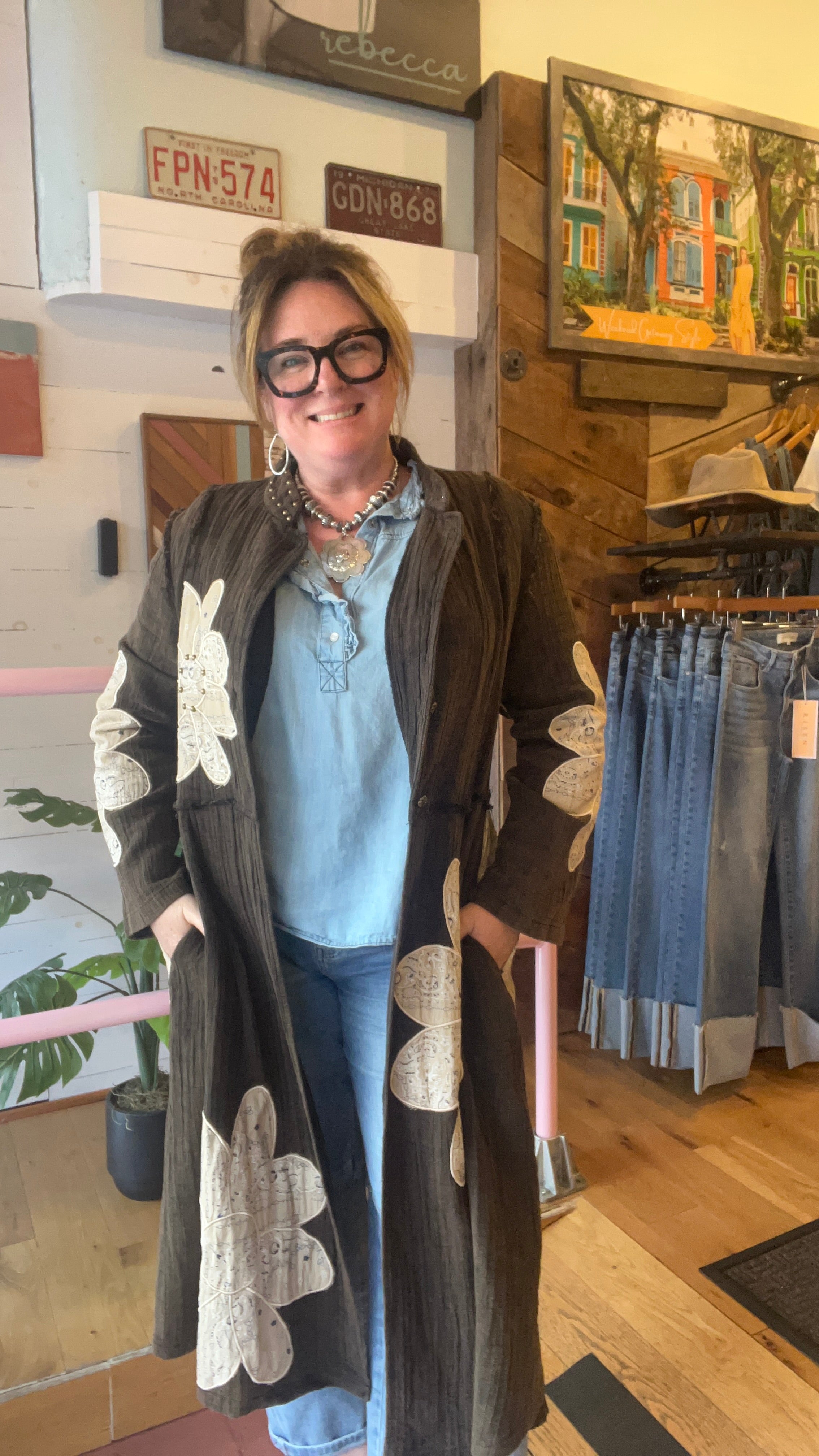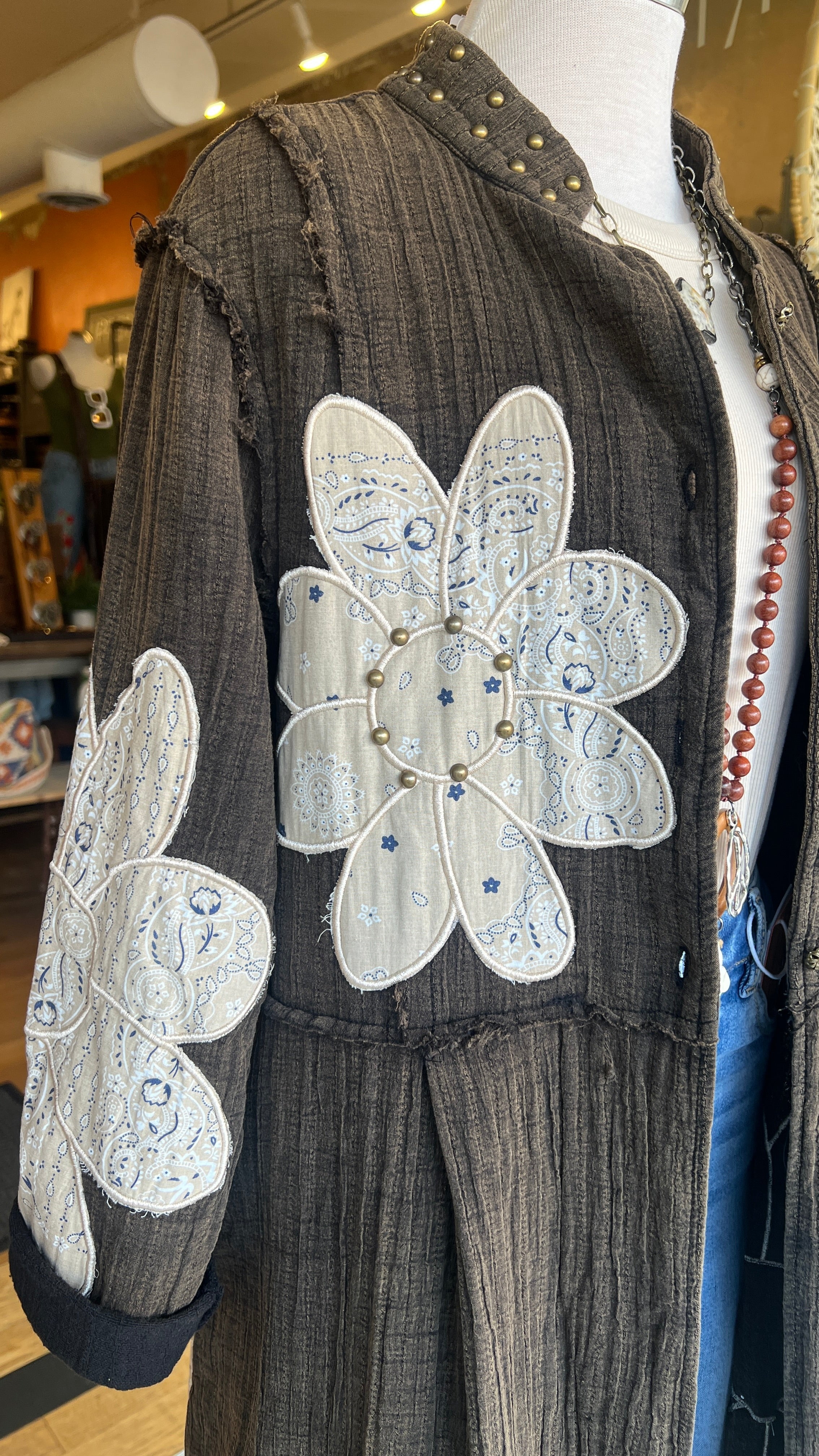 Lightweight Denim Jacket with Lace Patch & Ruffle Edge
