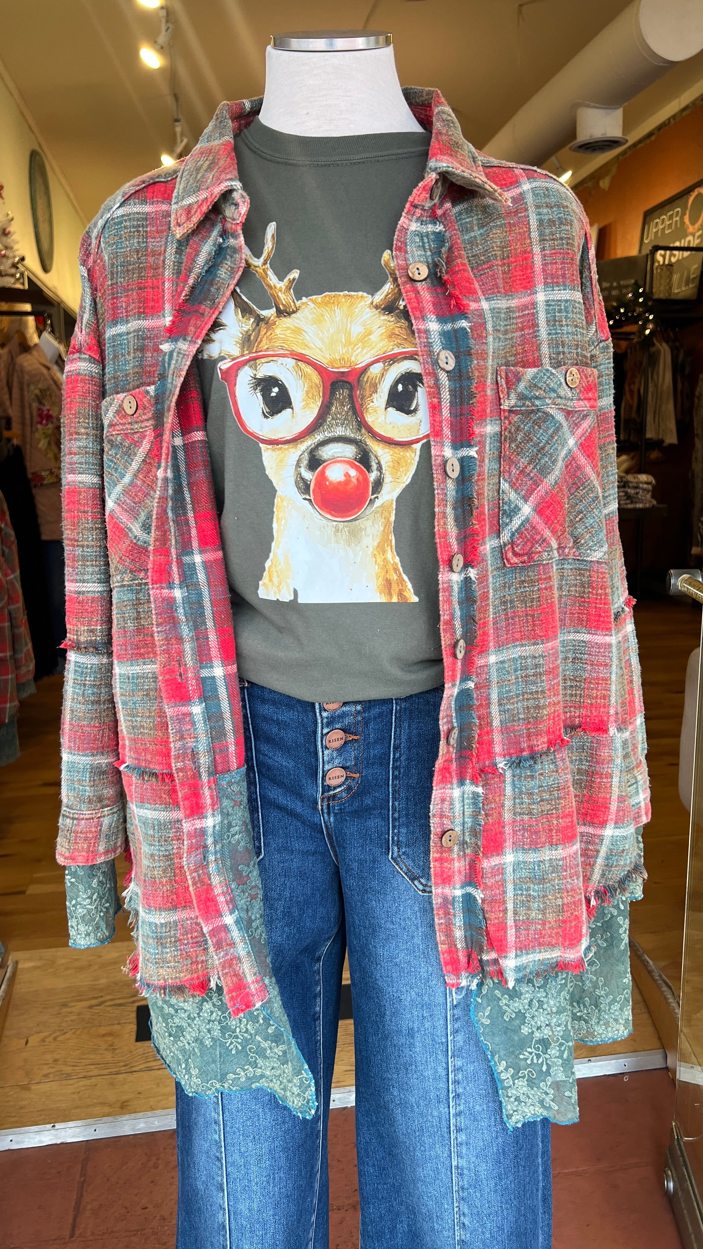 Night Before Christmas Plaid Top
