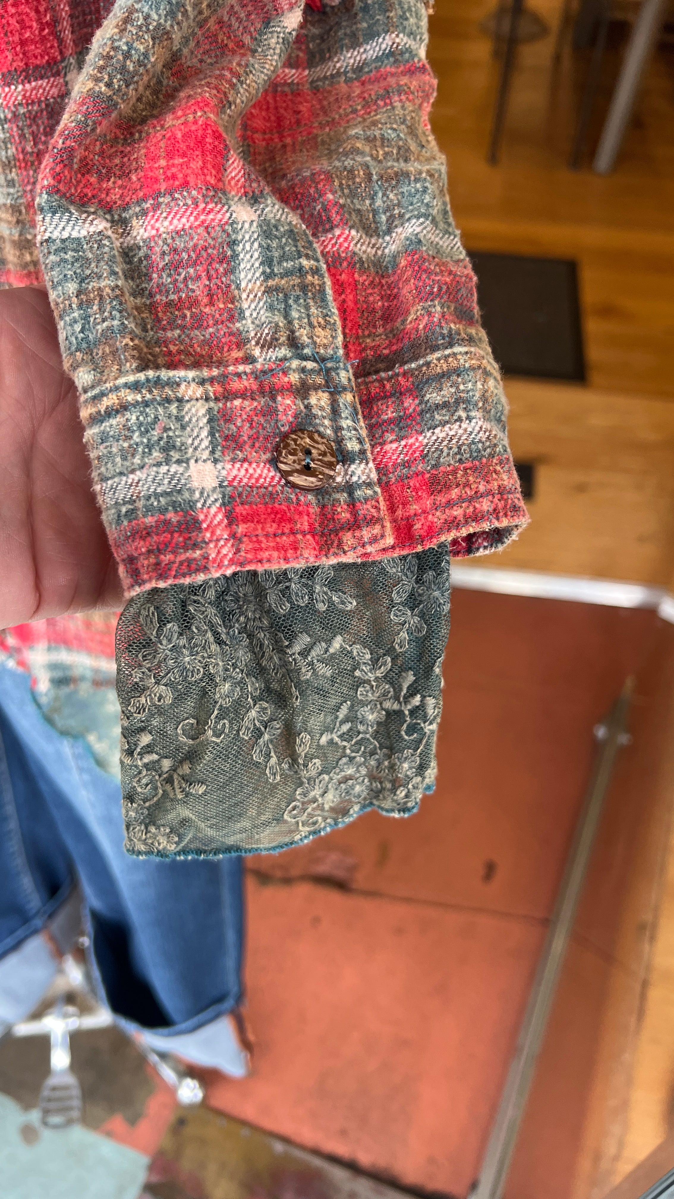 Vintage Wash Red Ballon Sleeve Thermal Knit Jacket