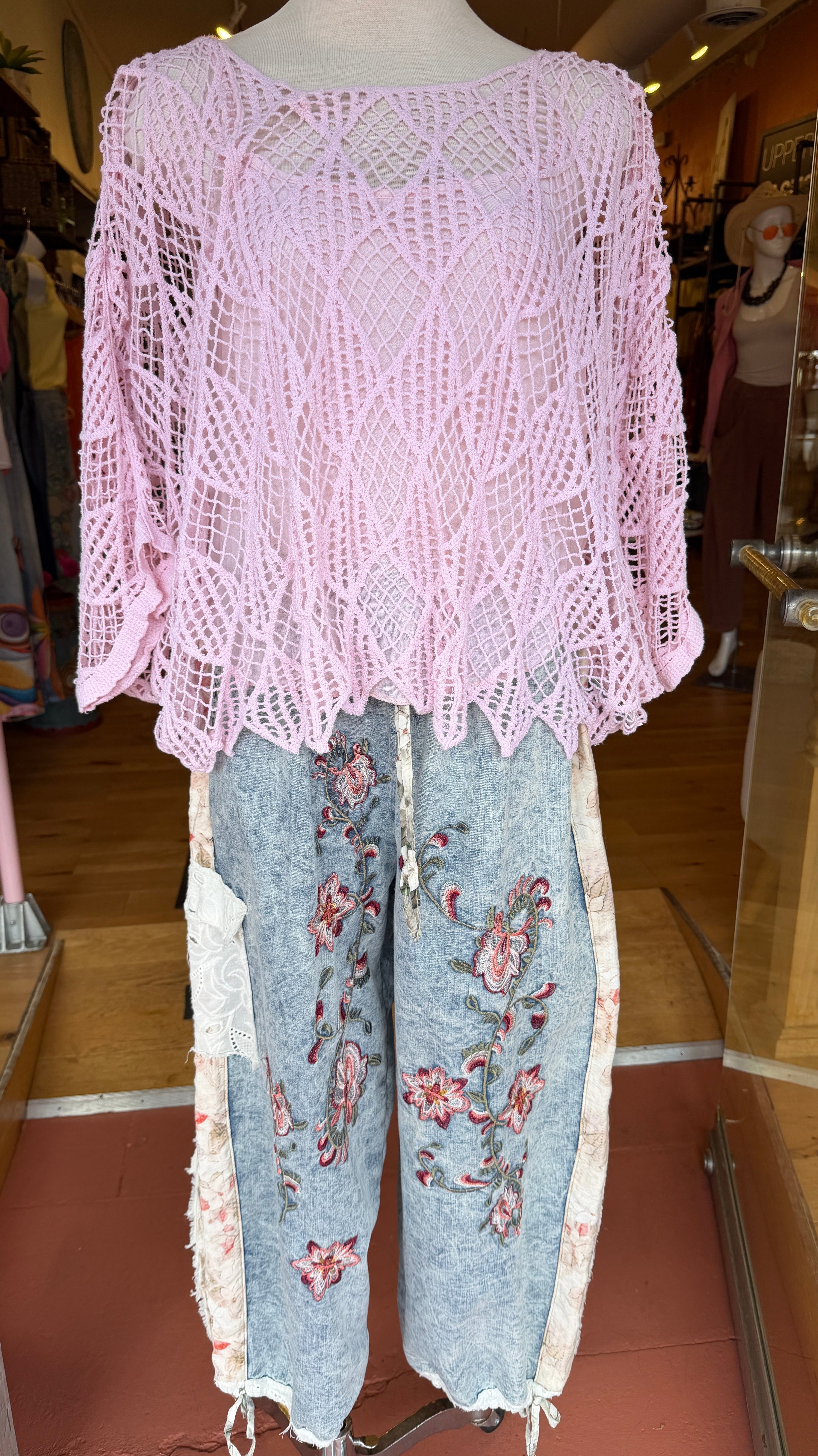 Coastal Open Weave Boho Fringe Sweater in Cream