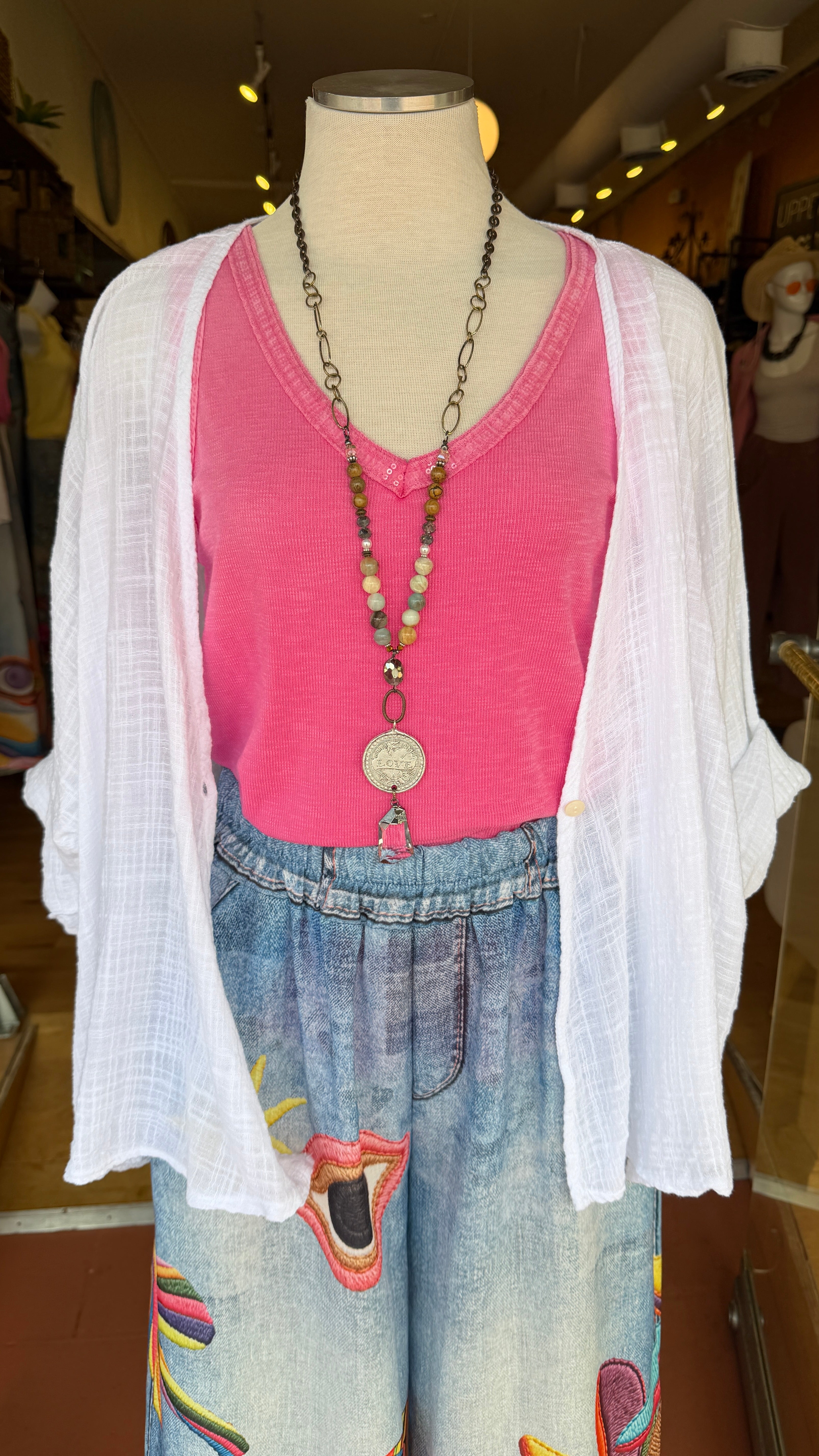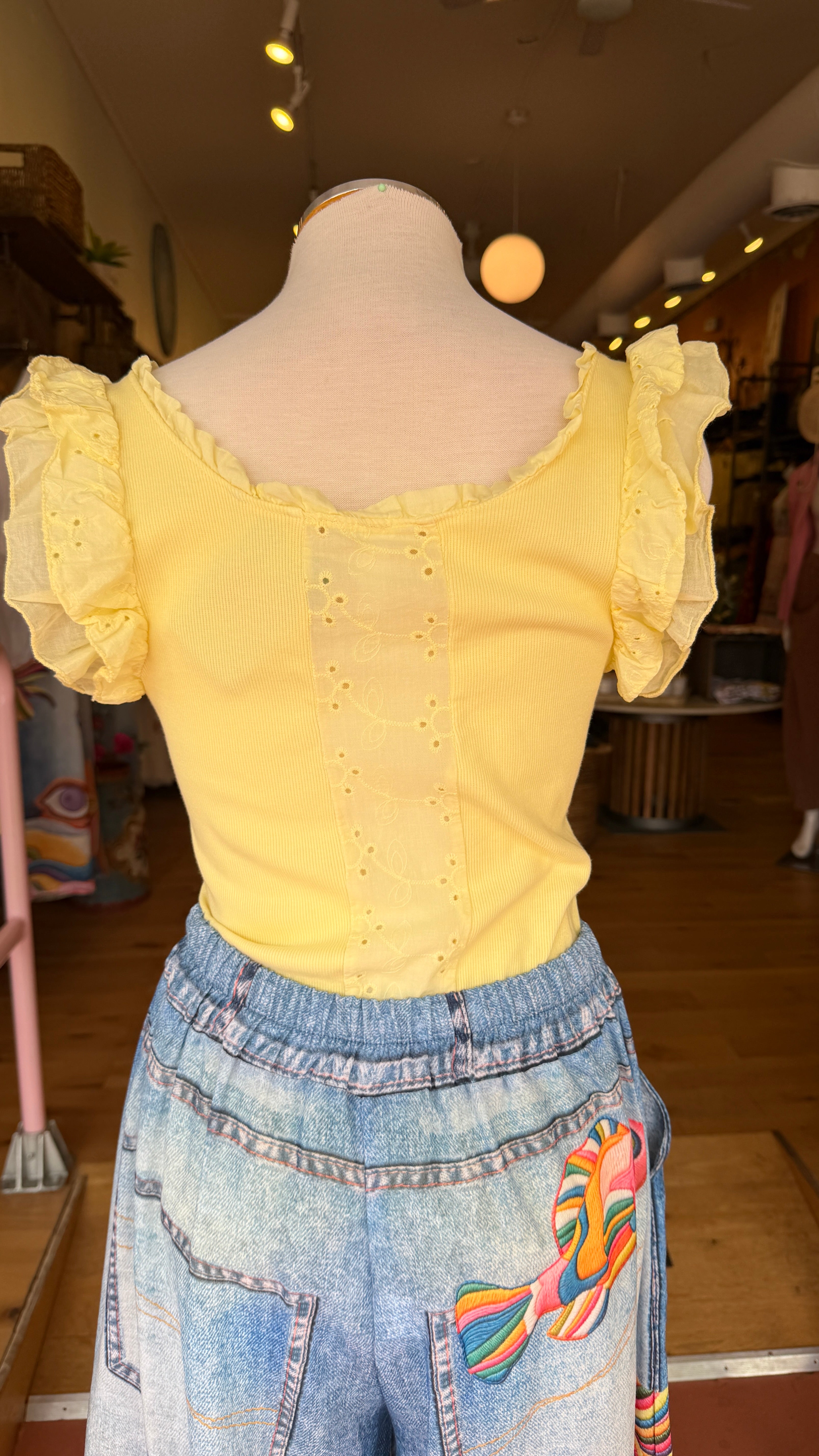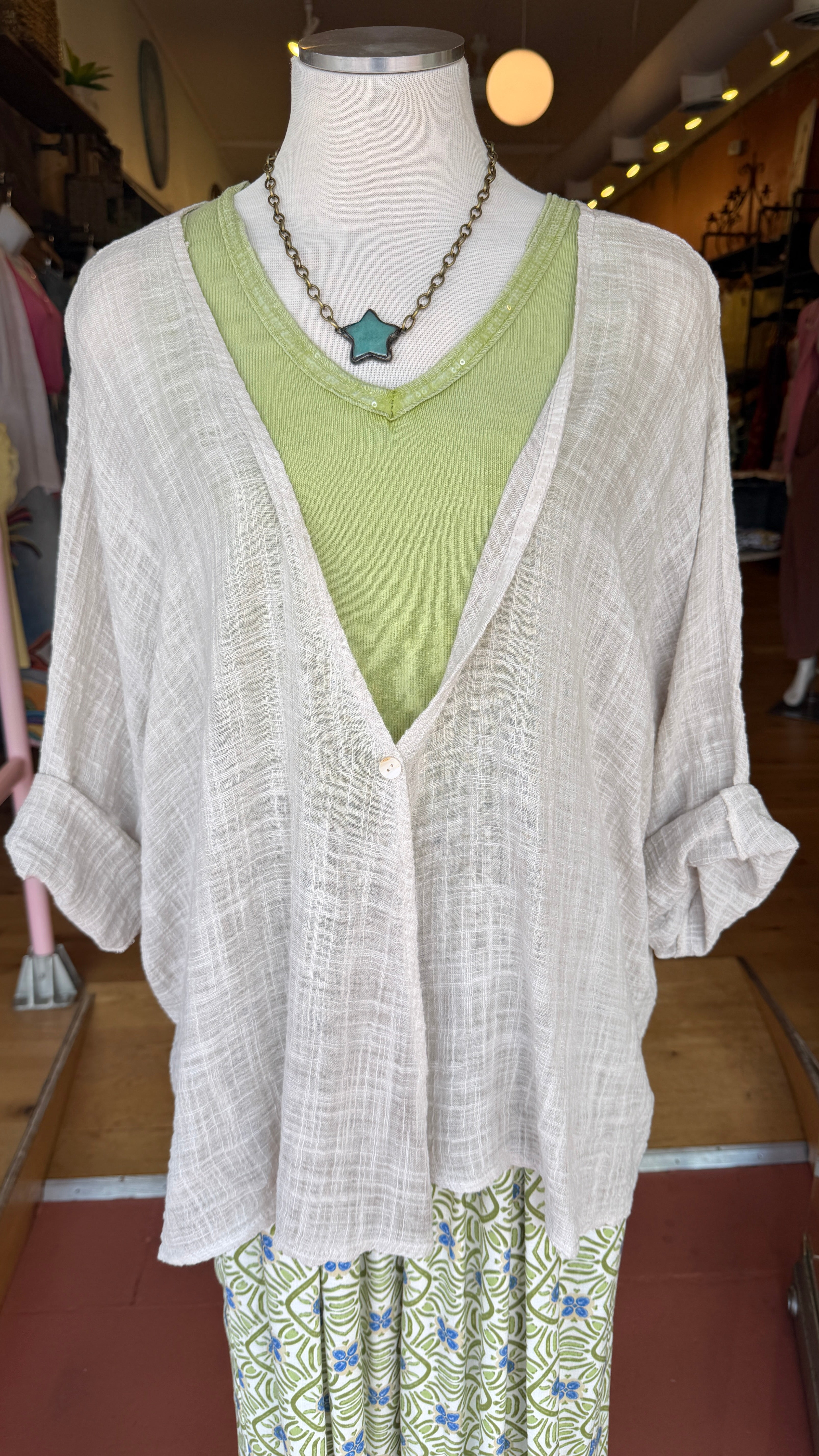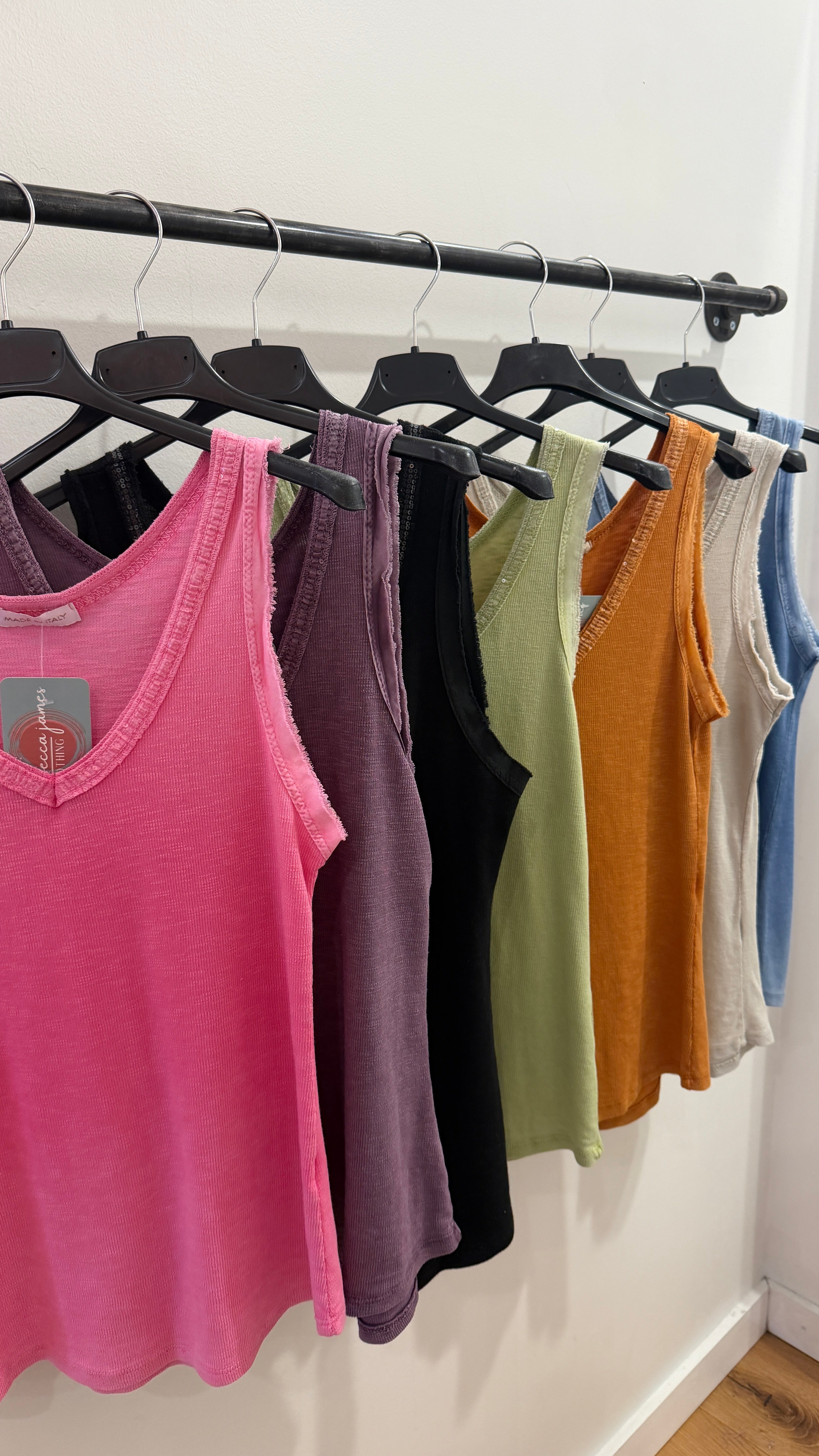 Mineral Wash Cotton Sequin Neck Sleeveless Top