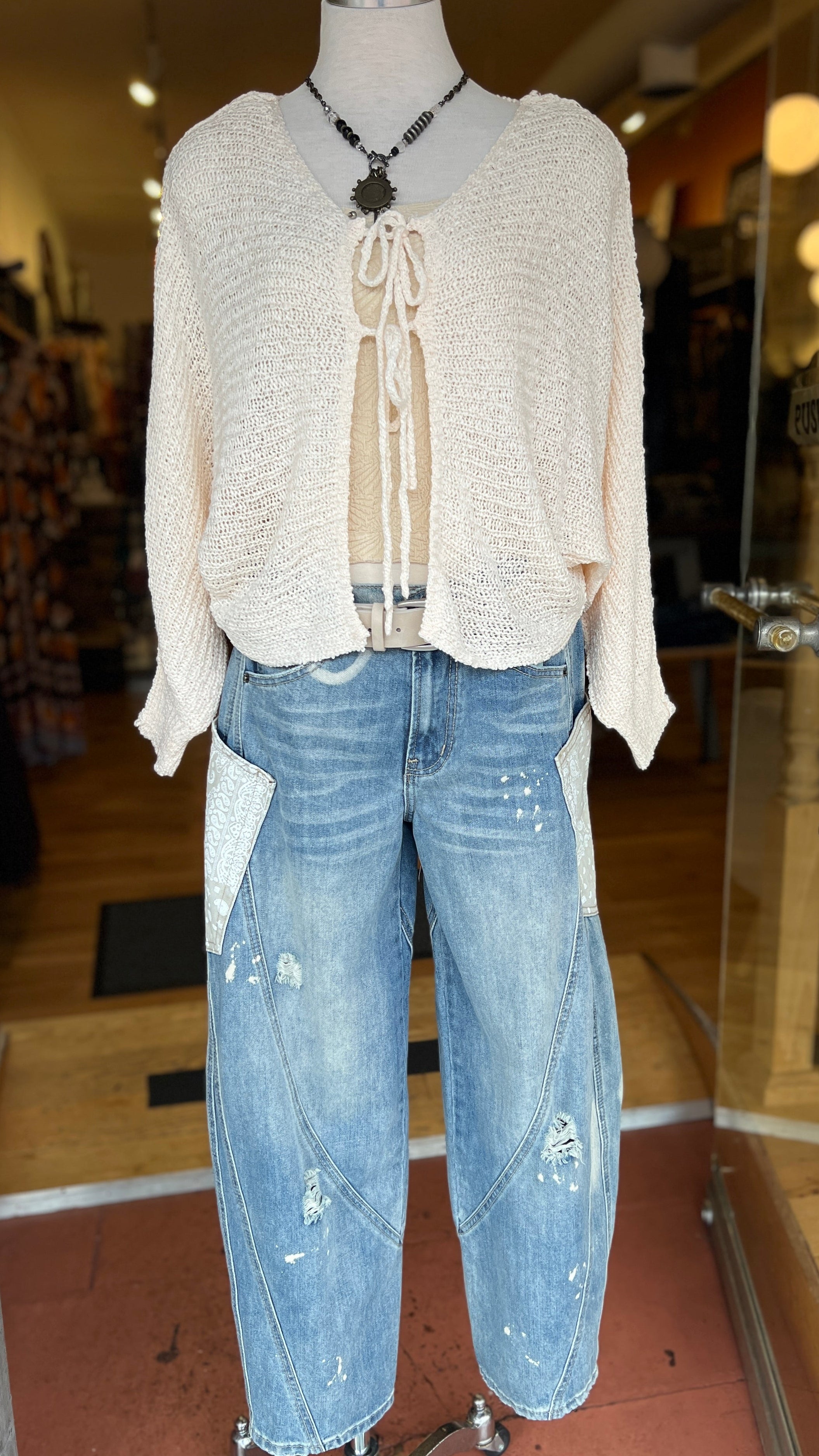 Cream Dolman Sleeve Tie Front Cardigan