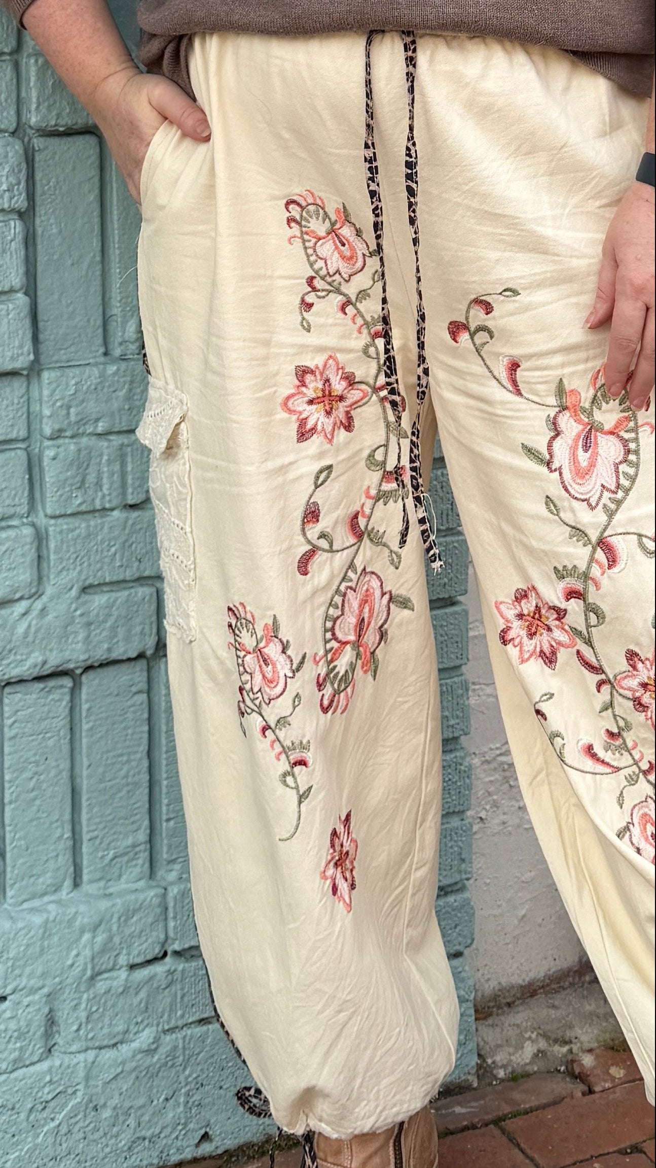 Peace Time Getaway Boho Lounge Pants with Crochet Trim