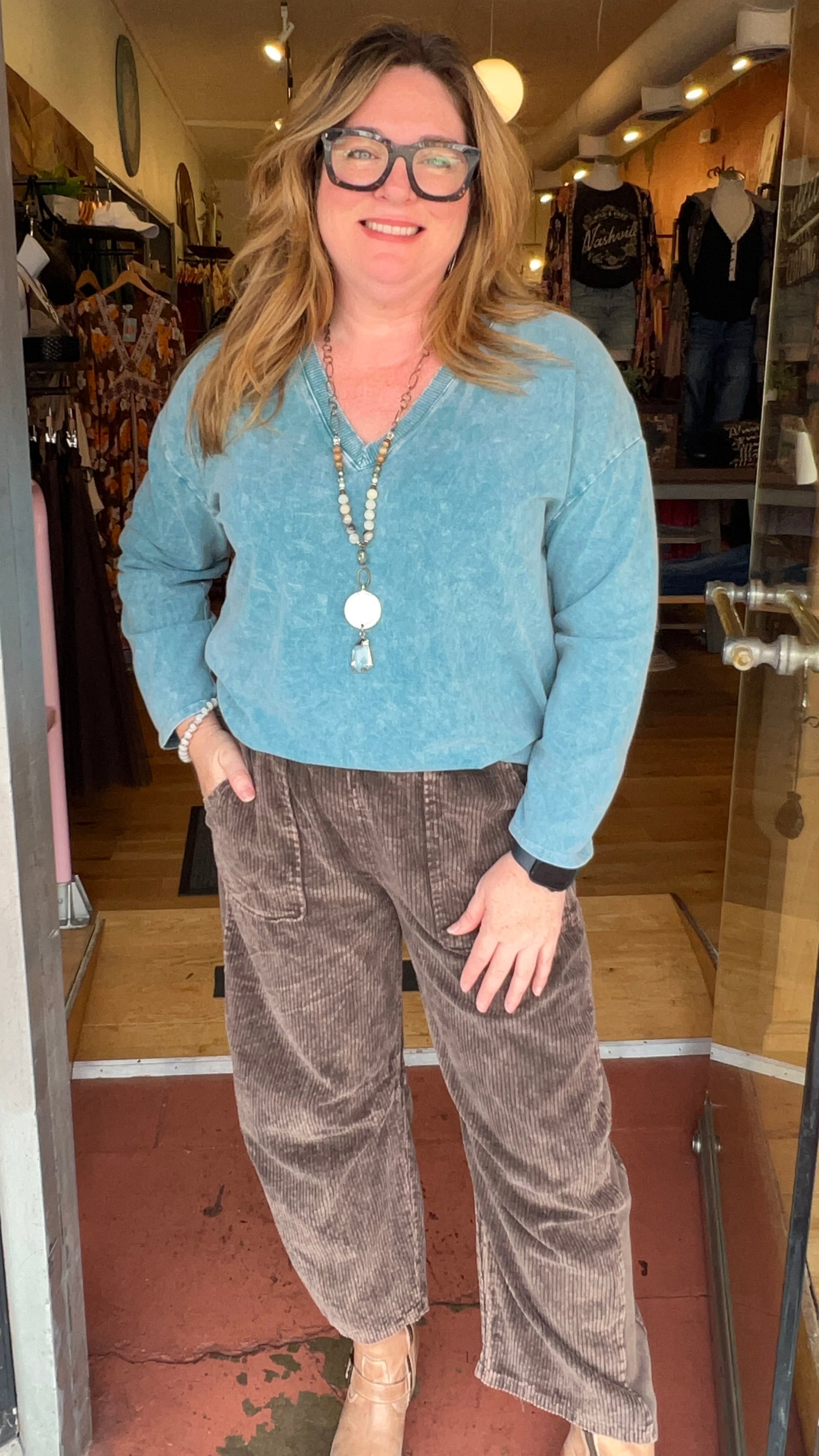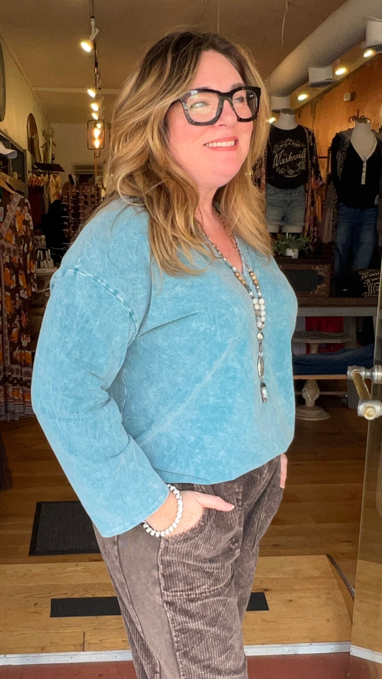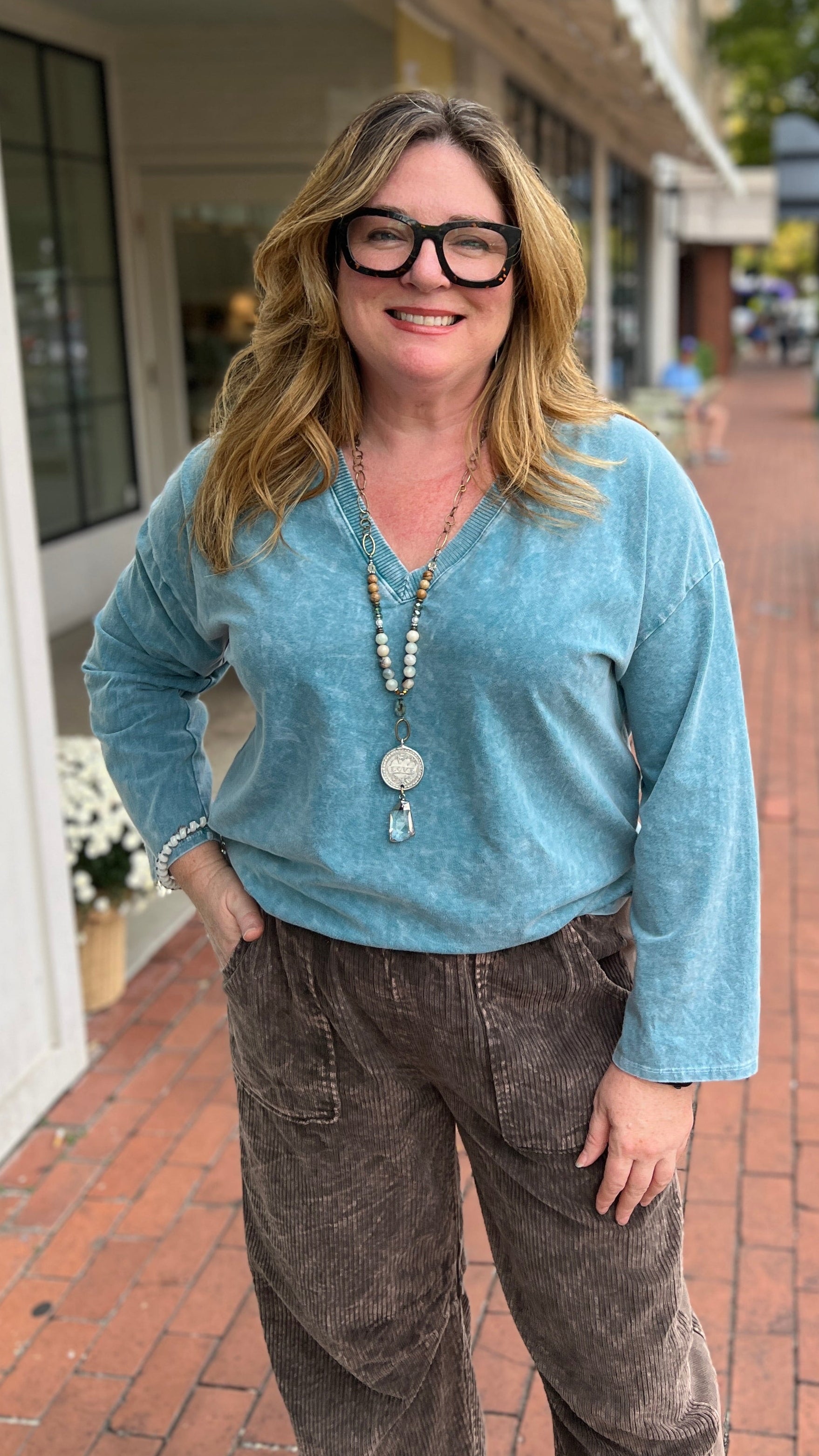 Everyday Favorite V Neck Top in Teal