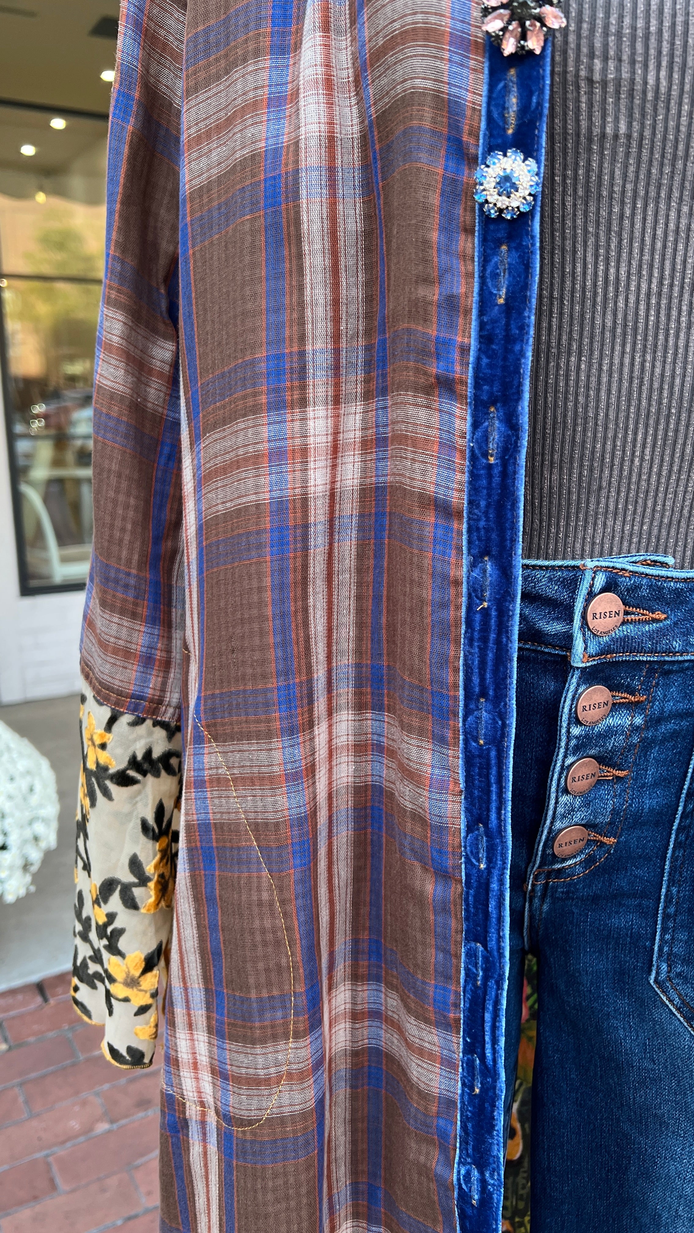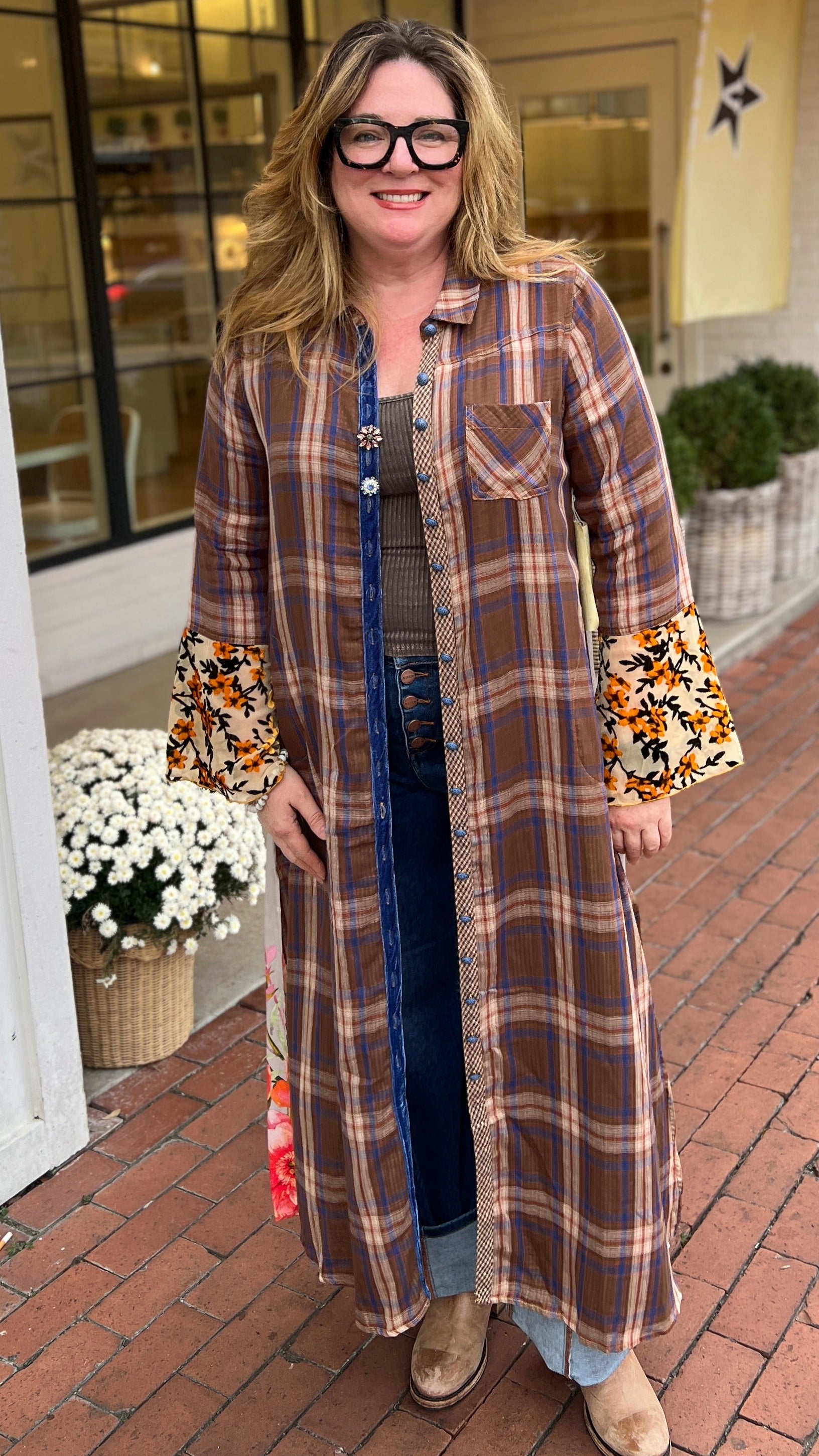 Anna Duster In Chocolate Brown Plaid by Aratta