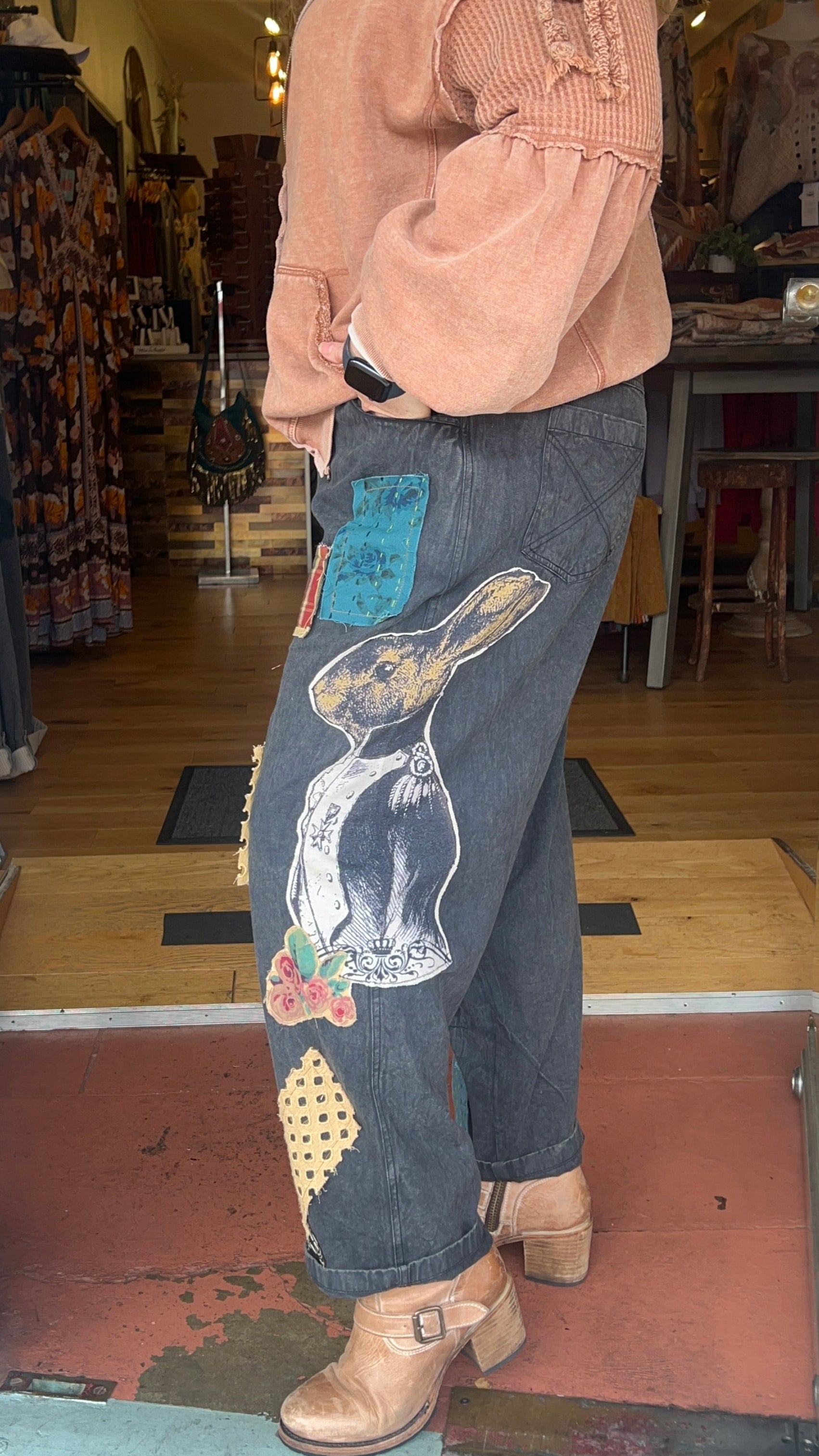 The Magic Bunny Patchwork Black Denim Pants