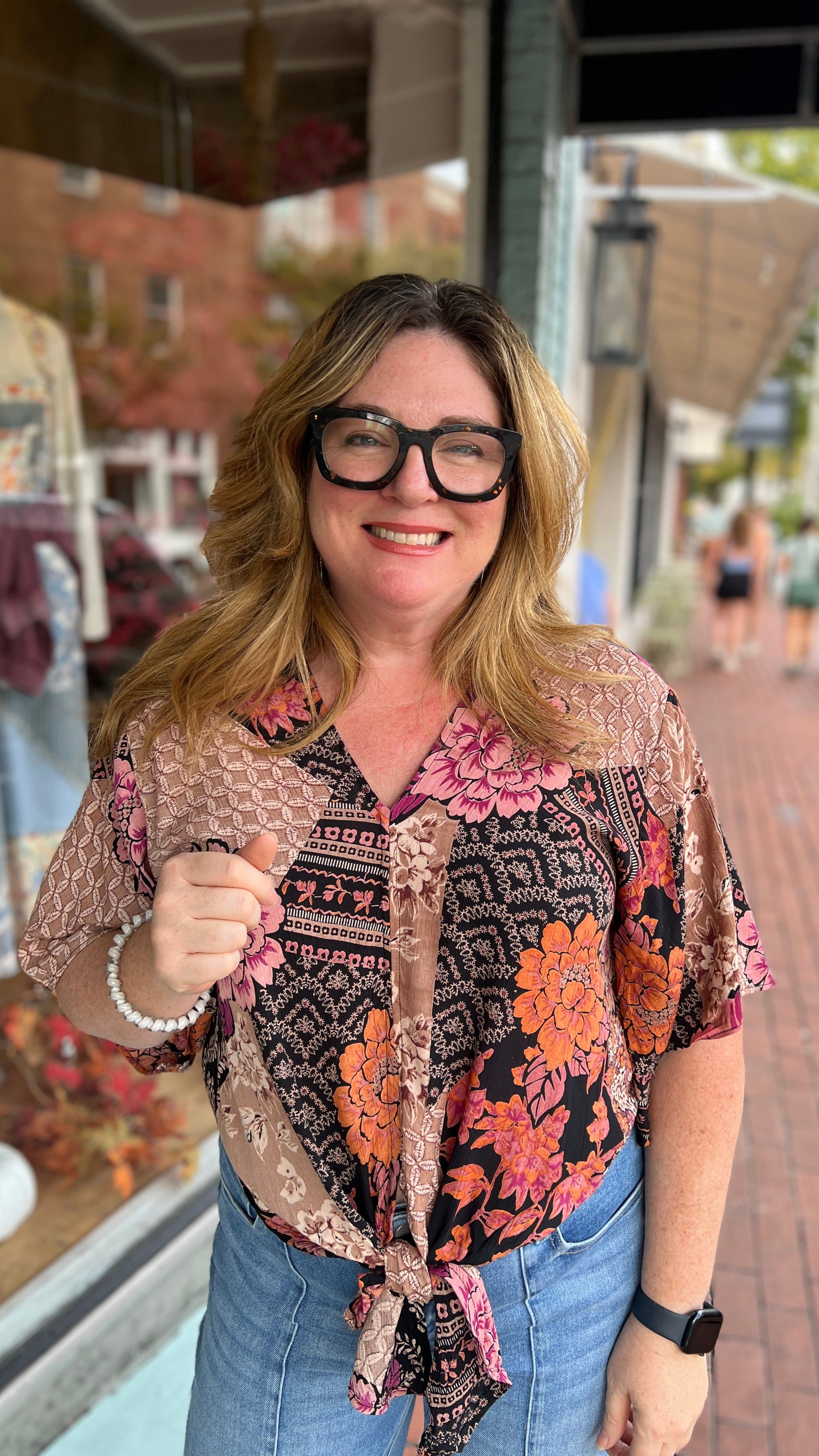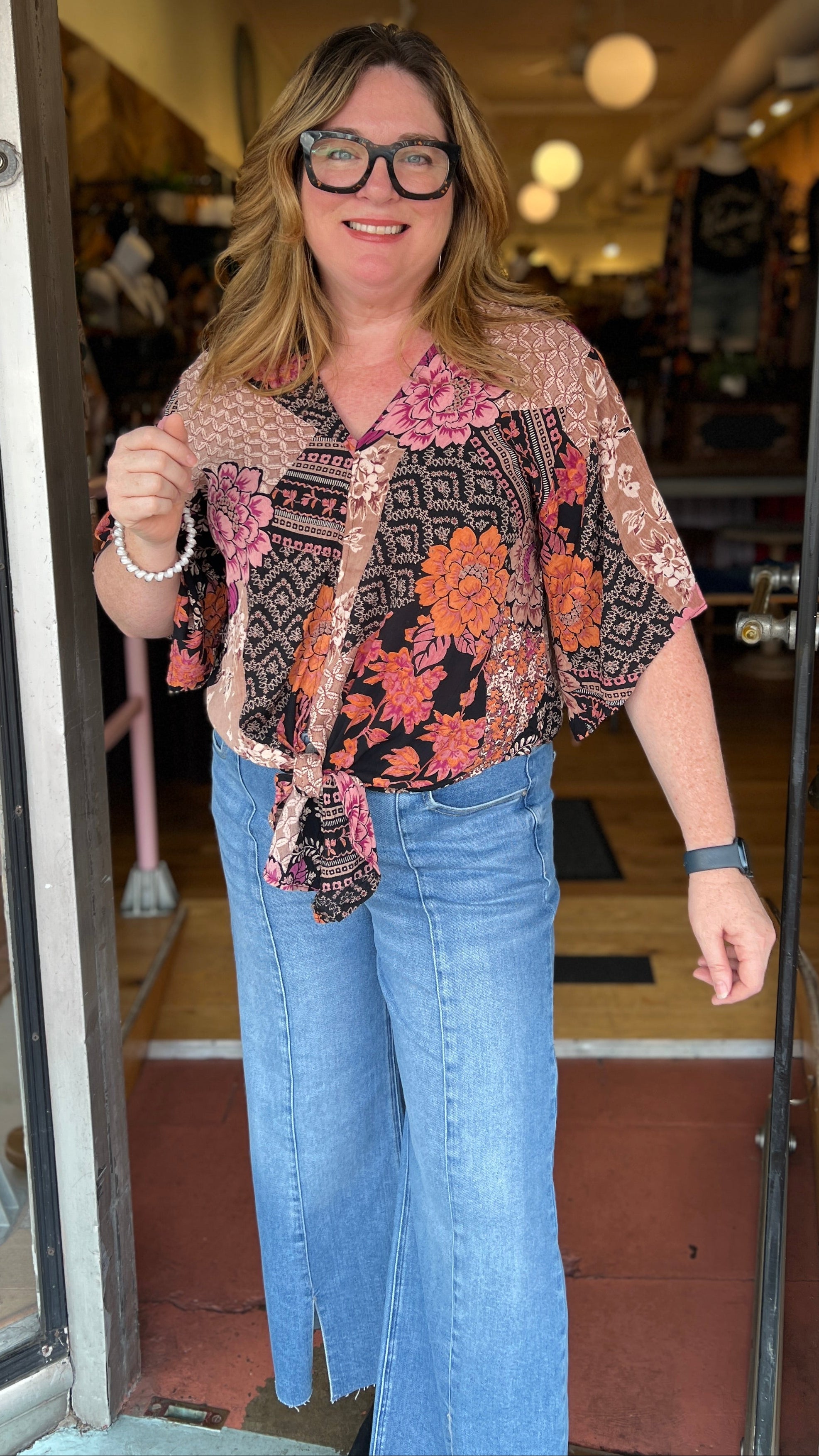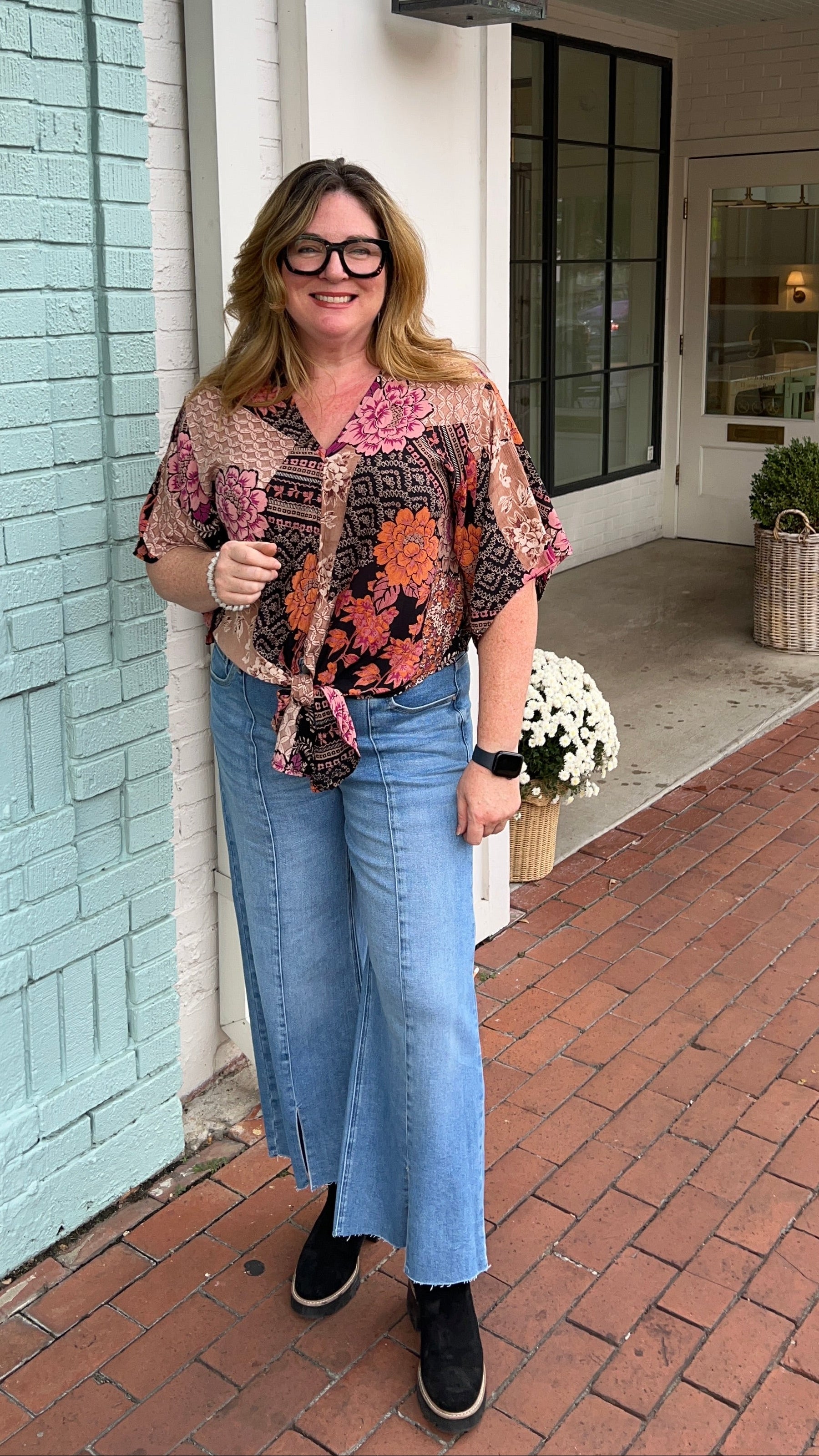 Black Fall Floral Tie Front Top