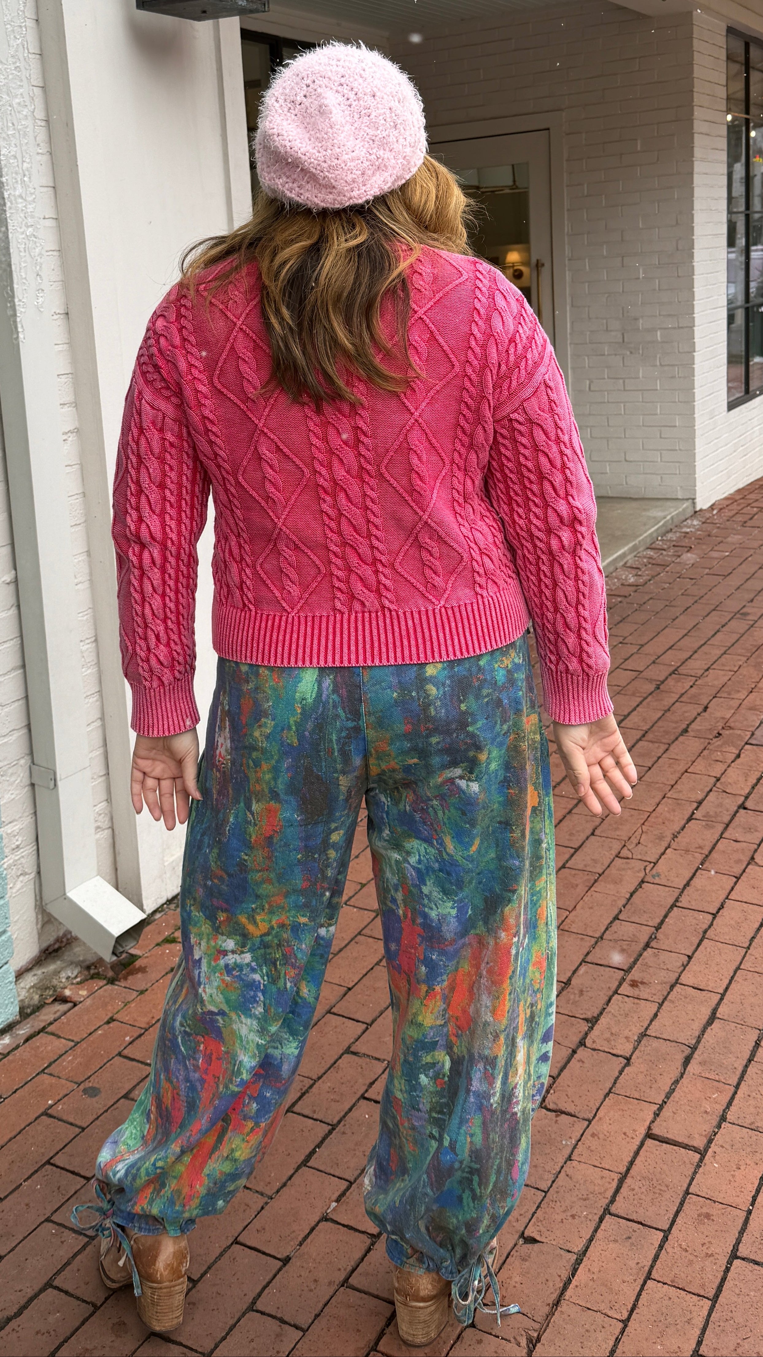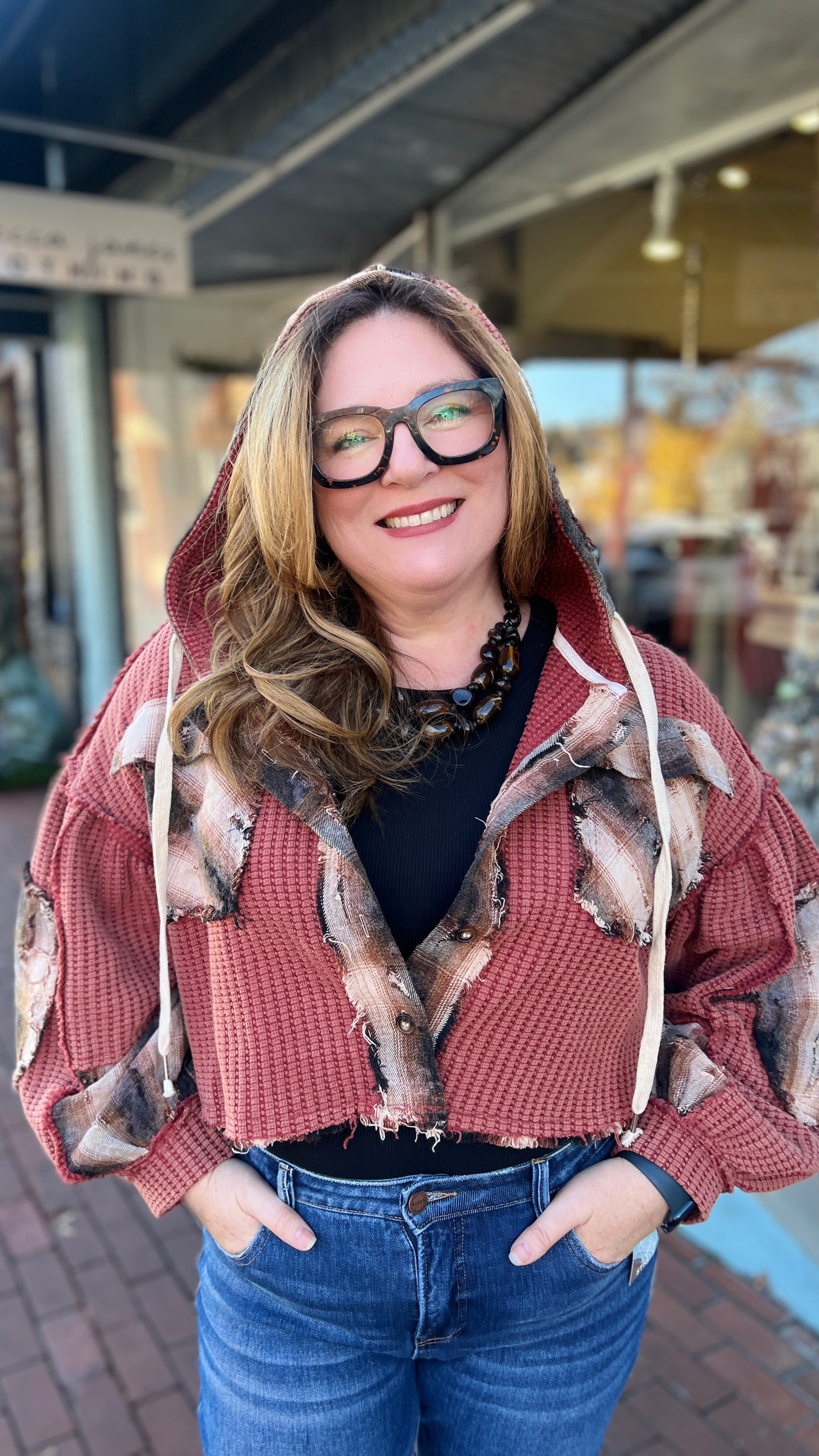 Vintage Wash Red Ballon Sleeve Thermal Knit Jacket