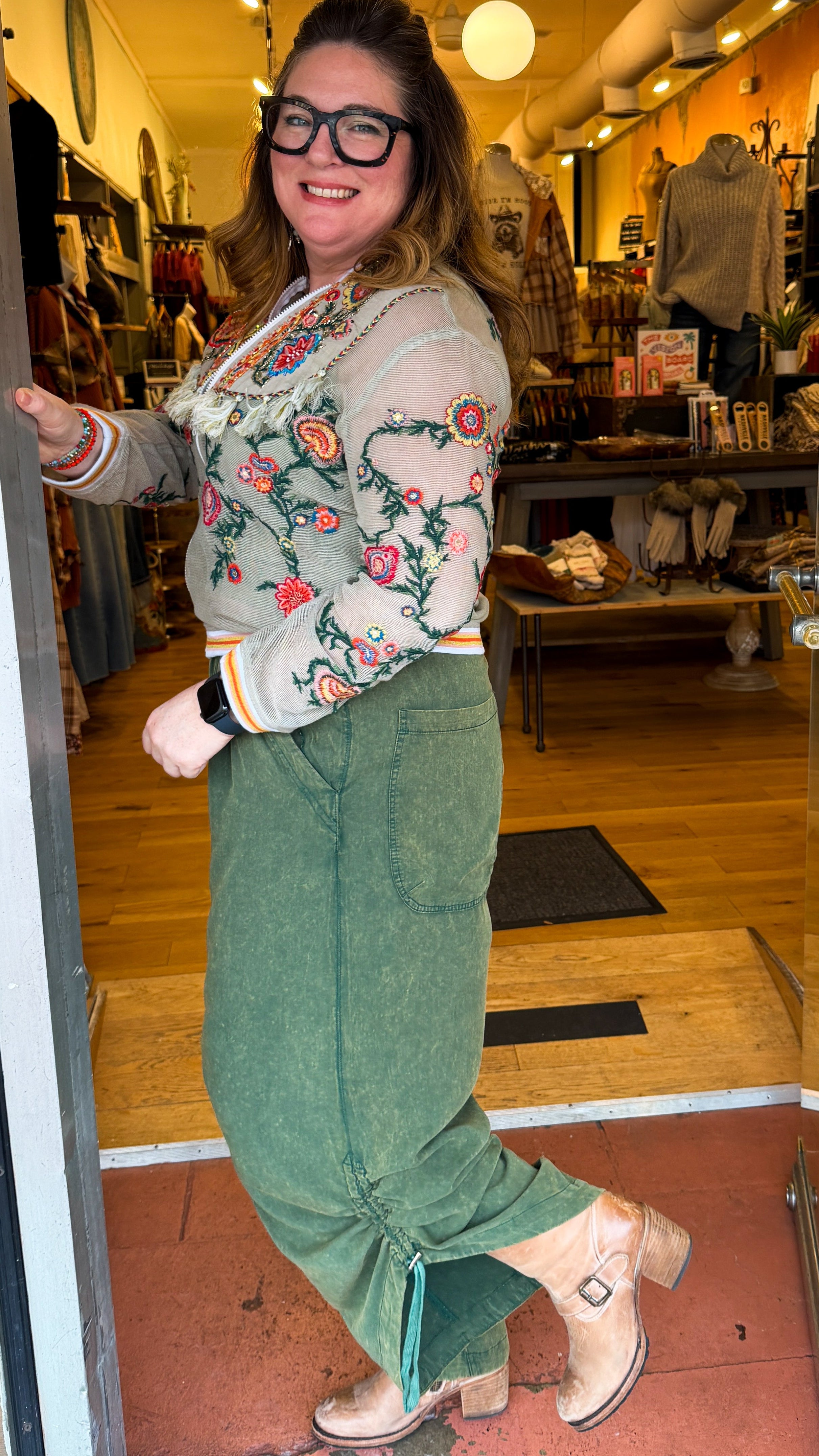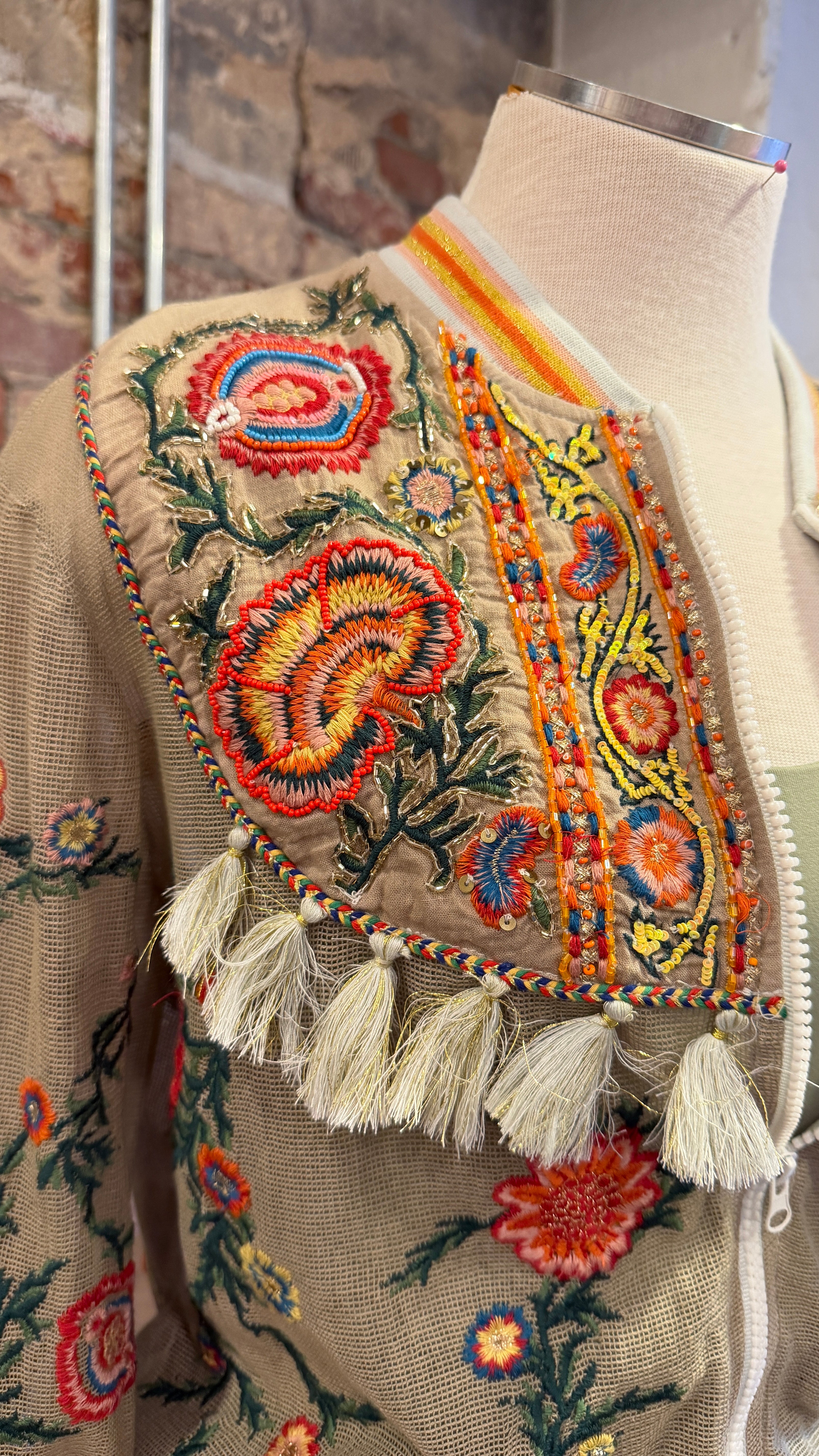 Aratta Bohemian Floral Embroidered Mesh Bomber Jacket