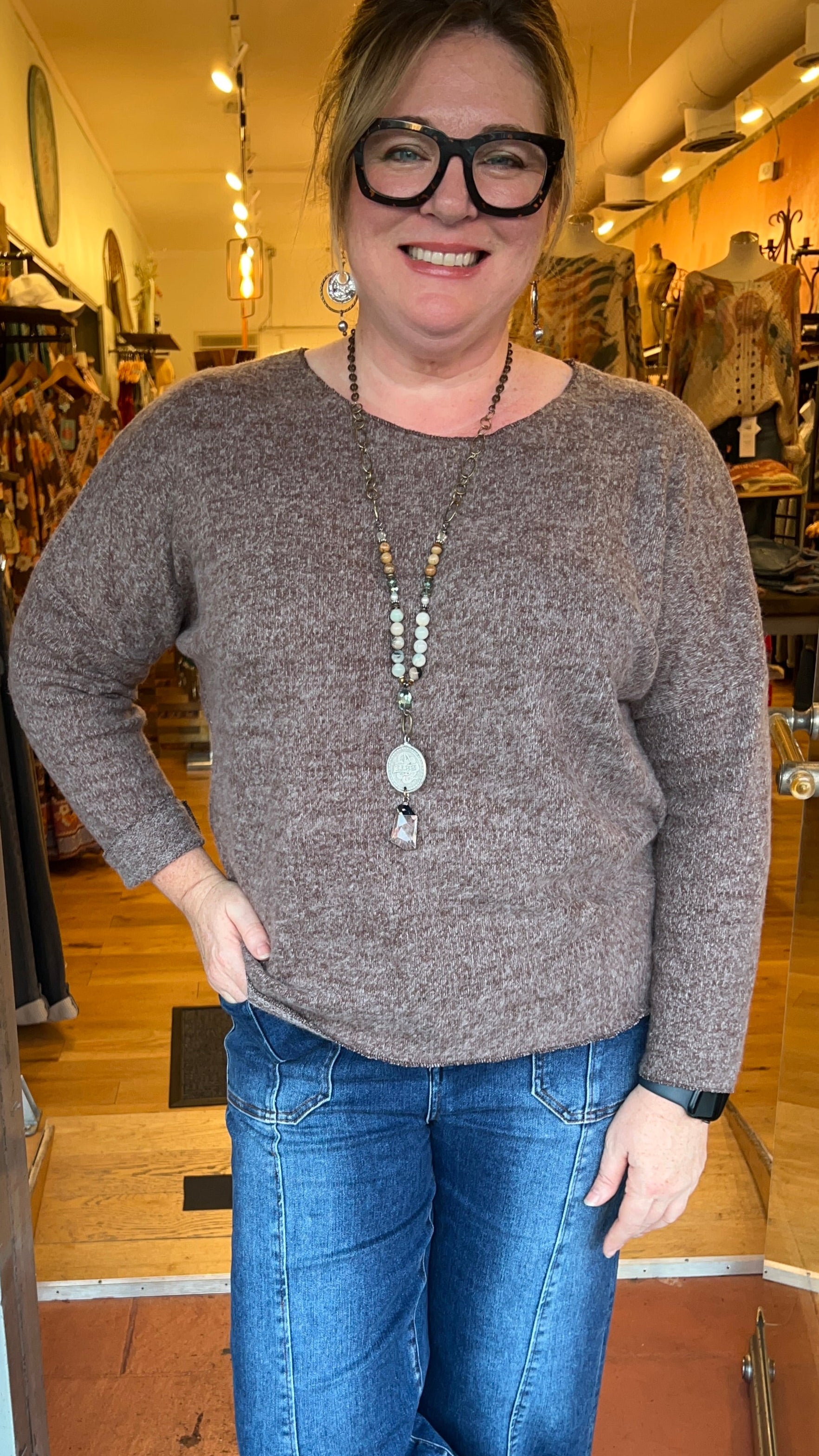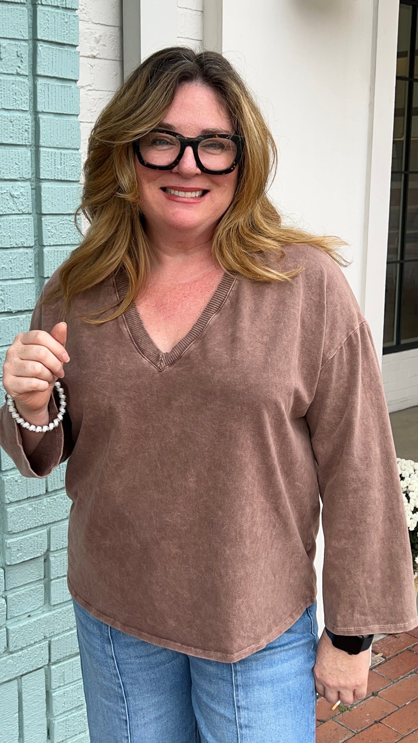Everyday Favorite V Neck Top in Chocolate Brown