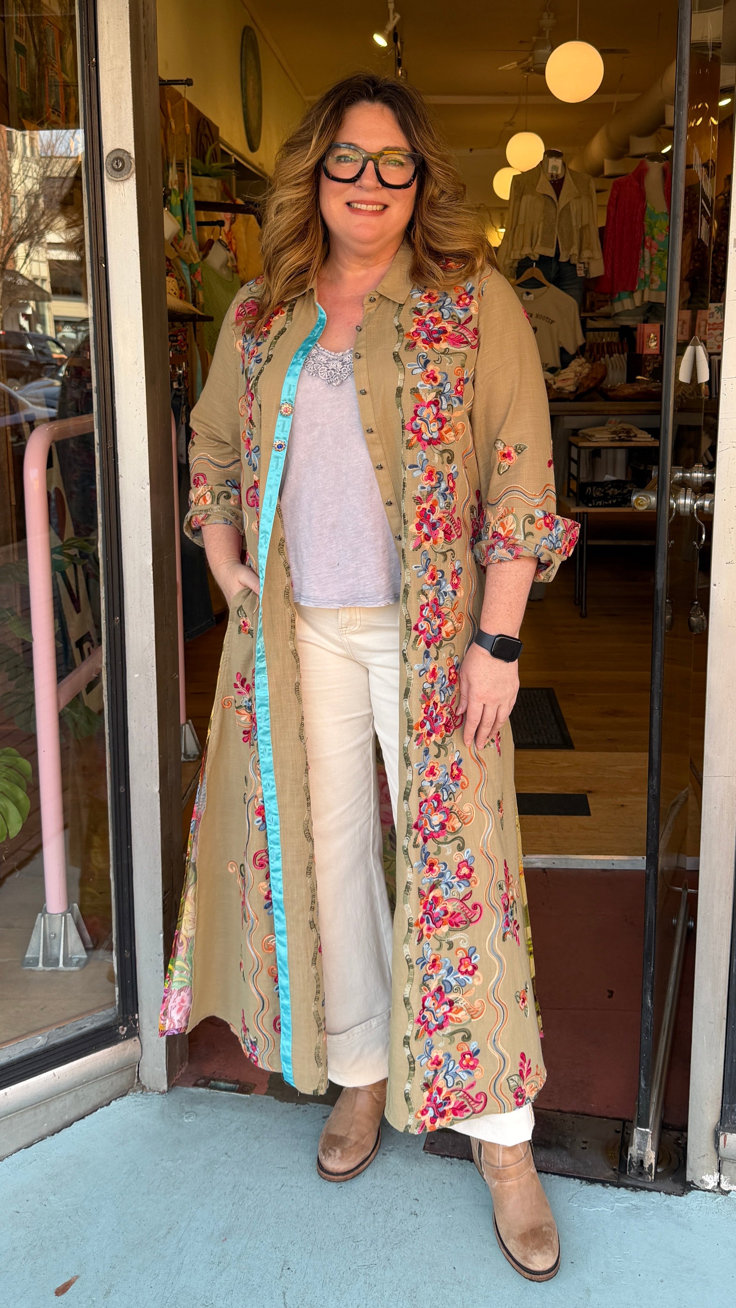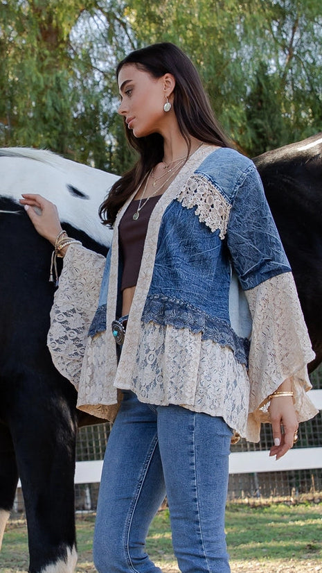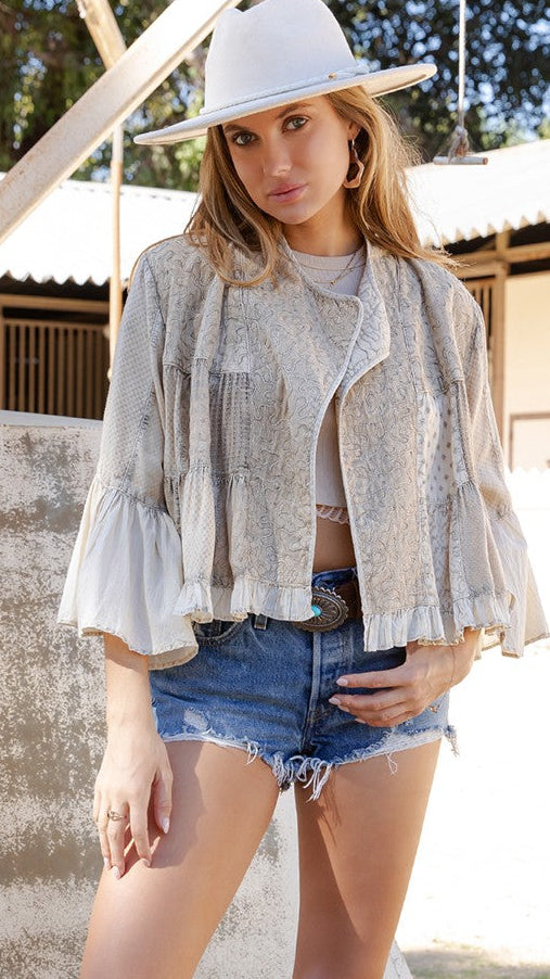 Aria Antique Cream Embroidered Bell Sleeve Crop Jacket