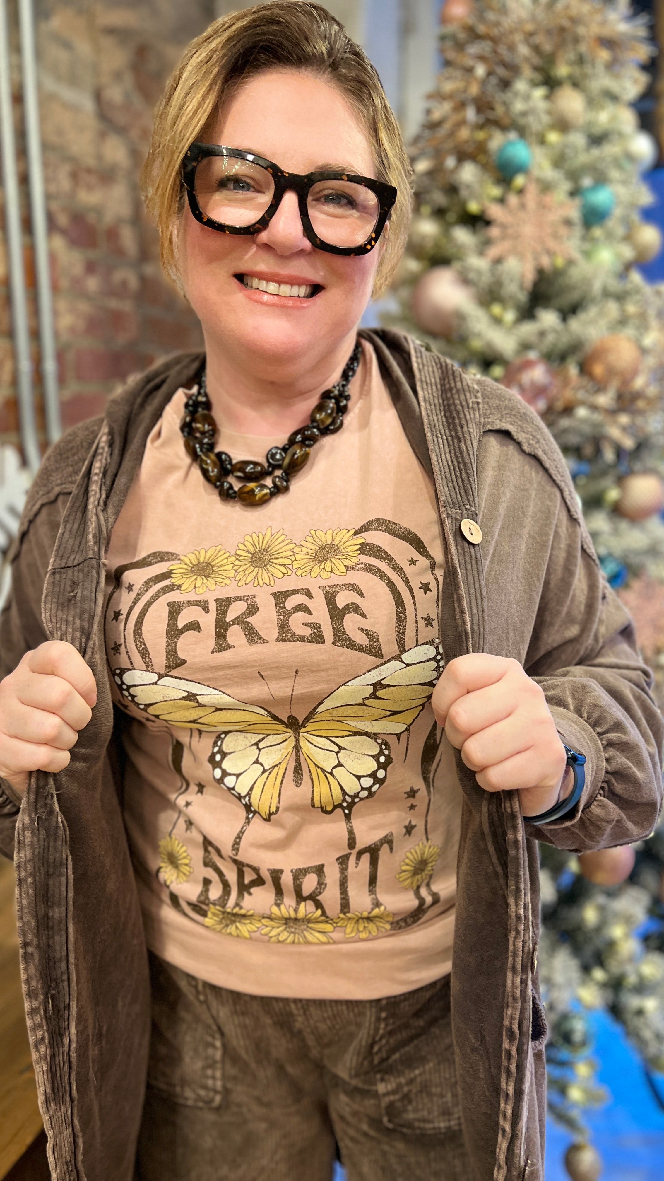 Dusty Pink Free Spirit Butterfly Graphic Tee