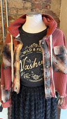 The Vintage Wash Red Balloon Sleeve Thermal Knit Jacket is that perfectly boho, slightly edgy holiday layer you didn’t know you needed. Made from 100% cotton thermal knit by POL, this cropped hooded jacket blends cozy texture with unexpected details — including contrasting plaid accents on the elbows, pockets, and button placket.