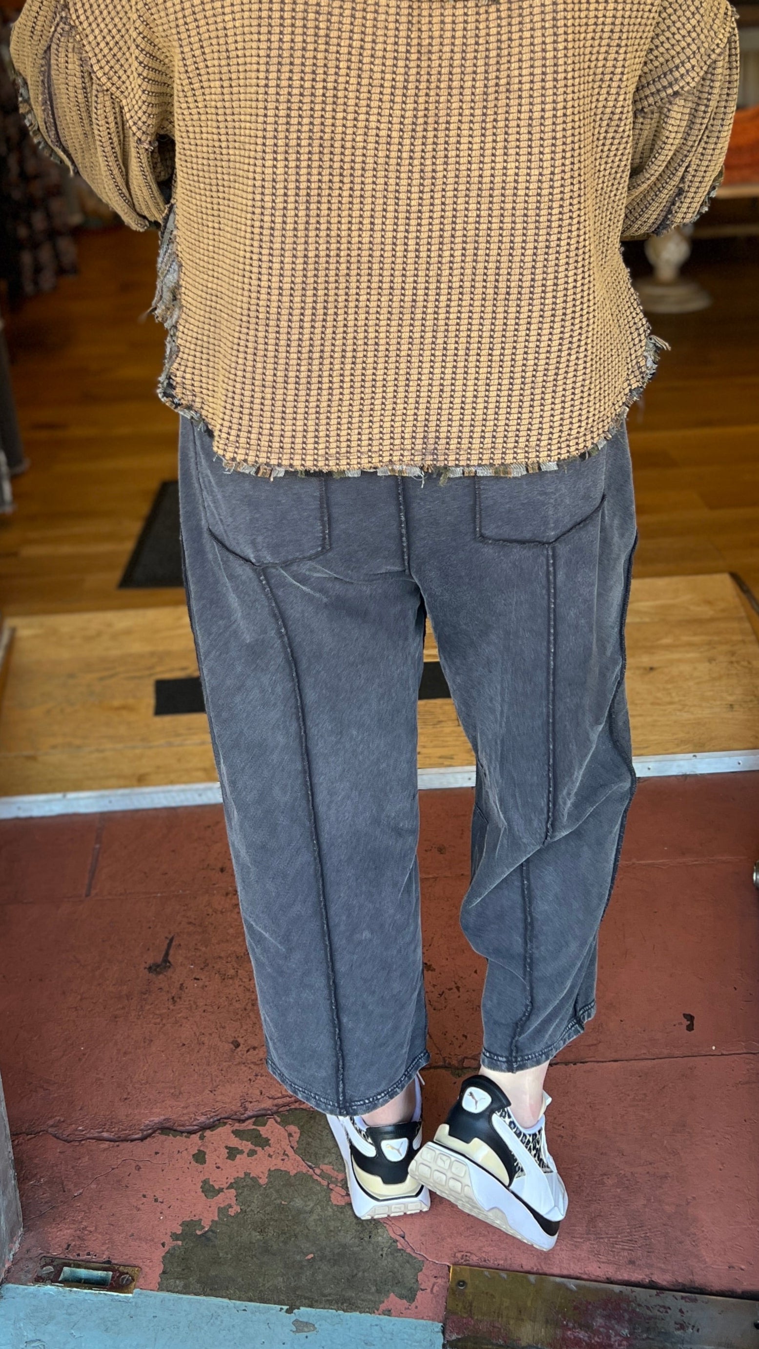 A flattering twist on casual comfort—these mineral washed barrel pants are your new fall essential. Made from ultra-soft cotton terry knit with slimming seam details, they’re perfect for everyday looks that can be dressed up or worn casually with sneakers. Pair them with sweaters, tees, or blouses for an effortlessly chic outfit.