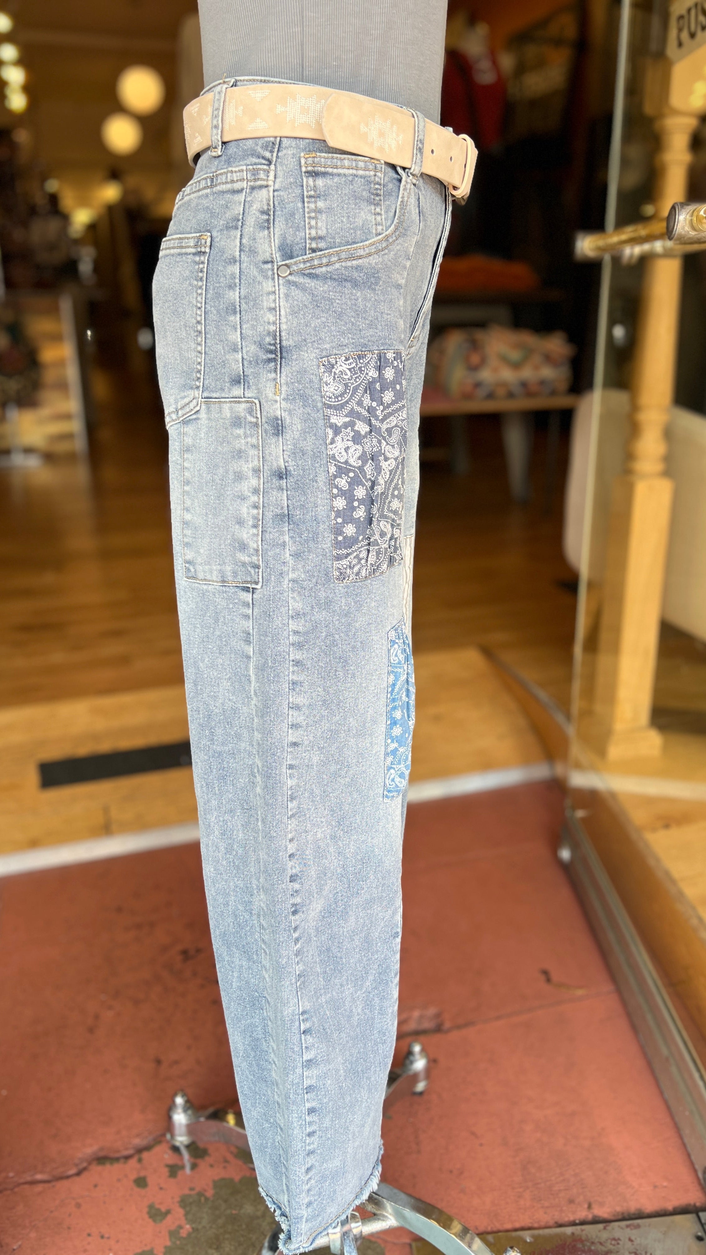 Bring a little fun into your denim rotation—these jeans blend classic straight-leg comfort with playful patchwork details. Perfect for concerts, weekend outings, or adding a statement piece to your everyday wardrobe.