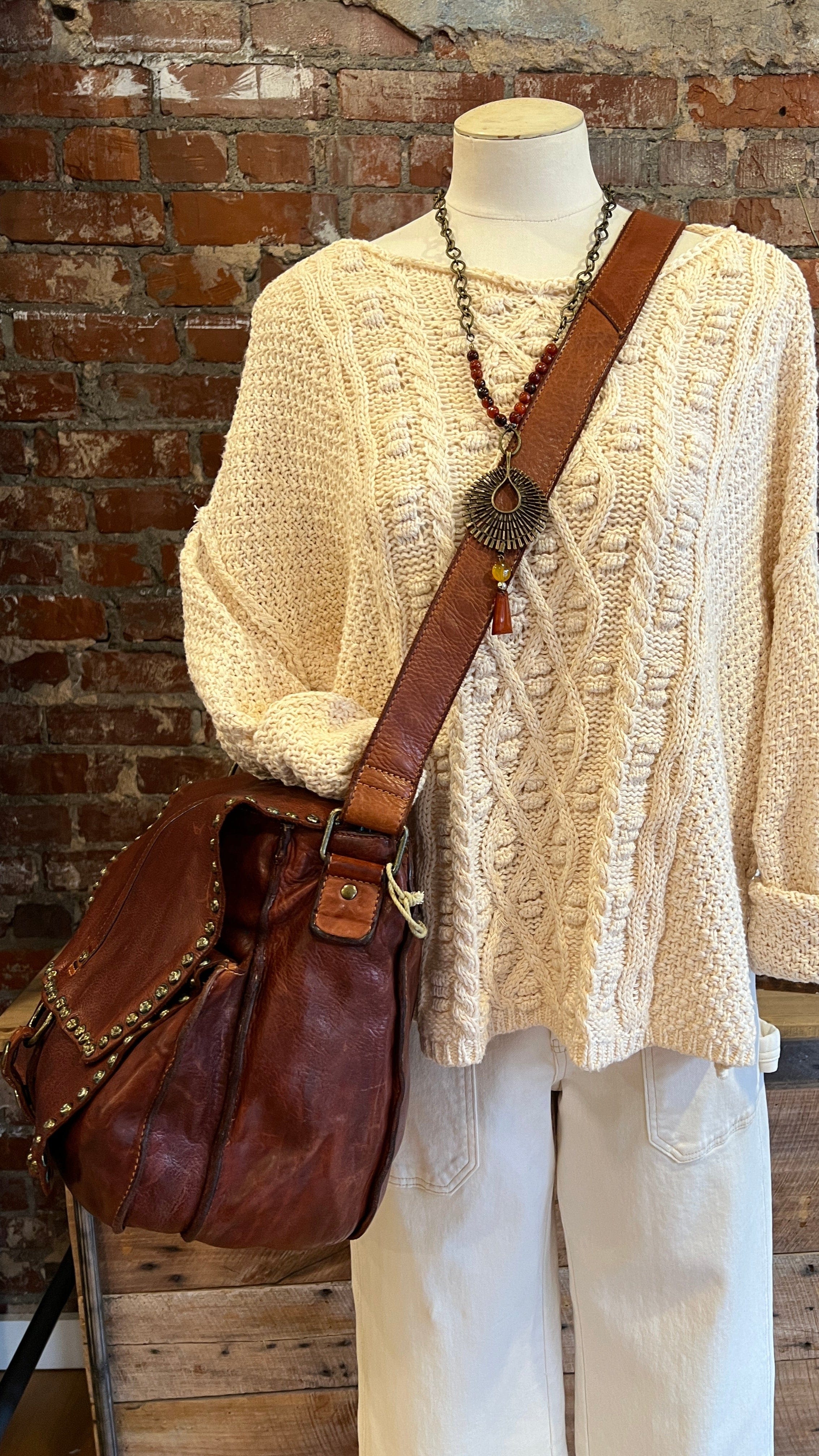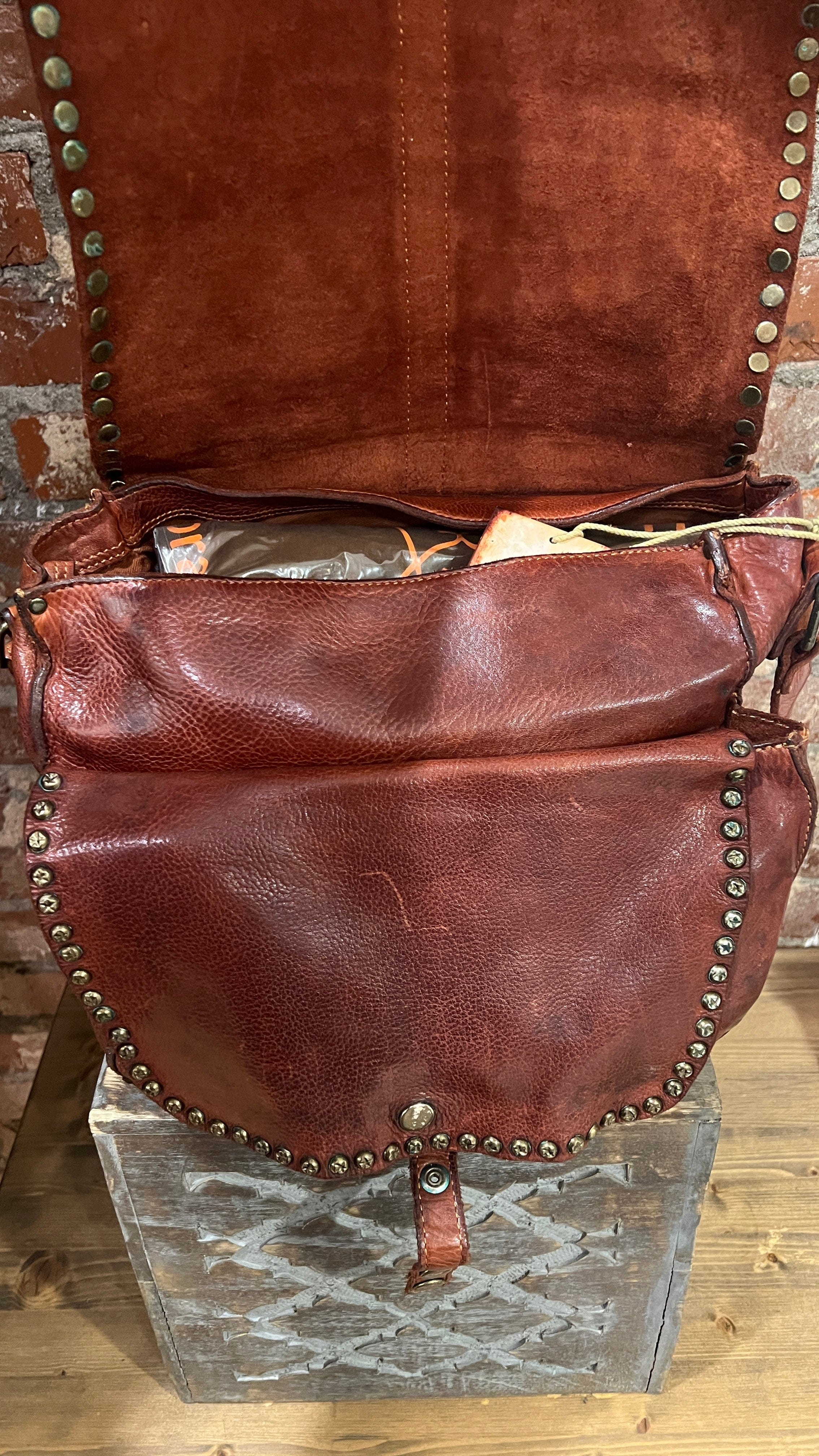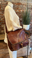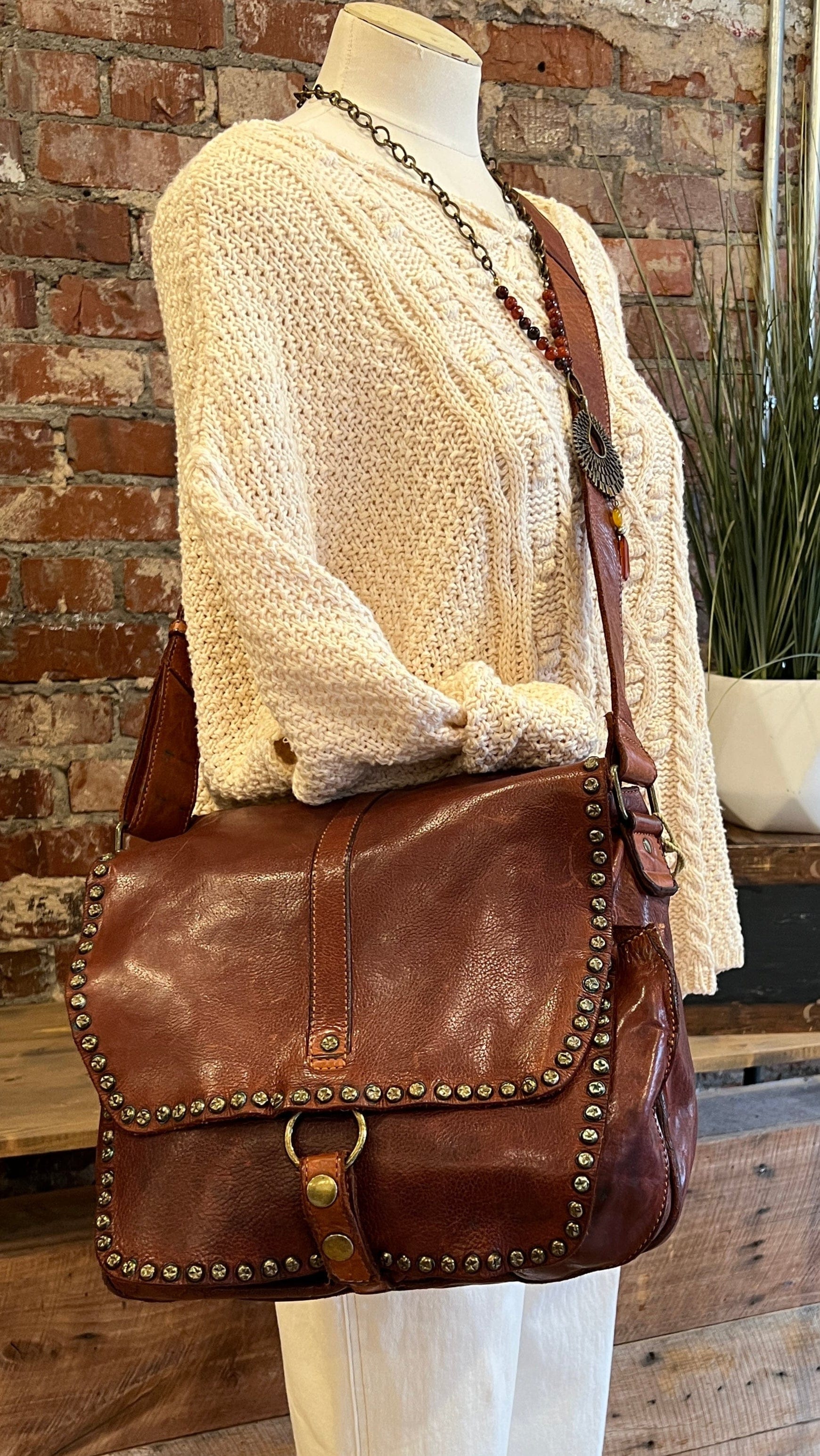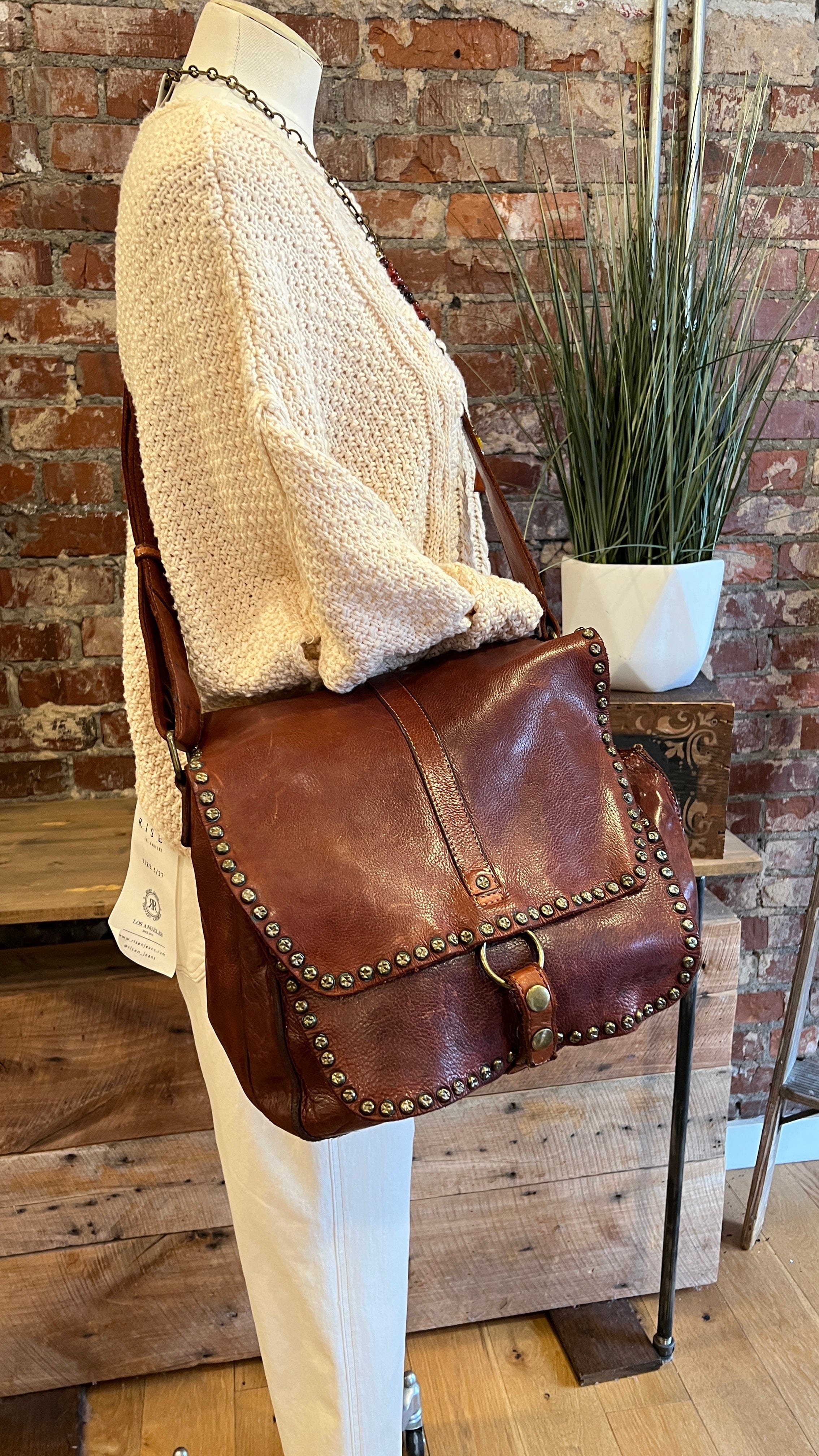 Thoughtful details like brass stud accents, a secure snap closure, and a fully adjustable full grain leather strap make it as practical as it is polished. Whether you're heading to work, brunch, or a weekend getaway, this bag is ready to go wherever life takes you.