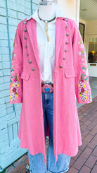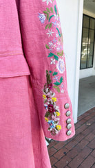 Embrace your femininity with the Dreaming of the City Pink Coat by Aratta. Made from 100% natural fabric, this coat boasts intricate hand beading and embroidery for a touch of elegance. With a flattering fit, it's the perfect way to elevate your style and stand out in the city. Perfect weight to wear year round.