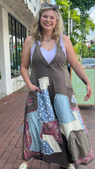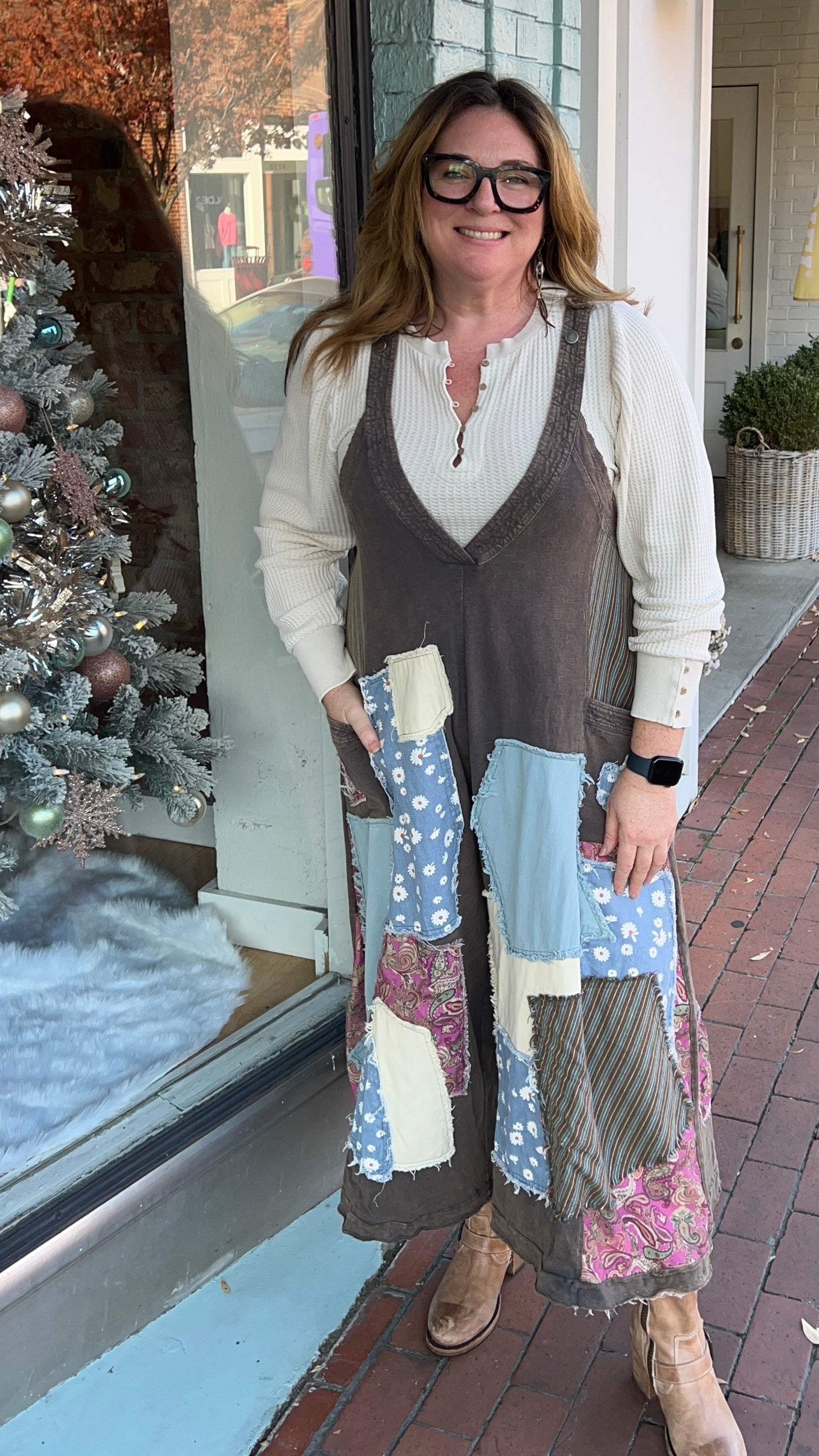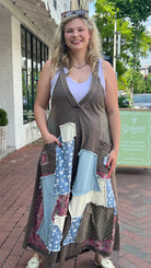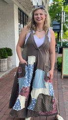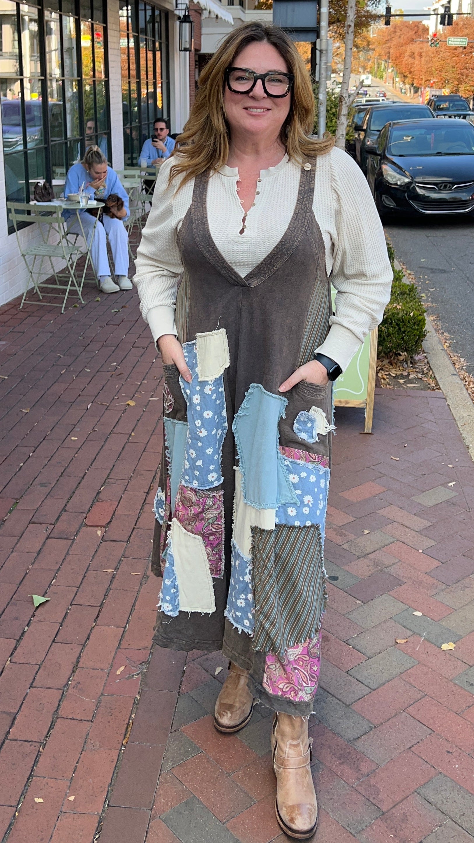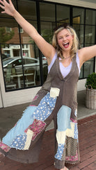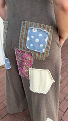 Get ready to fall in love with your new favorite summer staple — the Jump for Joy Patchwork Jumpsuit by BlueVelvet! Made from soft, breathable charcoal cotton jersey, this wide-legged, oversized jumpsuit features mixed fabric patchwork detailing that gives it a bold, artistic, free-spirited vibe.