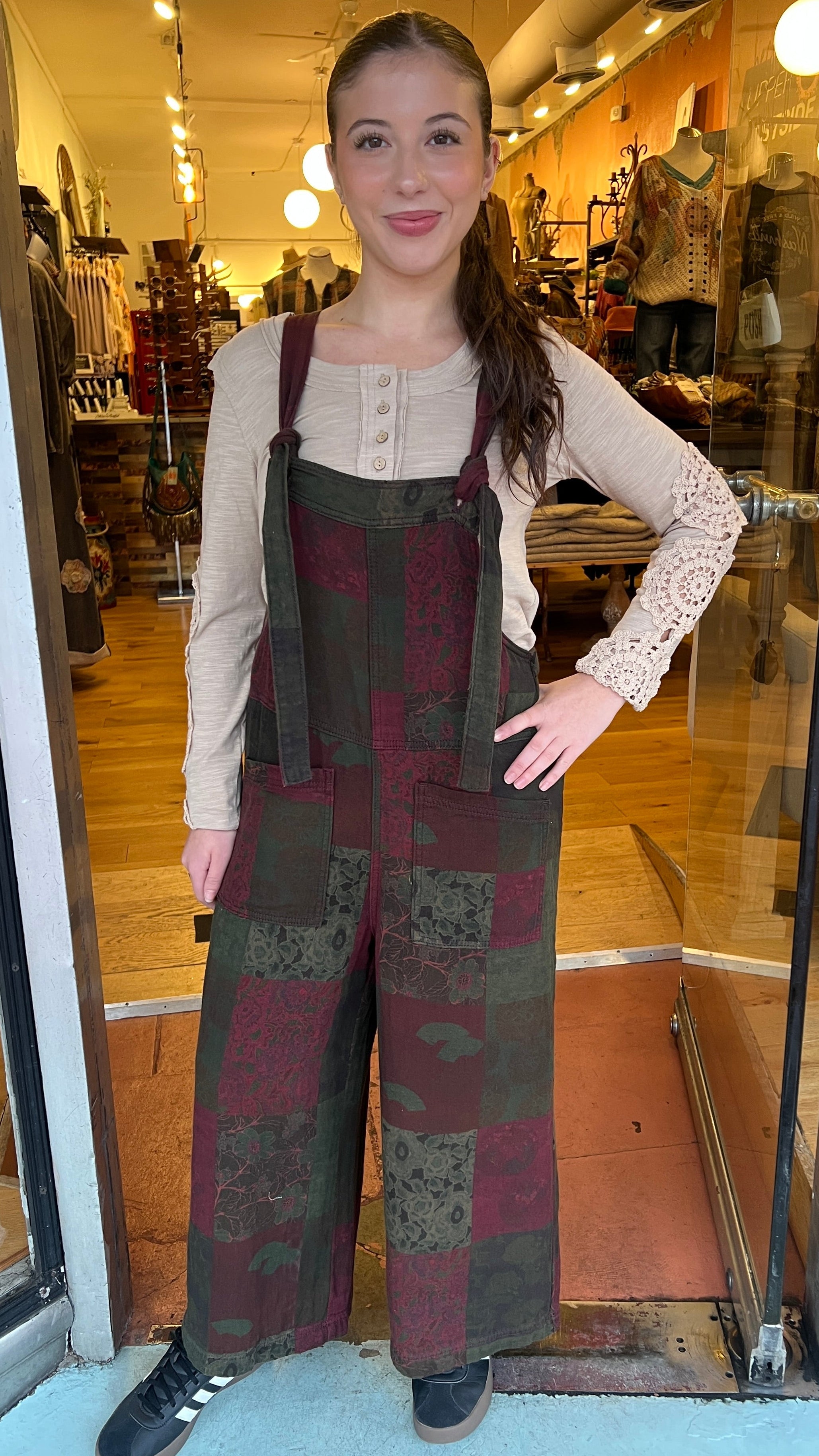 The perfect one-and-done outfit for cozy fall days. These patchwork cotton gauze overalls are lightweight yet full of character, making them ideal for festivals, weekend farmers markets, or layering over a tee for casual everyday style. The relaxed wide-leg fit keeps you comfortable while the patchwork florals and abstracts add that signature boho charm.