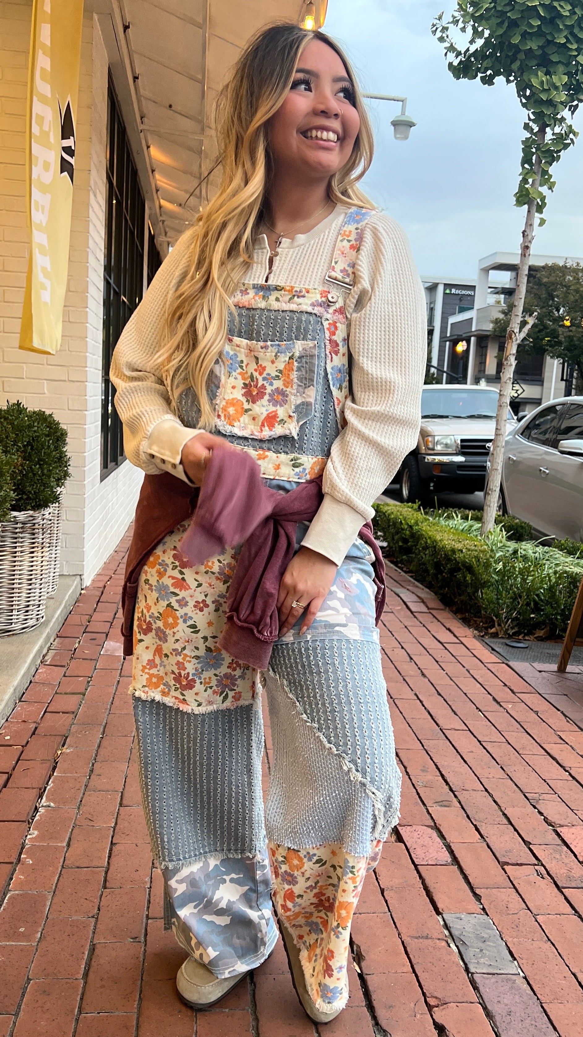 Embrace your free spirit with our uniquely designed Patchwork Floral & Camo Denim Overalls. These eye-catching cotton overalls blend whimsical floral prints with cool denim textures and a subtle camo accent, creating a truly one-of-a-kind statement piece. Perfect for those who love to express their individuality and stand out from the crowd, these overalls offer a playful yet stylish addition to any wardrobe.