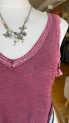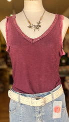 This merlot sleeveless top is a versatile layering piece that adds just the right amount of sparkle to your fall wardrobe. Made from soft, stretchy cotton, it features a sequin-trimmed neckline that dresses up the look while staying comfortable and easy to wear. With its one-size fit that works well for sizes S–XL, this tank is perfect under cardigans, jackets, or sweaters. Pair it with our Sunset Hunt Open Knit Sweater or one of our fall jackets, or grab it in rust and tan to build a collection you’ll reach for again and again.