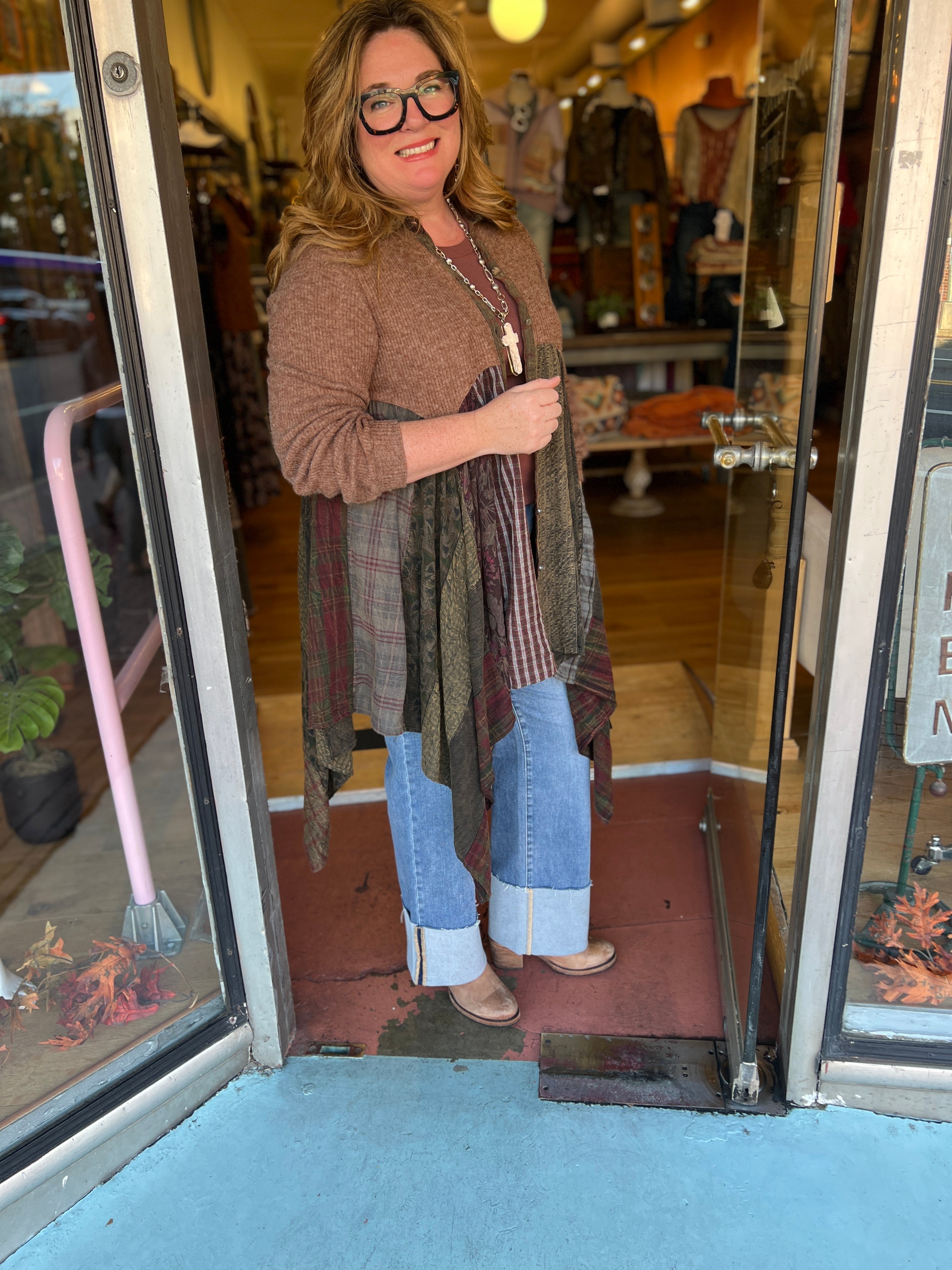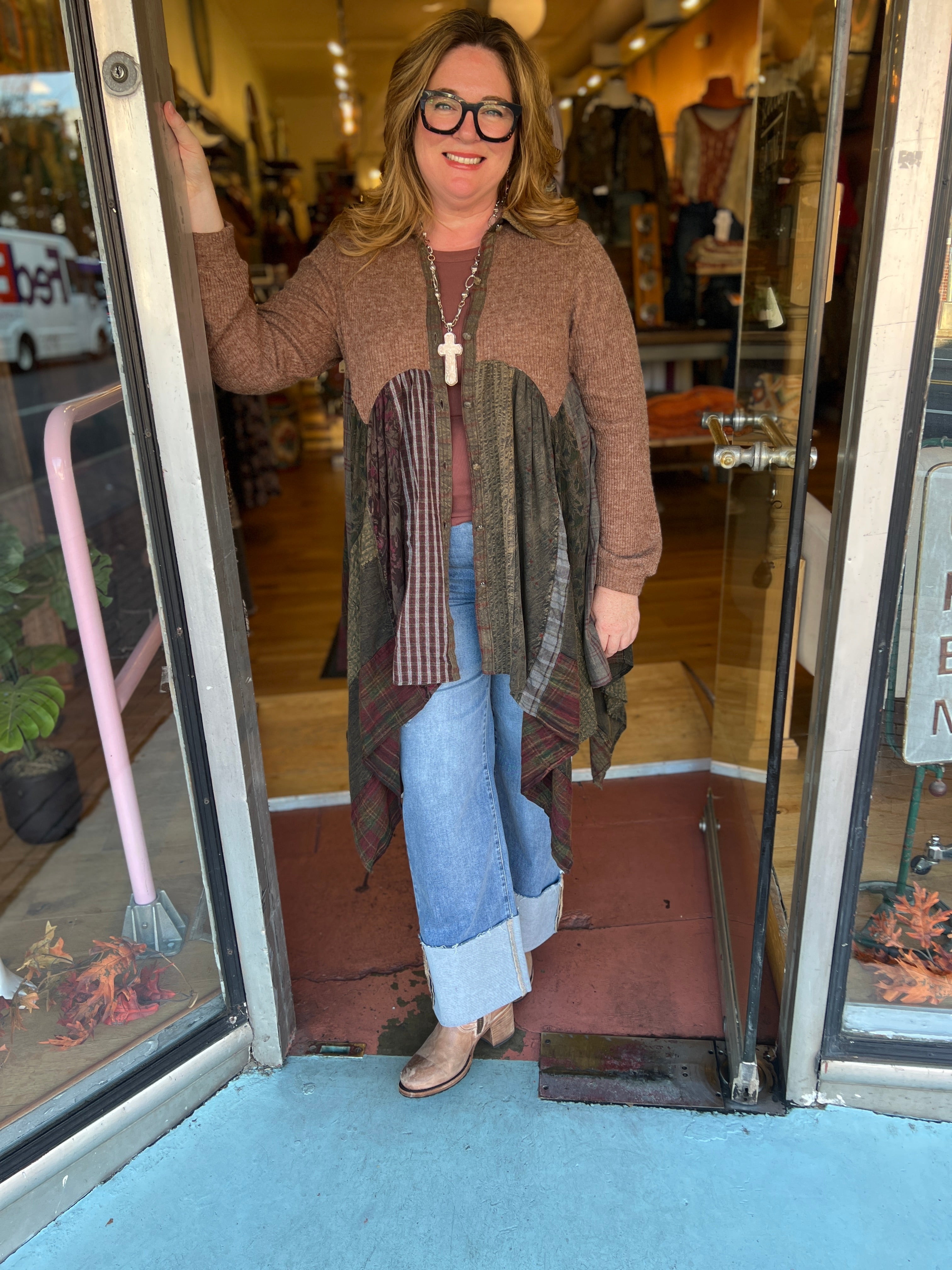 Flirty Mocha Boho Knit Tunic Dress Jacket