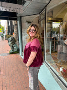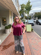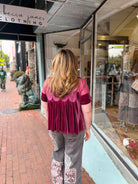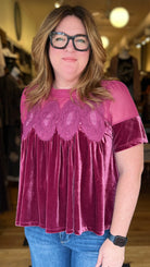 The Berry Lace Detail Velvet Babydoll Top is everything you want in a holiday piece — soft, feminine, and full of festive charm. Crafted from rich berry velvet with delicate lace detailing at the neckline and sleeves, it’s the perfect mix of romantic and relaxed.