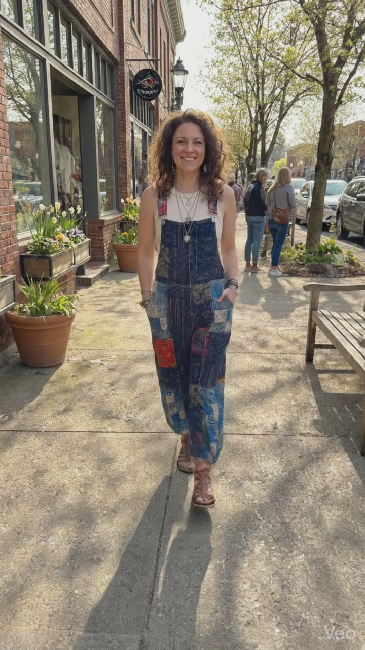 Artisan Patchwork Cotton Jogger Overalls - Boho Utility Jumpsuit
