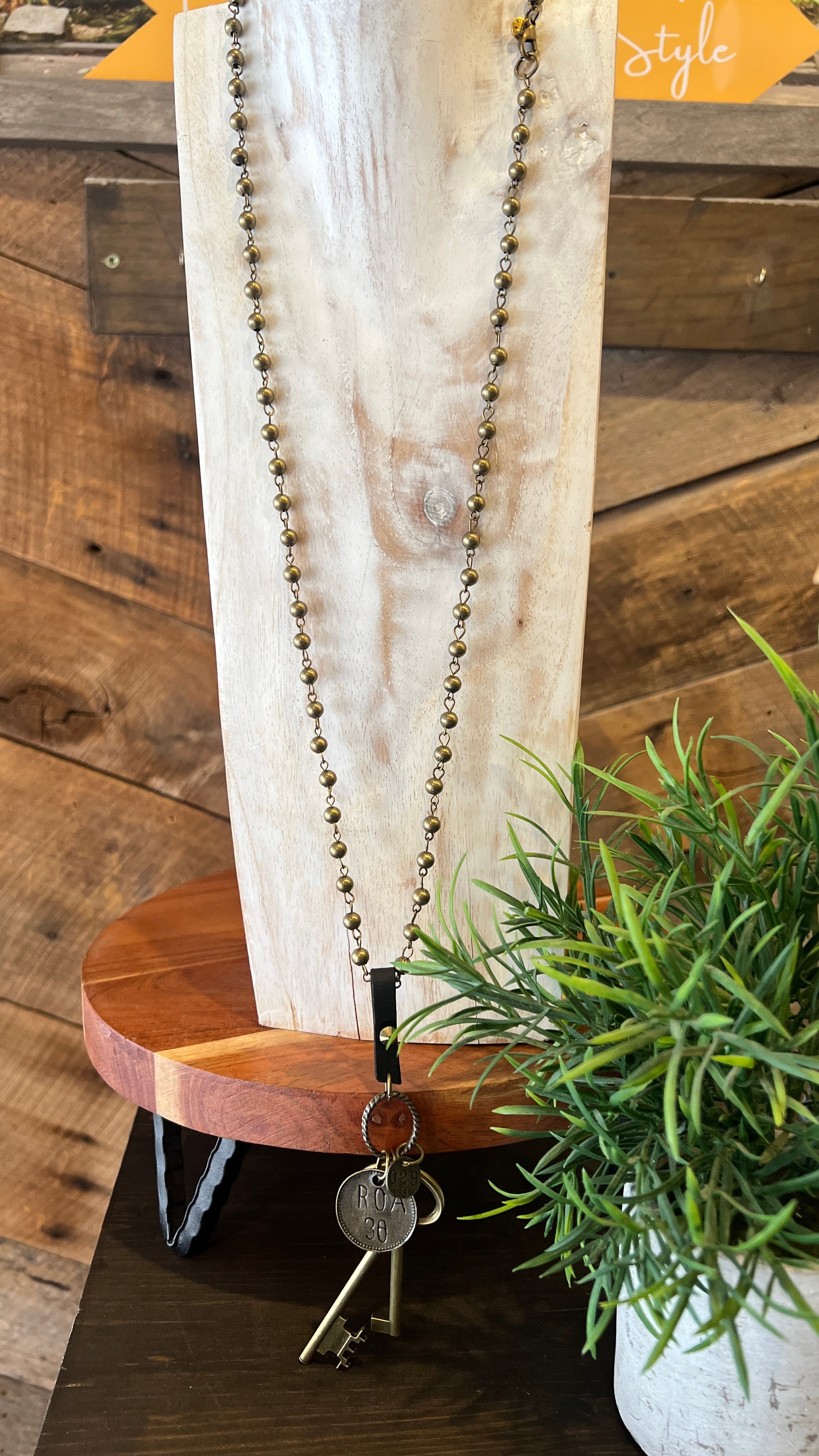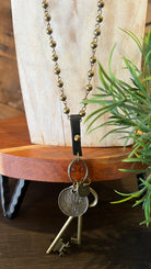 Charmed Long Brass Necklace with Key Charms