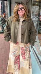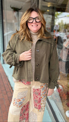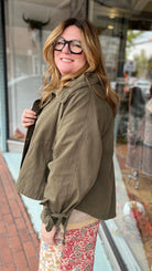 Effortlessly cool and endlessly versatile — the Dark Olive Cotton Swing Jacket is the perfect lightweight layer for fall. Made from soft cotton with a relaxed, swing-style silhouette, it features an oversized lapel with drawstring detail, zippered pockets, and a back pleat that gives it beautiful movement and shape.