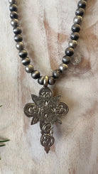 Fresh Water Pearl Tibetan Silver Cross Necklace