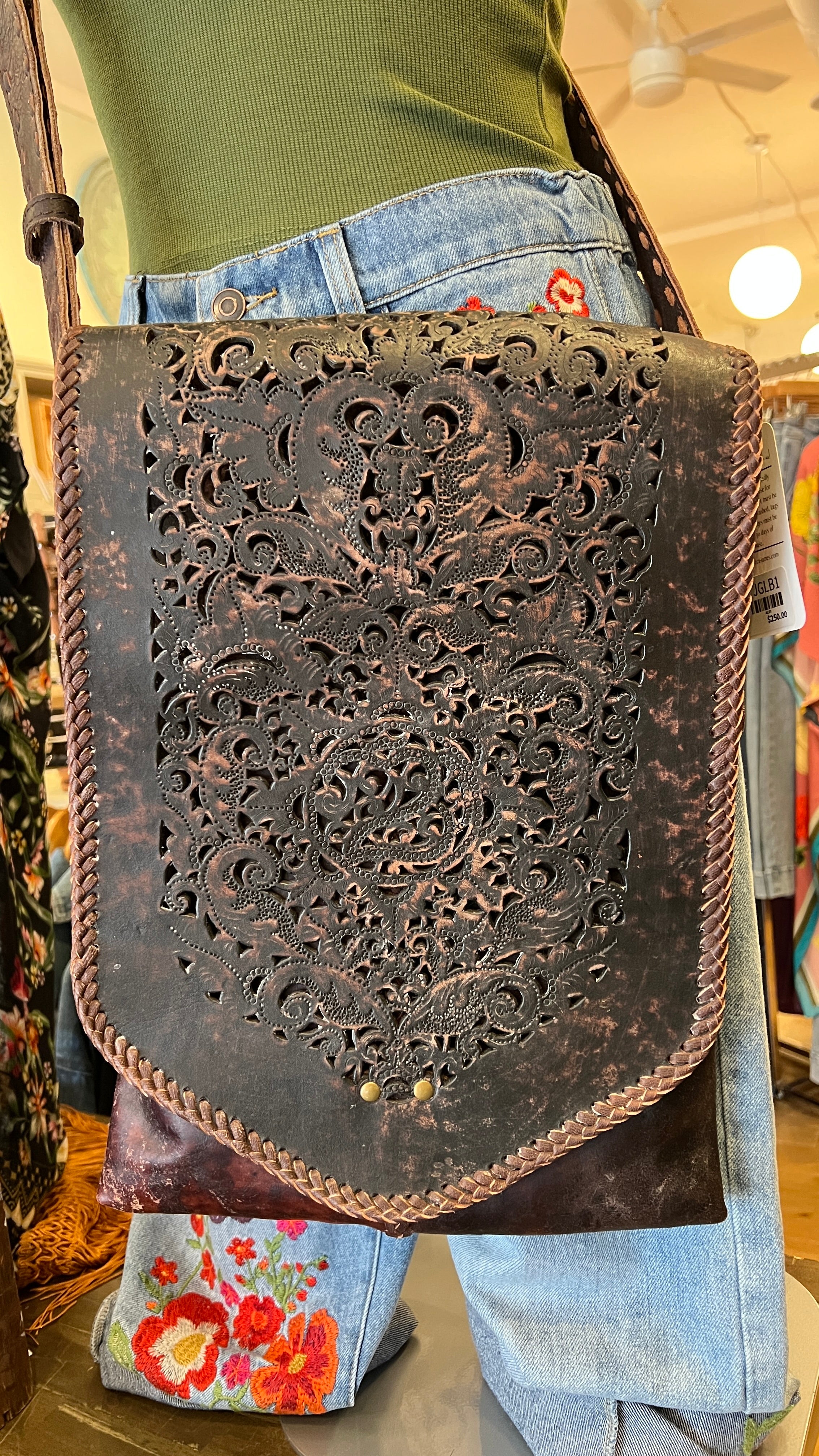 Jaded Gypsy Hand Tooled Leather Messenger Bag – Unisex Boho Work & Everyday Bag