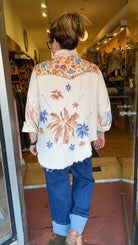 The Life Is Art Shirt Jacket is where creativity meets comfort — a statement piece that feels like wearable art. Crafted from soft cotton gauze, this cream shacket features hand-painted-style blue and brown paint splatters and fall floral denim accents on the shoulders and front pockets for that perfect mix of texture and whimsy.