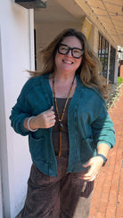 With deep pockets and a relaxed fit, it’s the perfect throw-on-and-go layer for cooler days. The rich midnight green hue adds a beautiful pop of color to your fall wardrobe — especially when paired with our Brown Corduroy Barrel Pants and a simple tank or graphic tee.