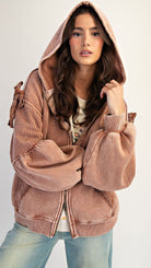 Meet your new favorite layer — the Mocha Mineral Wash Bow Girl Hoodie. This cozy terry knit zip-up jacket blends comfort and style with its soft, lived-in feel and thoughtful boho details.