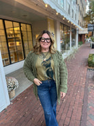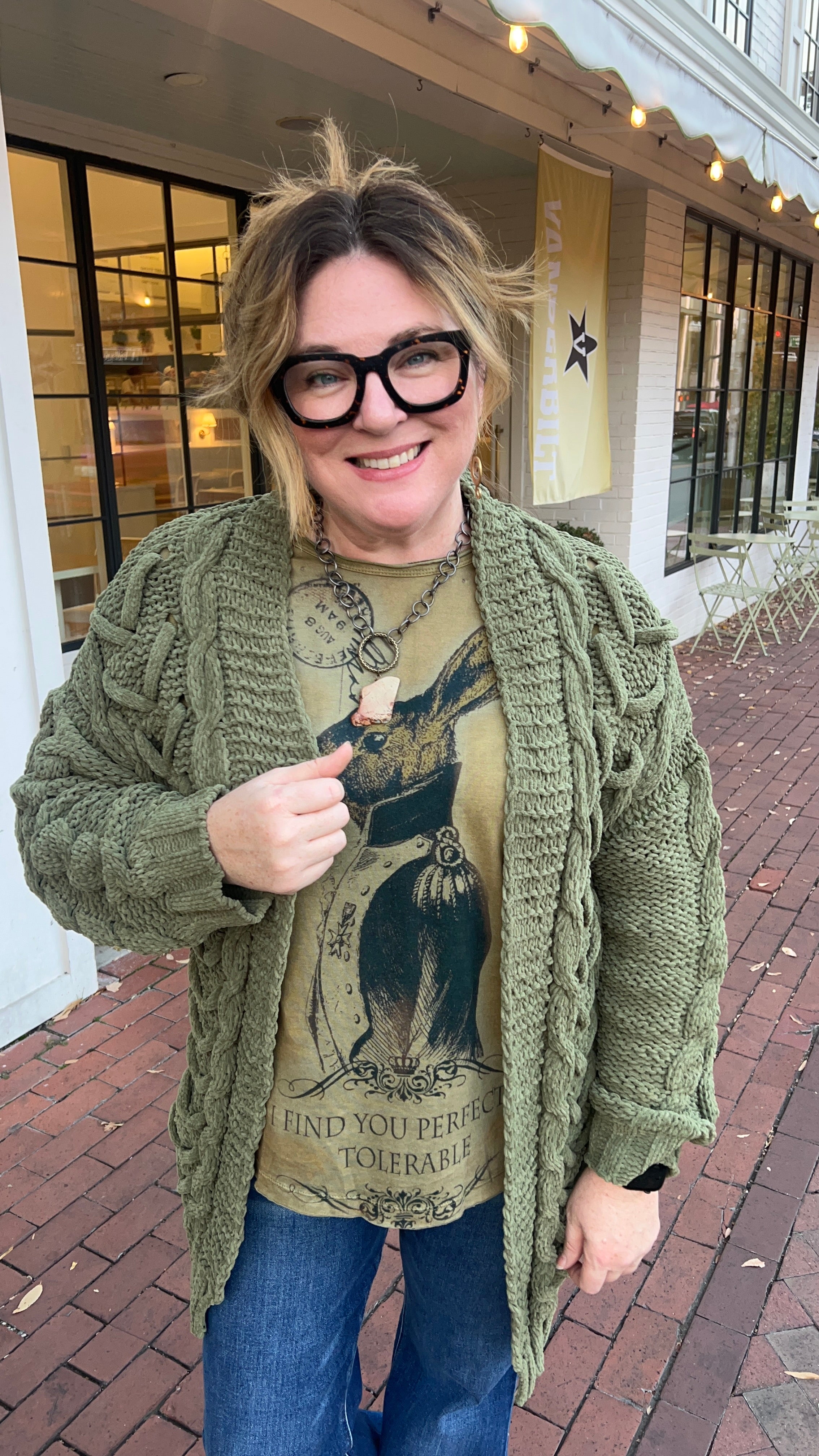 This rich olive shade is stunning for fall and winter and pairs perfectly with our Sergeant Bunny Top for a cool tonal look with jeans. Whether you’re heading out for a casual day or staying cozy at home, this cardigan brings warmth and laid-back polish to any outfit.