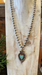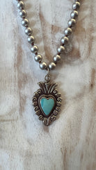 Sacred Heart Tibetan Silver Necklace on Hand Beaded Necklace