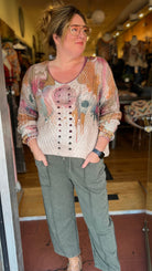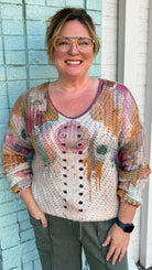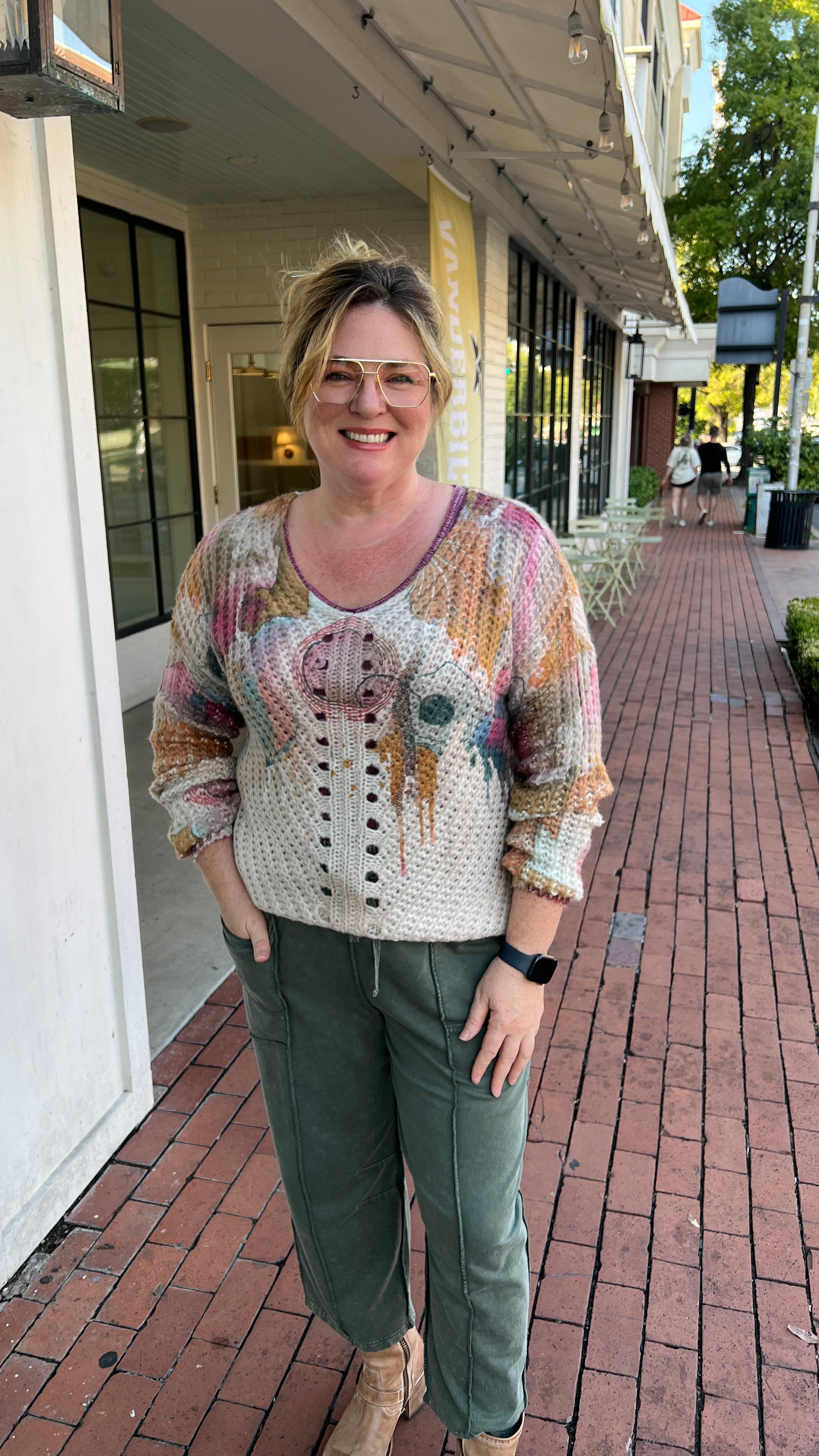 The Sunset Hunt Open Knit Sweater is as much a statement as it is a staple—crafted in Italy with an artistic knit that feels like a wearable work of art. Designed with a soft, oversized fit that hits at the hip, this sweater blends cozy comfort with effortless style. Its mohair, wool, and acrylic blend gives it a plush texture, while the open knit makes it perfect for layering. Pair it with our cotton Merlot tank for a pop of color underneath and style it with our pine green barrel pants for an elevated fall look. Whether you’re heading to an art crawl, a concert, or a casual day at work, this sweater adds instant sophistication.