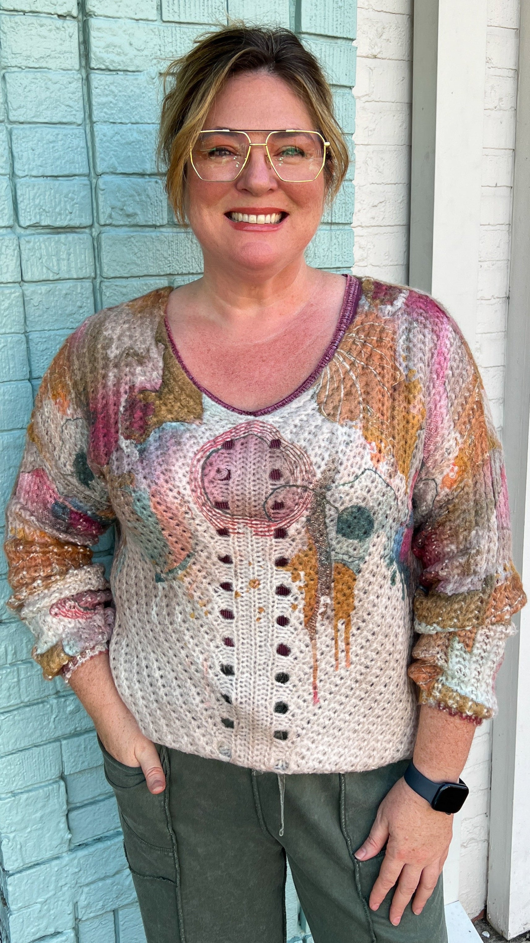 A statement sweater ideal for art crawls, concerts, or casual work outfits