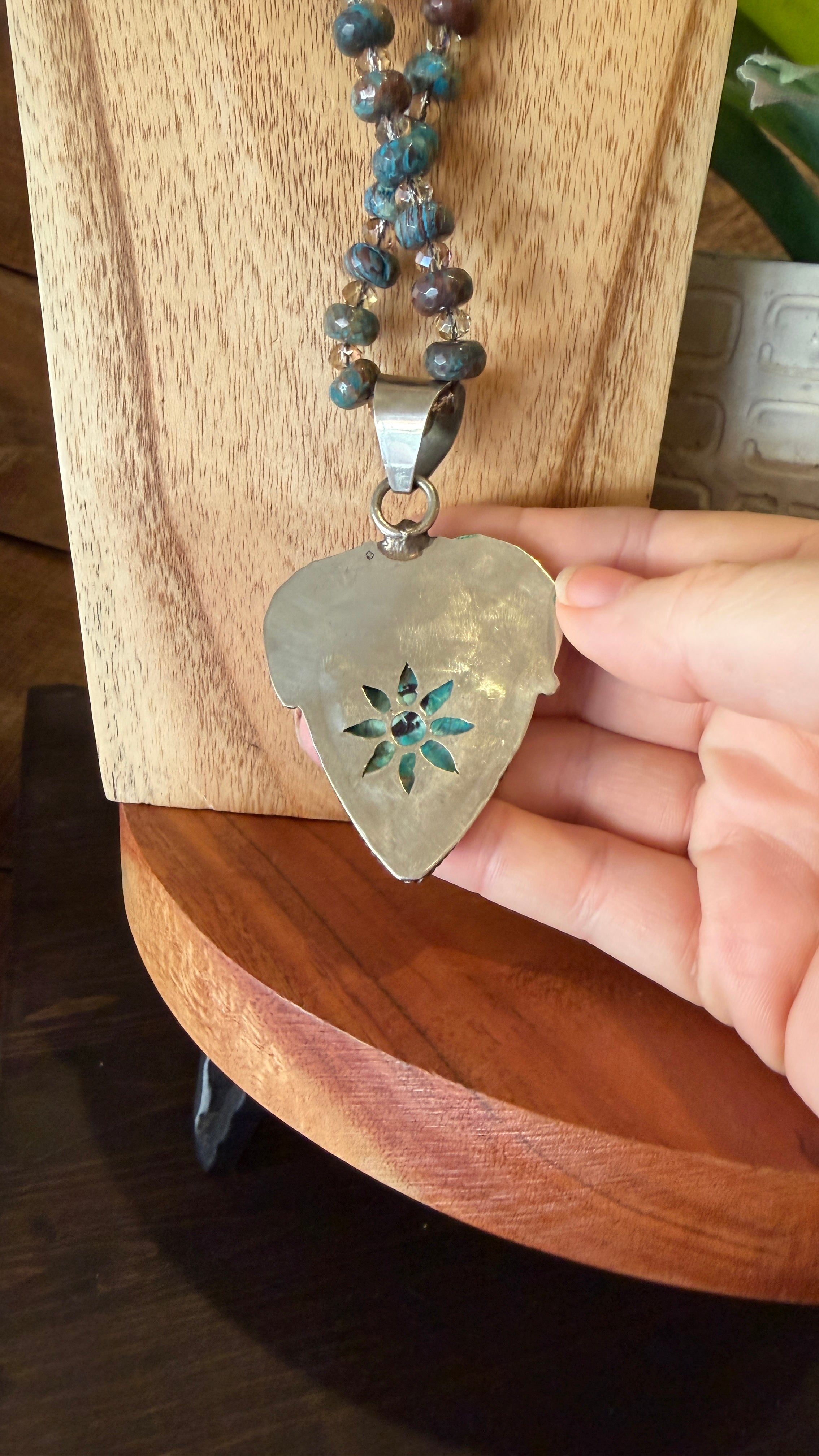 Boho Artisan Turquoise Heart & Tibetan Silver Handbeaded Necklace