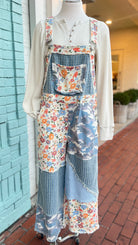 Embrace your free spirit with our uniquely designed Patchwork Floral & Camo Denim Overalls. These eye-catching cotton overalls blend whimsical floral prints with cool denim textures and a subtle camo accent, creating a truly one-of-a-kind statement piece. Perfect for those who love to express their individuality and stand out from the crowd, these overalls offer a playful yet stylish addition to any wardrobe.
