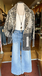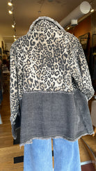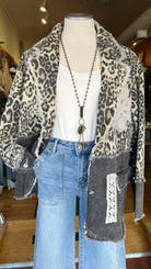 Unleash your inner style icon with our Oversized Leopard Print Twill Blazer. This isn't your average blazer—it's a celebration of modern, boho-chic design. The striking leopard print upper immediately grabs attention, while the washed black twill hem adds a cool, mixed-fabric dimension.