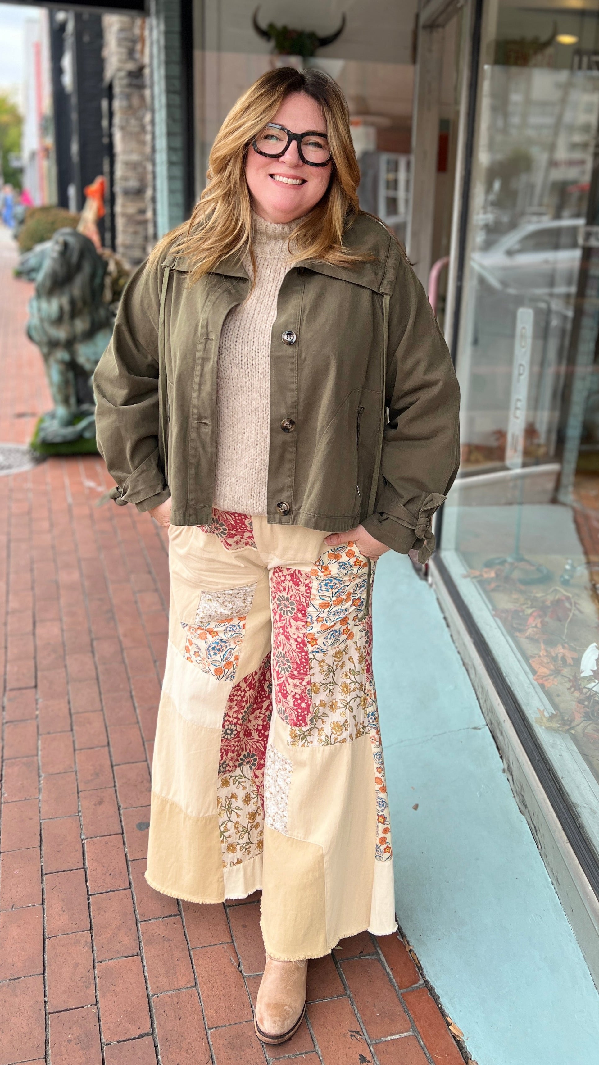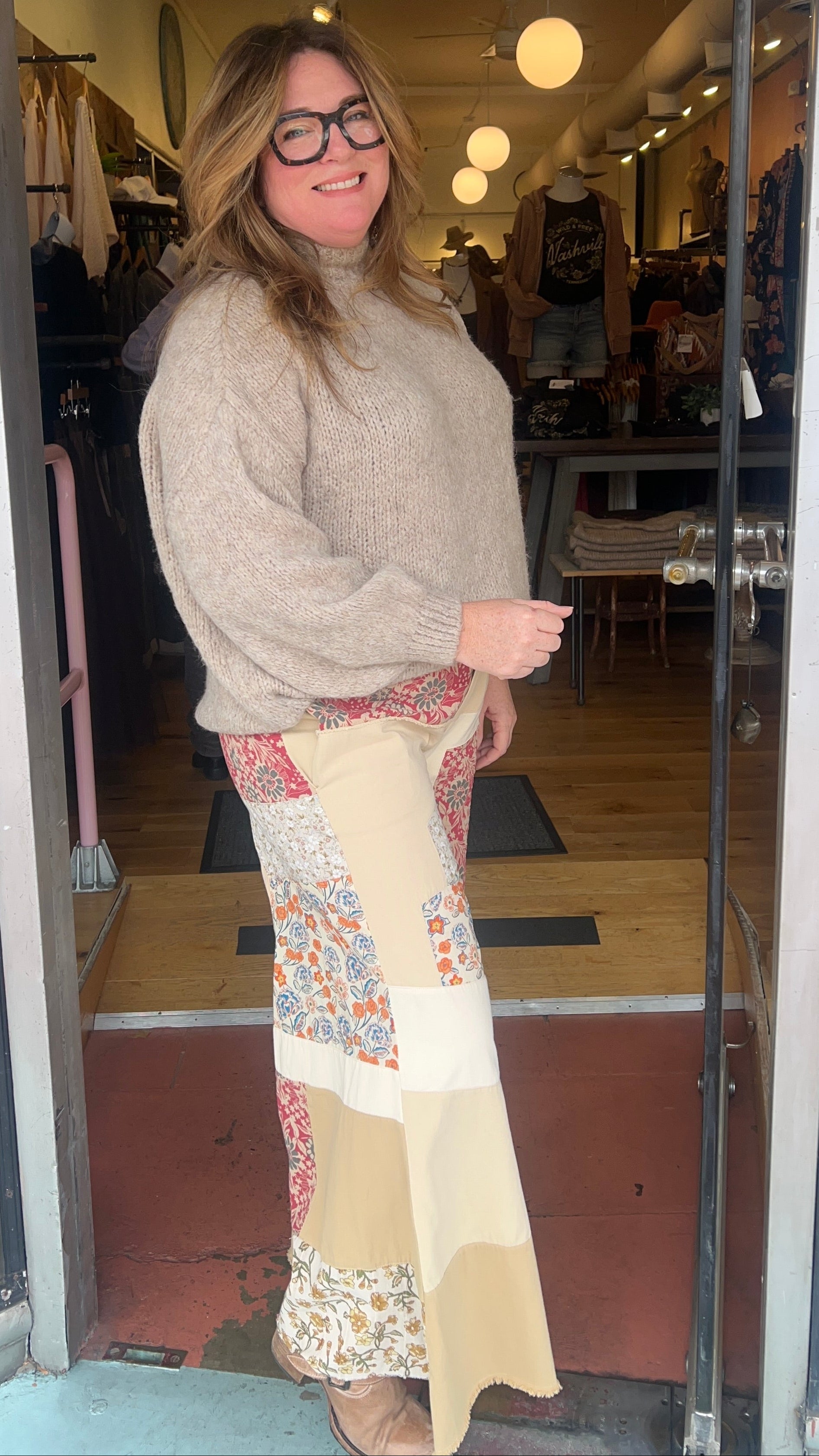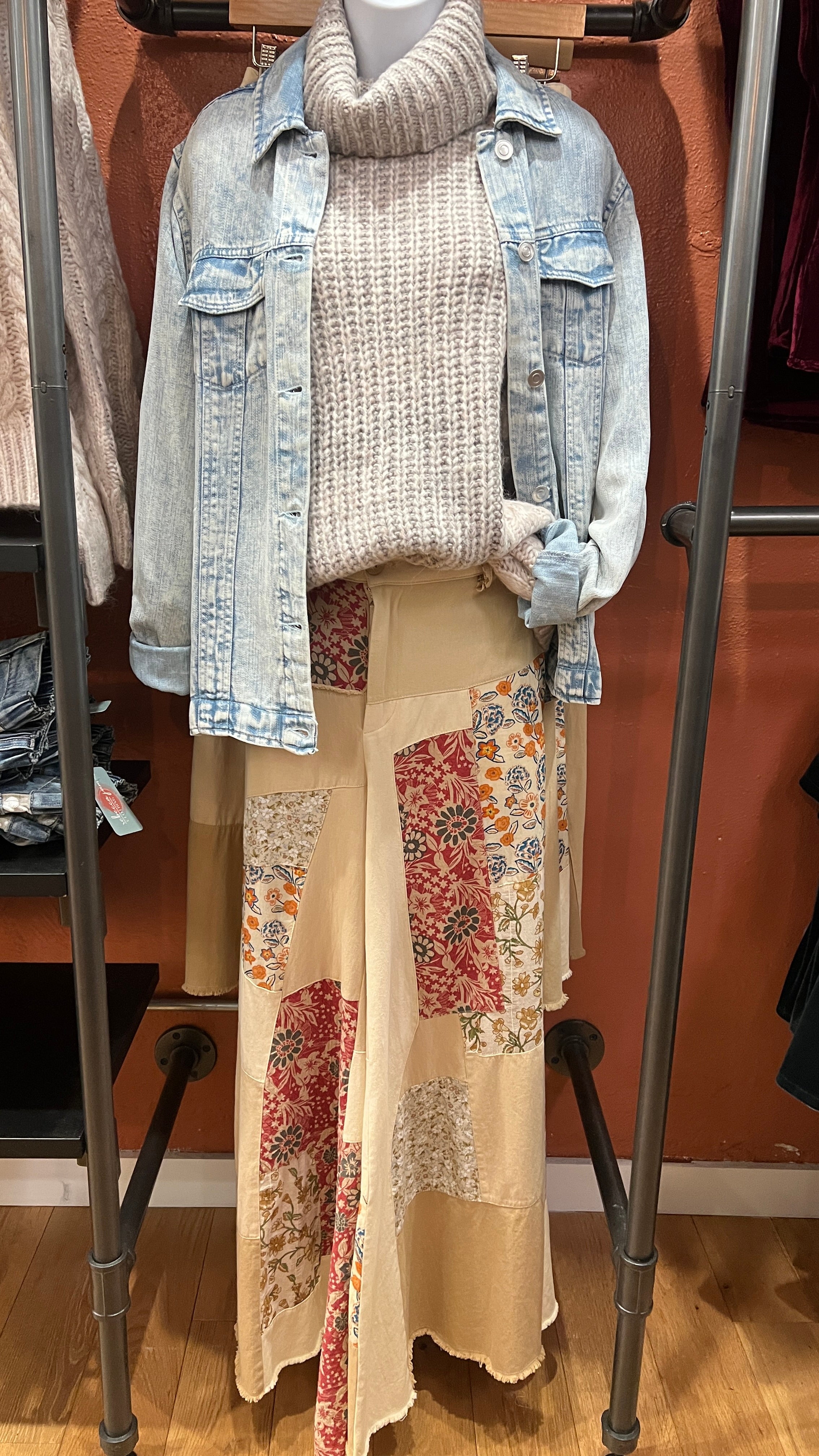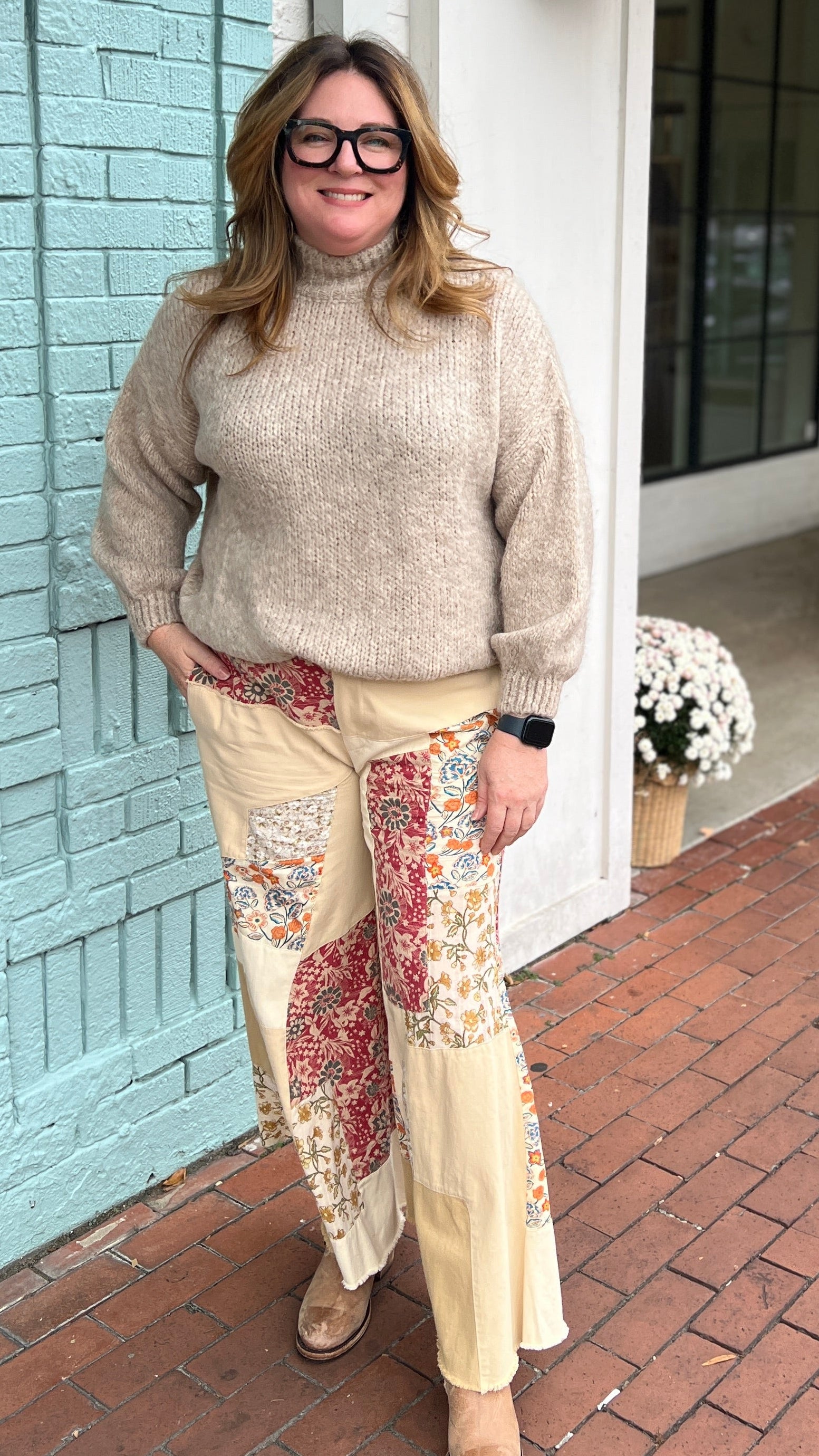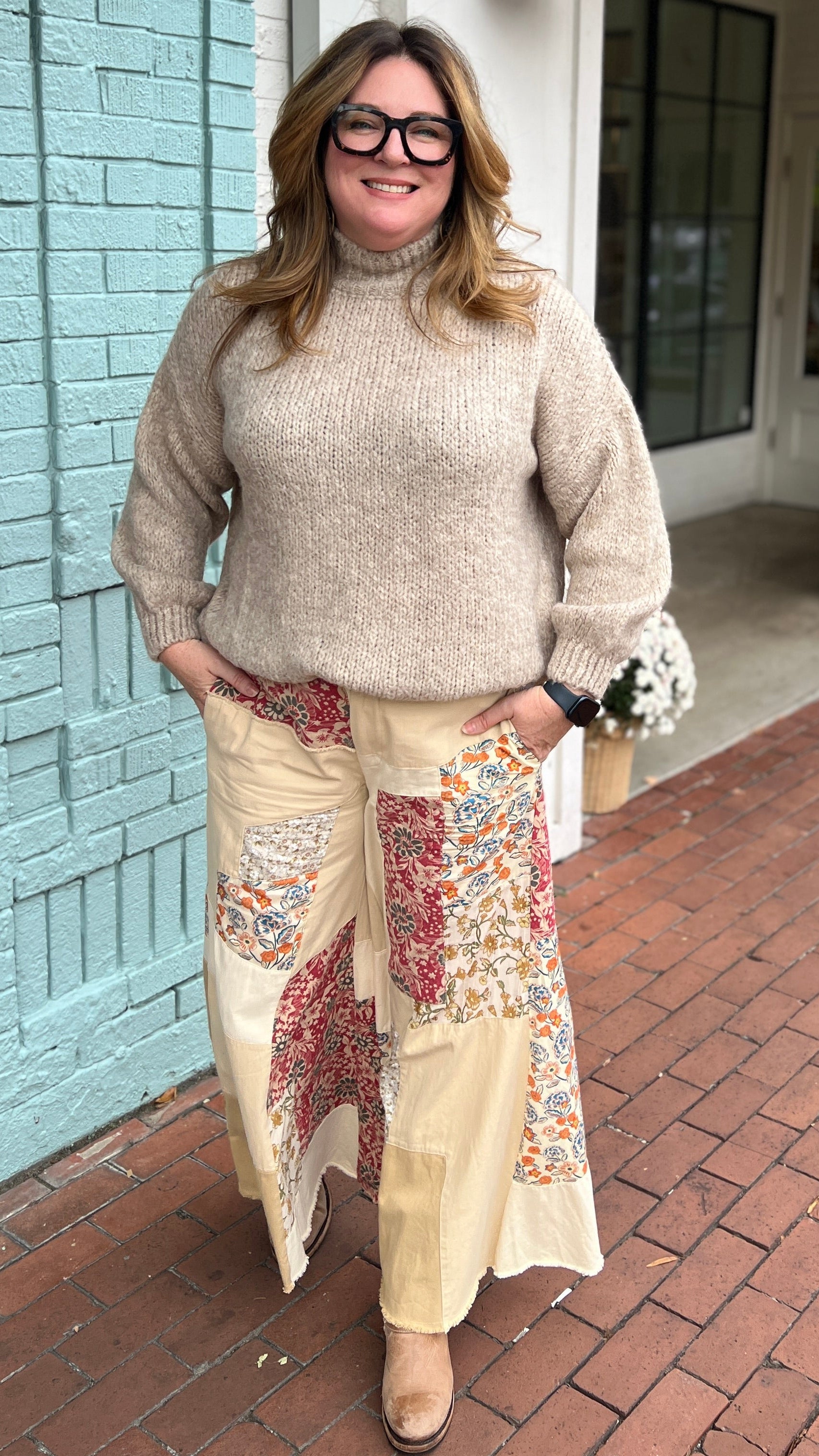The Tan Patchwork Flowy Wide Leg Pants are the ultimate boho statement for fall and winter. Made from lightweight, breathable cotton, they feature a gorgeous fall floral patchwork design that combines texture, comfort, and effortless style.