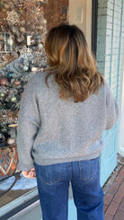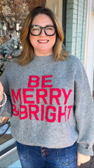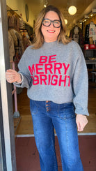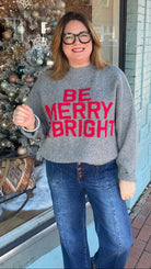 The Be Merry & Bright Holiday Sweater is the cheerful, ultra-soft knit you’ll want on repeat all season. Designed in a cozy oversized grey mock-neck silhouette, it features raised red lettering that adds the perfect festive touch without ever feeling too loud.