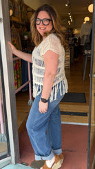 Embrace effortless seaside style with this airy open-weave boho sweater featuring a playful fringe hem. This cream layering essential from our Coastal Collection pairs perfectly with any denim for a breezy, chic look.